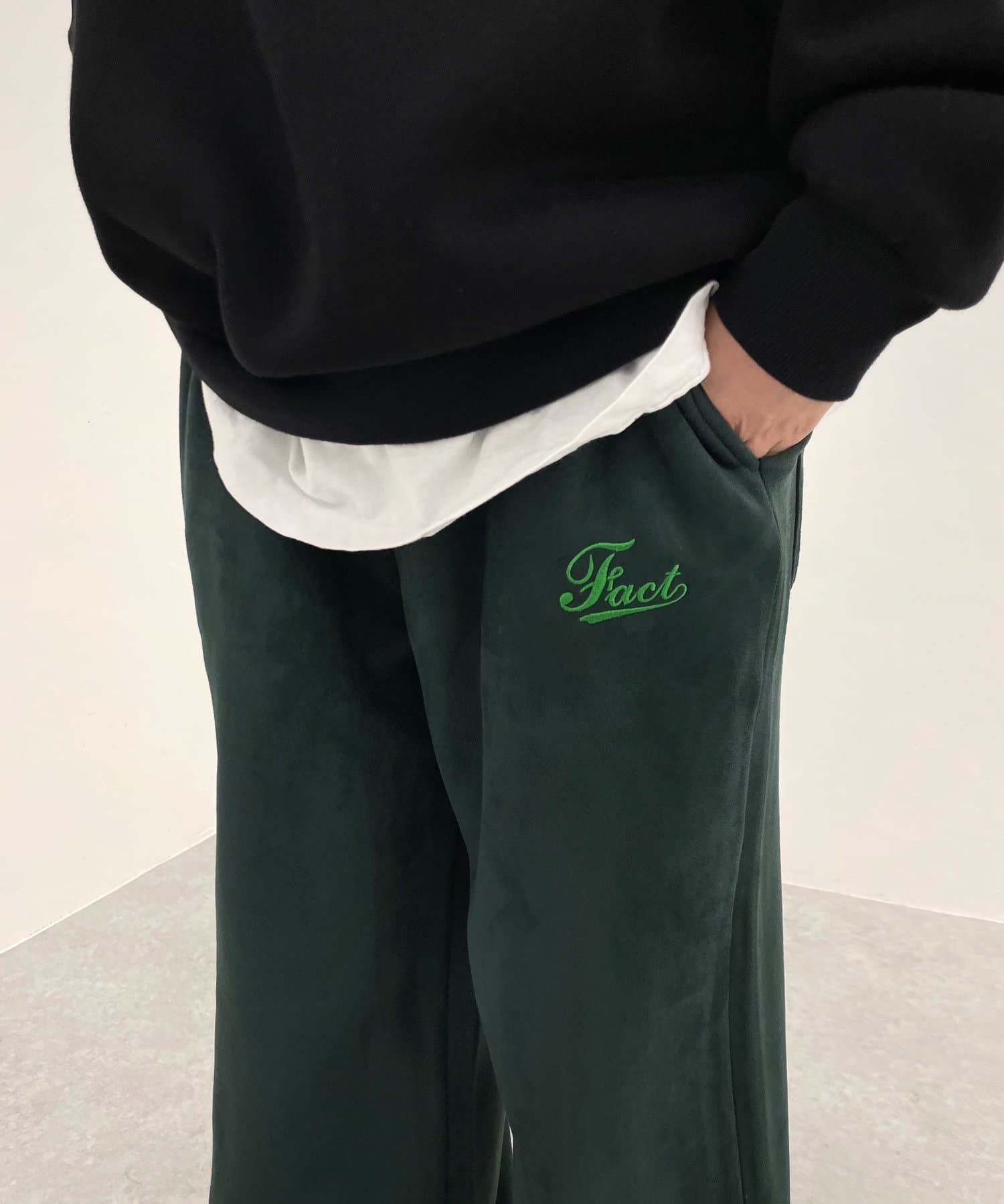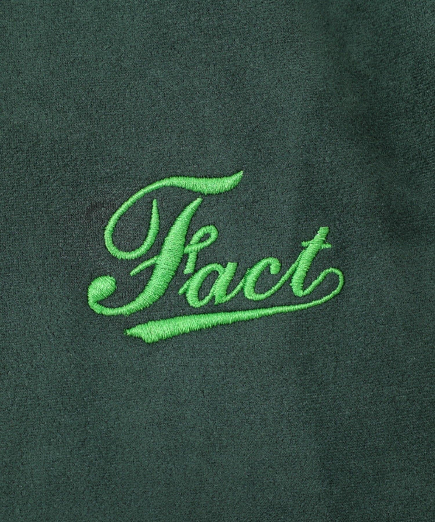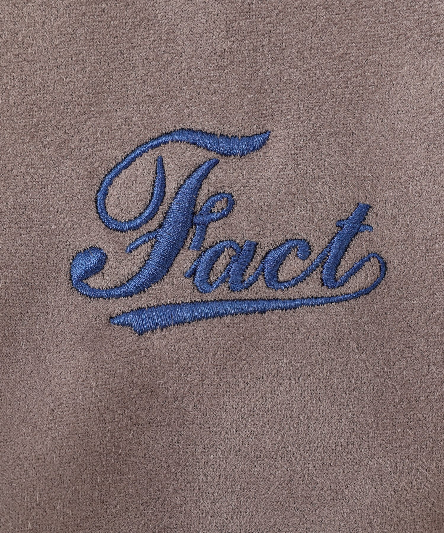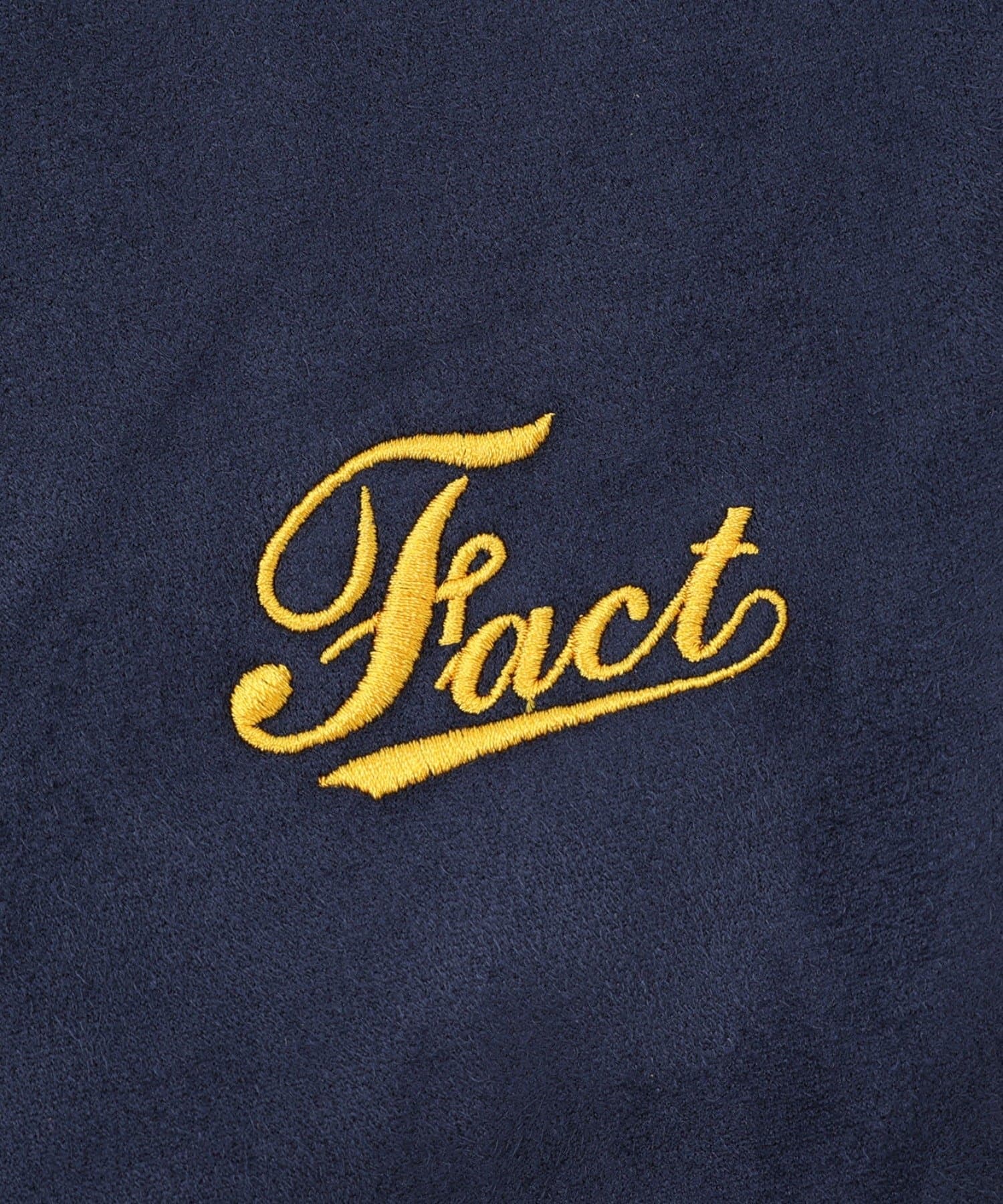 ・“fact”シリーズお馴染みのロゴは、刺繍で施されており、細部までこだわったデザイン。