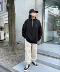 上をキレイめのシャツ出合わせるのもよし、ハーフジップでカジュアルに着るのも良しな万能なズボンです。