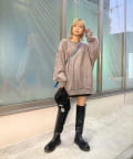 ・ビッグシルエットなので、シャツやハイネックトップス等とのレイヤードスタイルも◎。