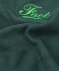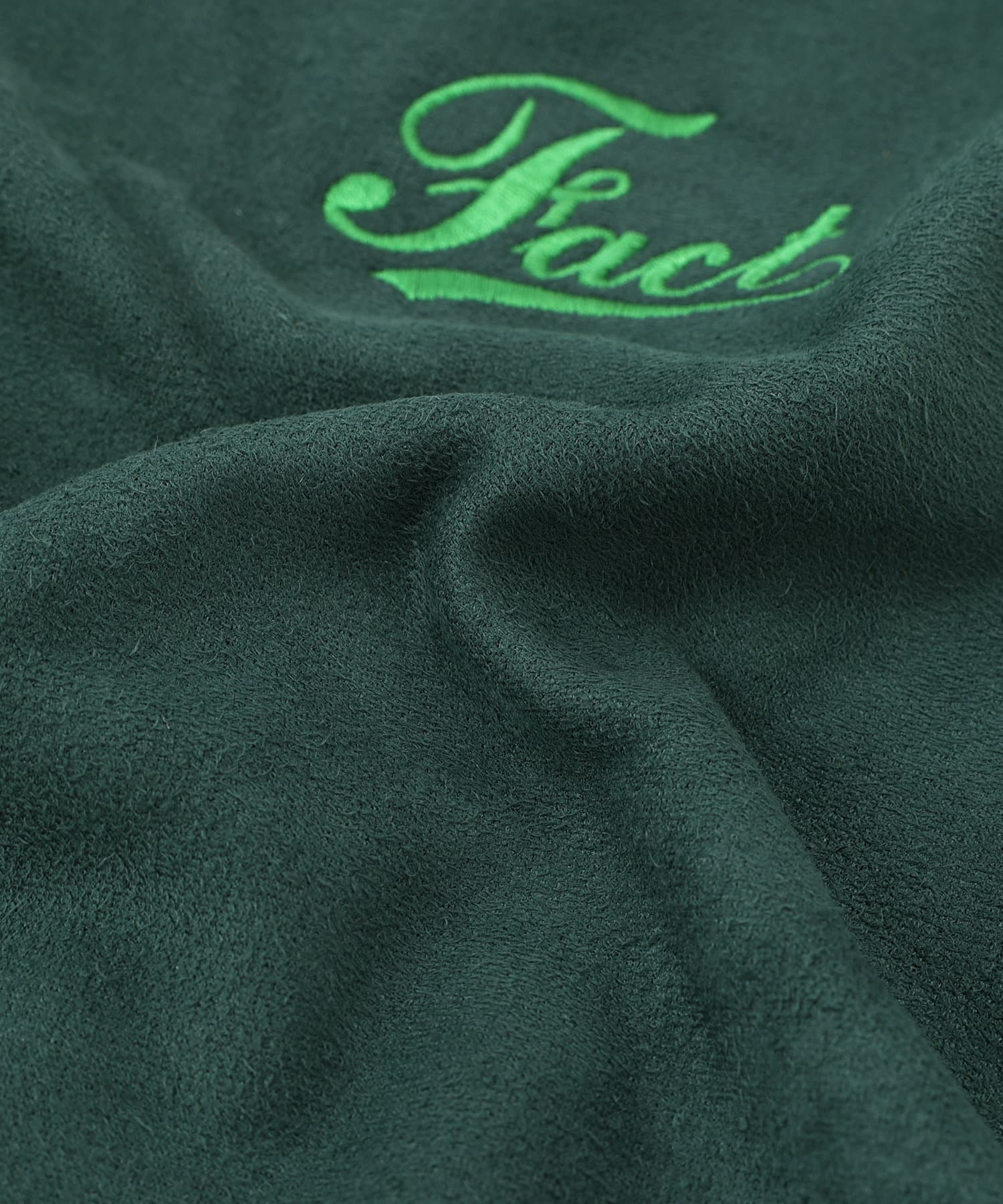 ・“fact”シリーズお馴染みのロゴは、刺繍で施されており、細部までこだわったデザイン。