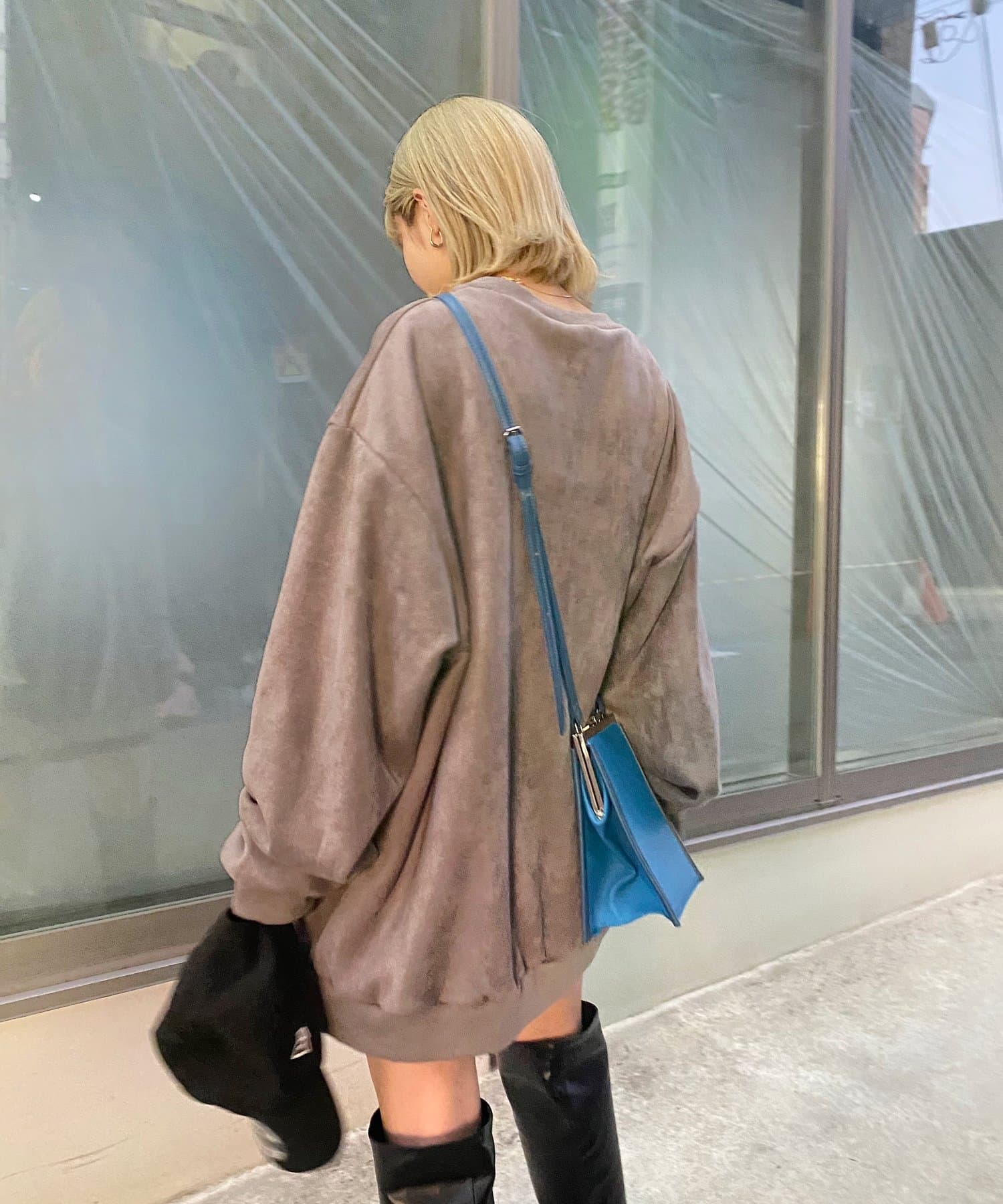 ・肌触りと見た目がしなやかなスエードポンチ素材。お出かけにもルームウェアにも使えます。