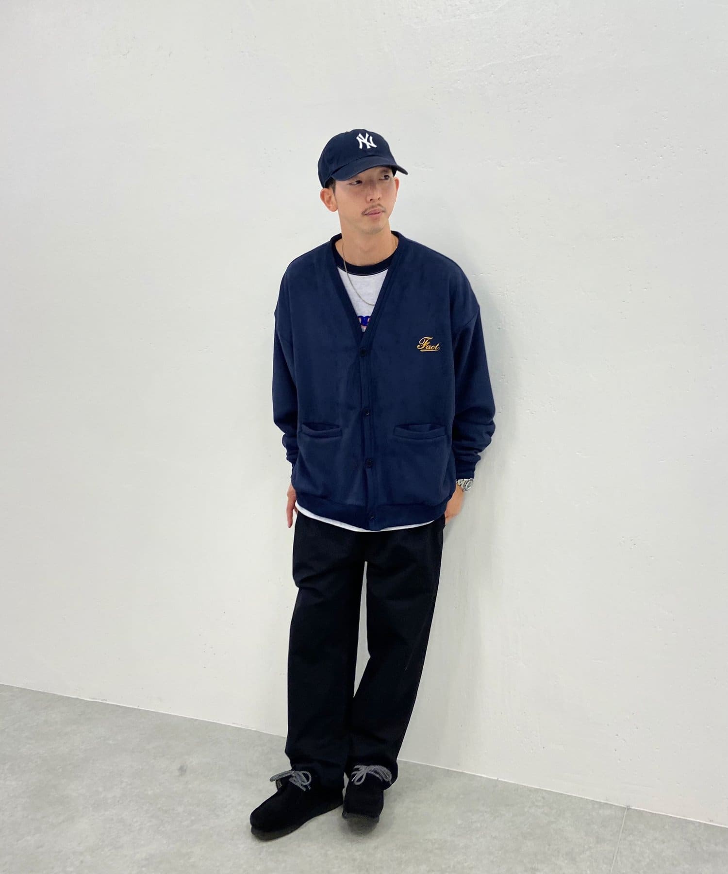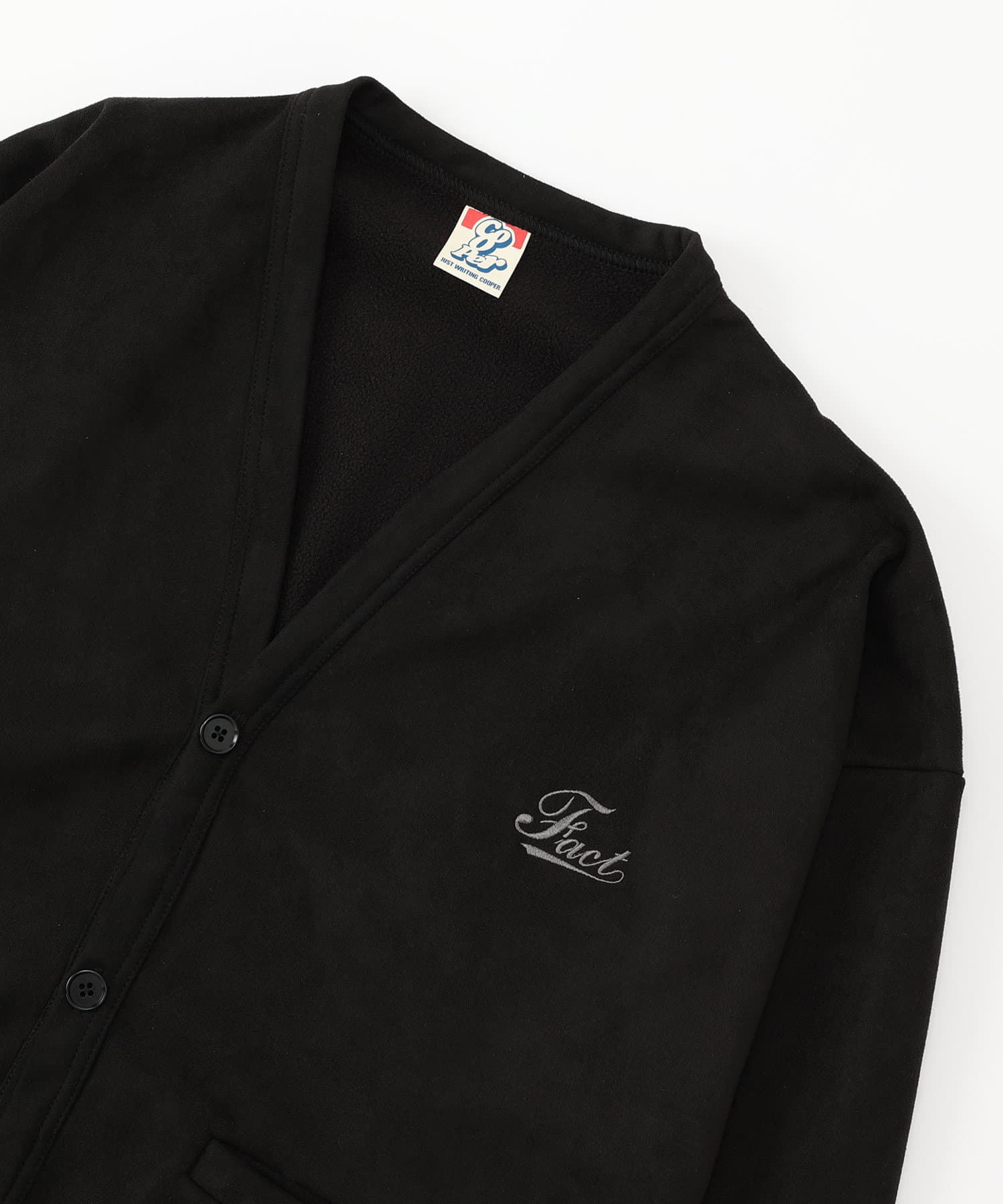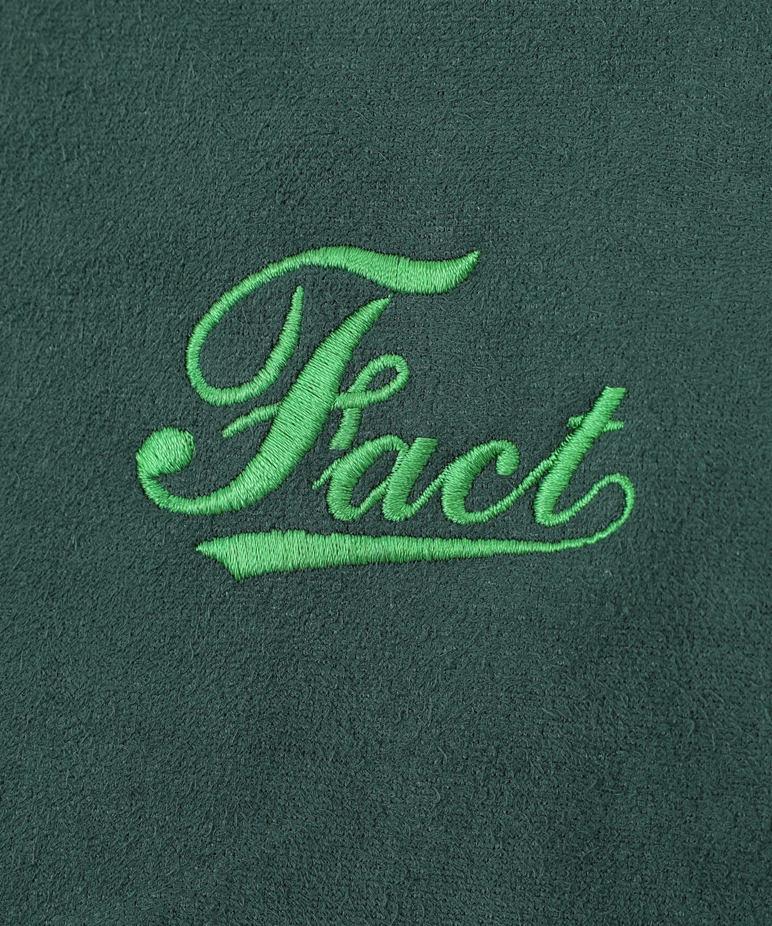 ・“fact”シリーズお馴染みのロゴは、刺繍で施されており、細部までこだわったデザイン。