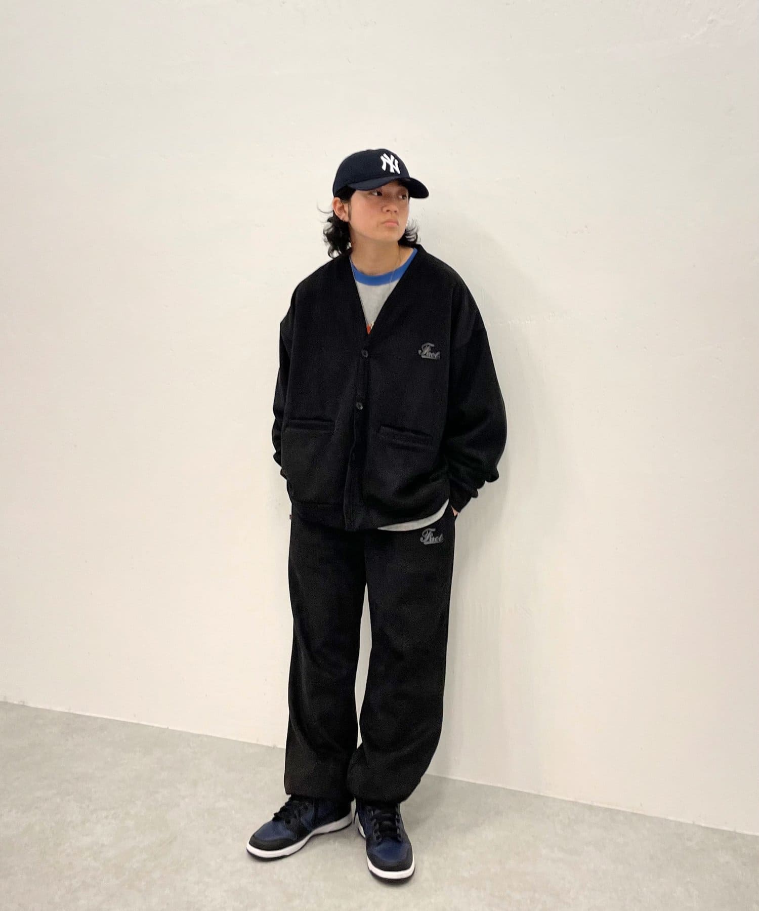 ・同素材のパンツとセットアップでのコーデもオススメ。