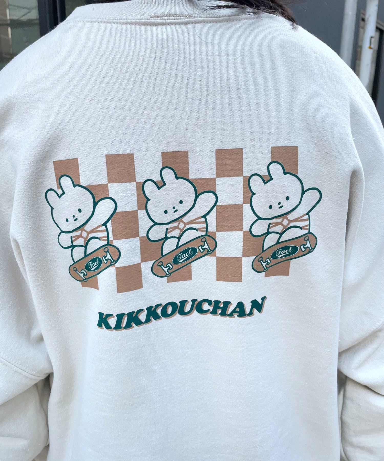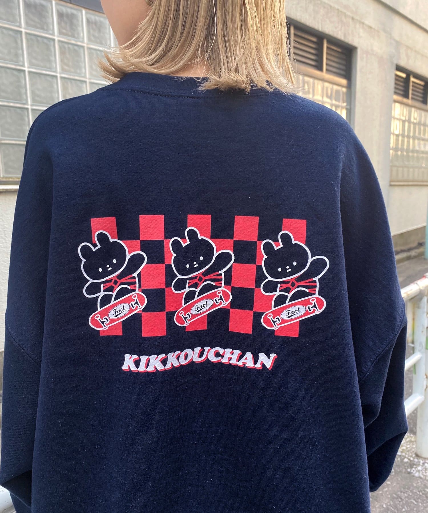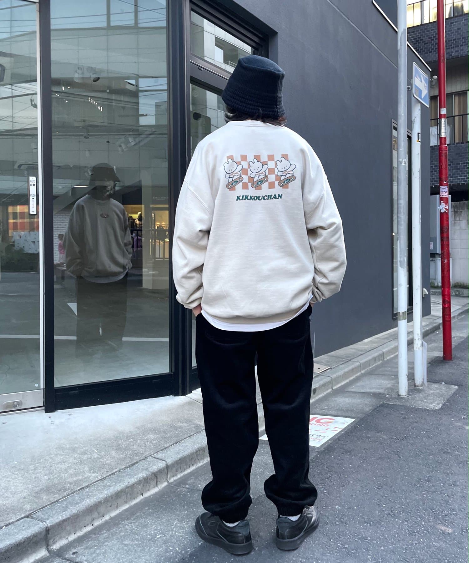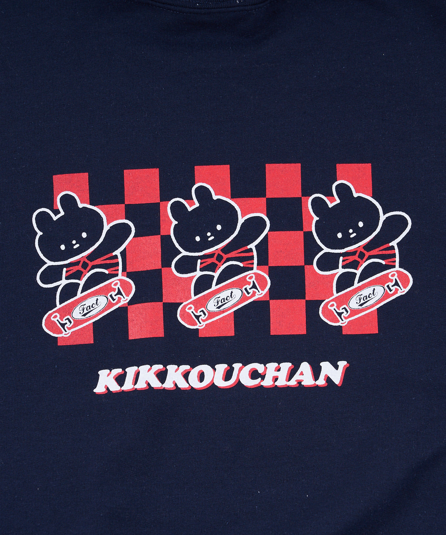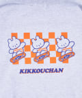 ・バックプリントには3体のきっこうちゃんがスケボーをする姿×トレンドのチェック柄。