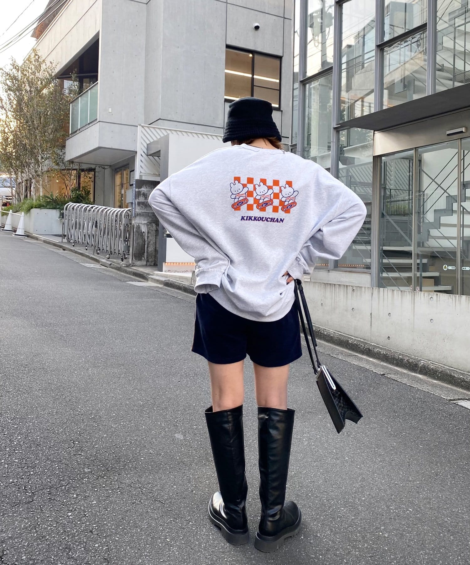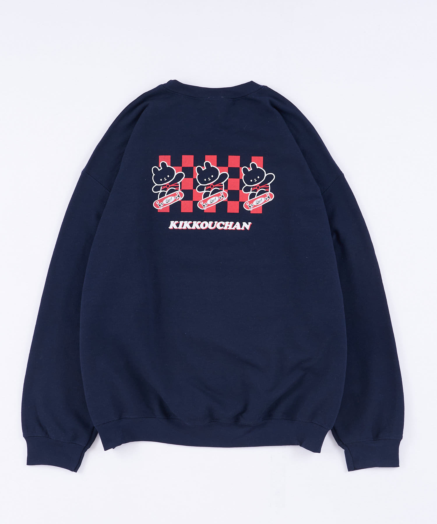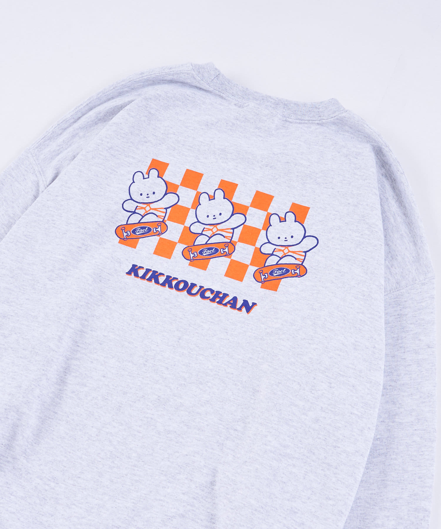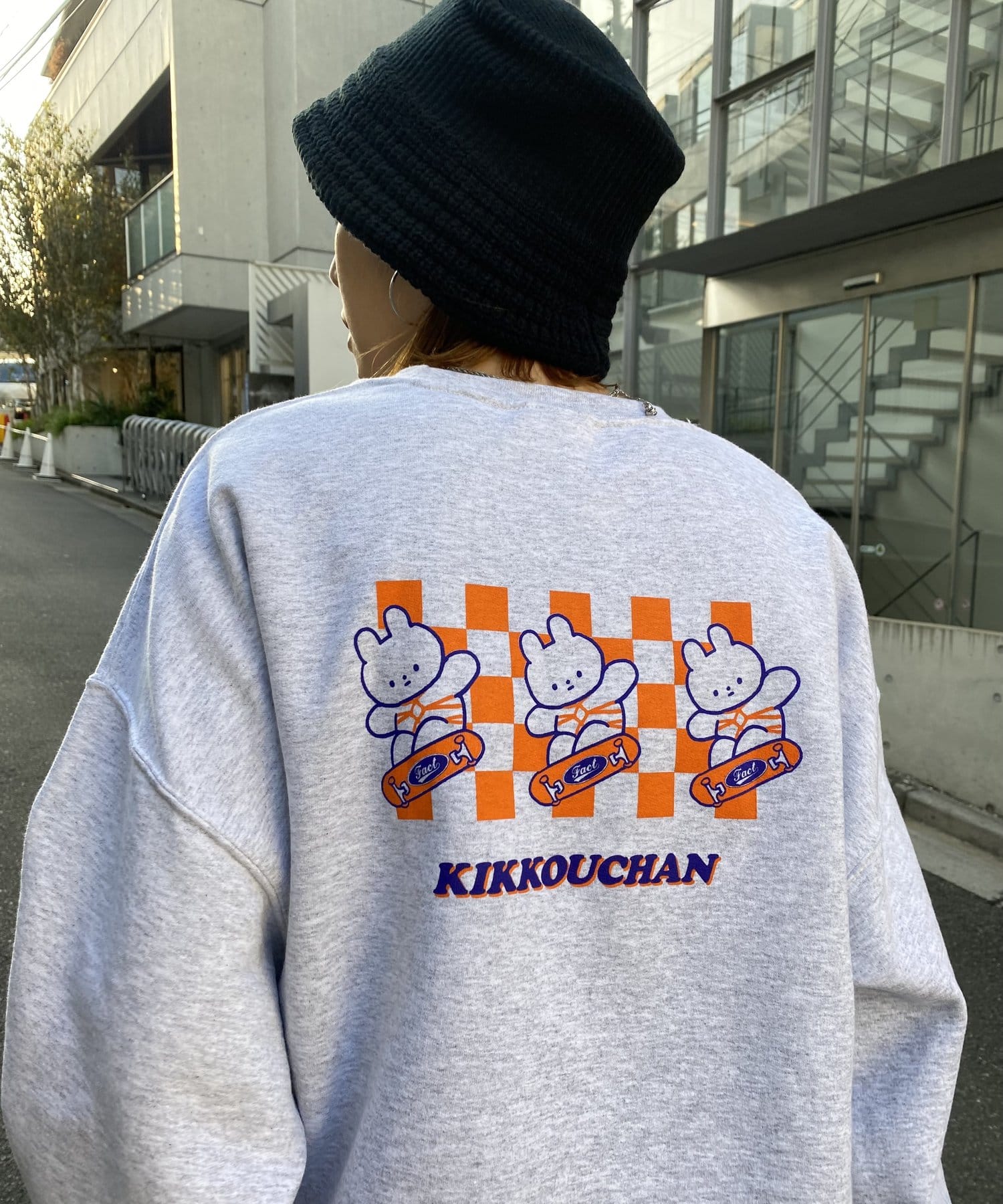 ・バックプリントには3体のきっこうちゃんがスケボーをする姿×トレンドのチェック柄。