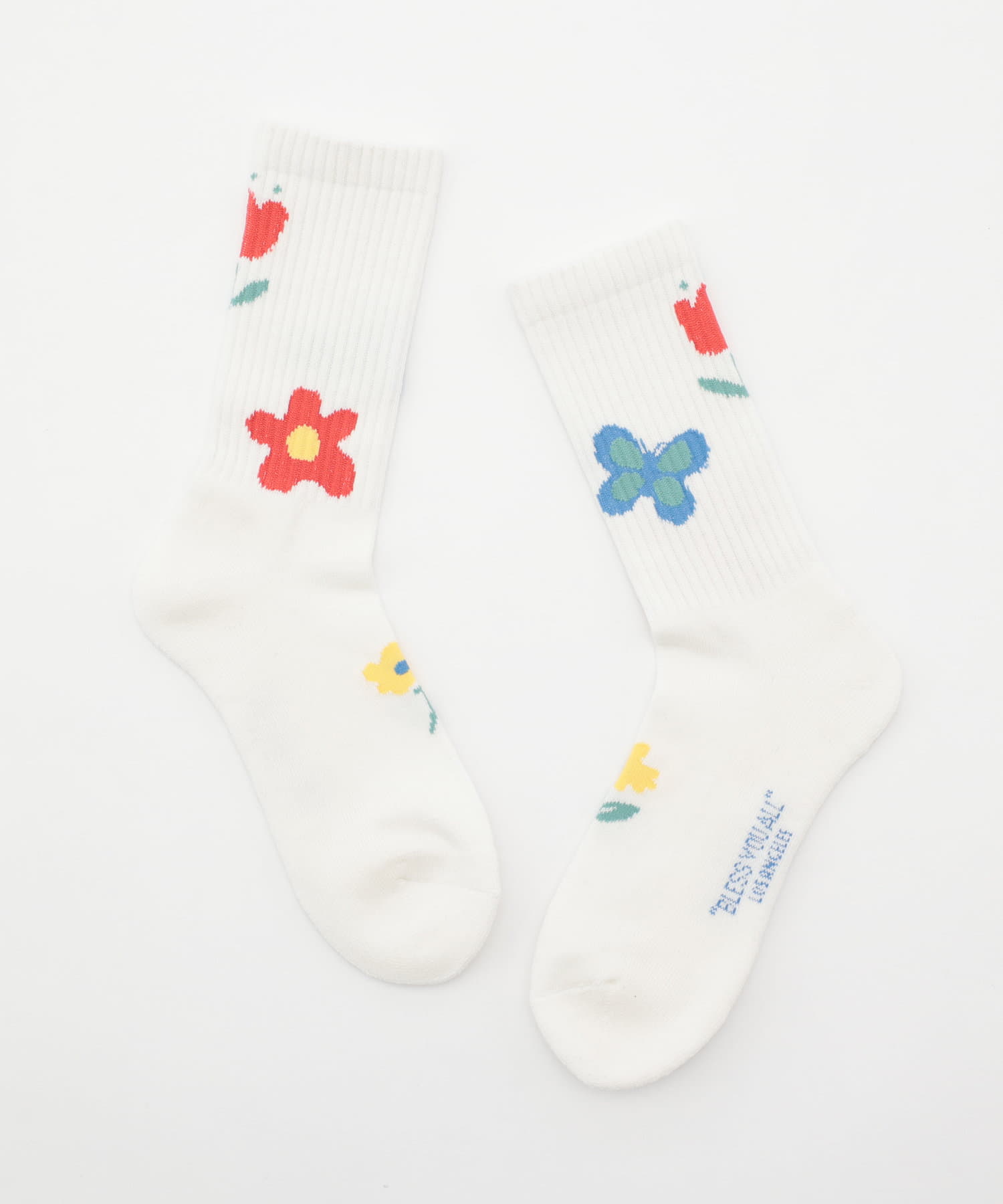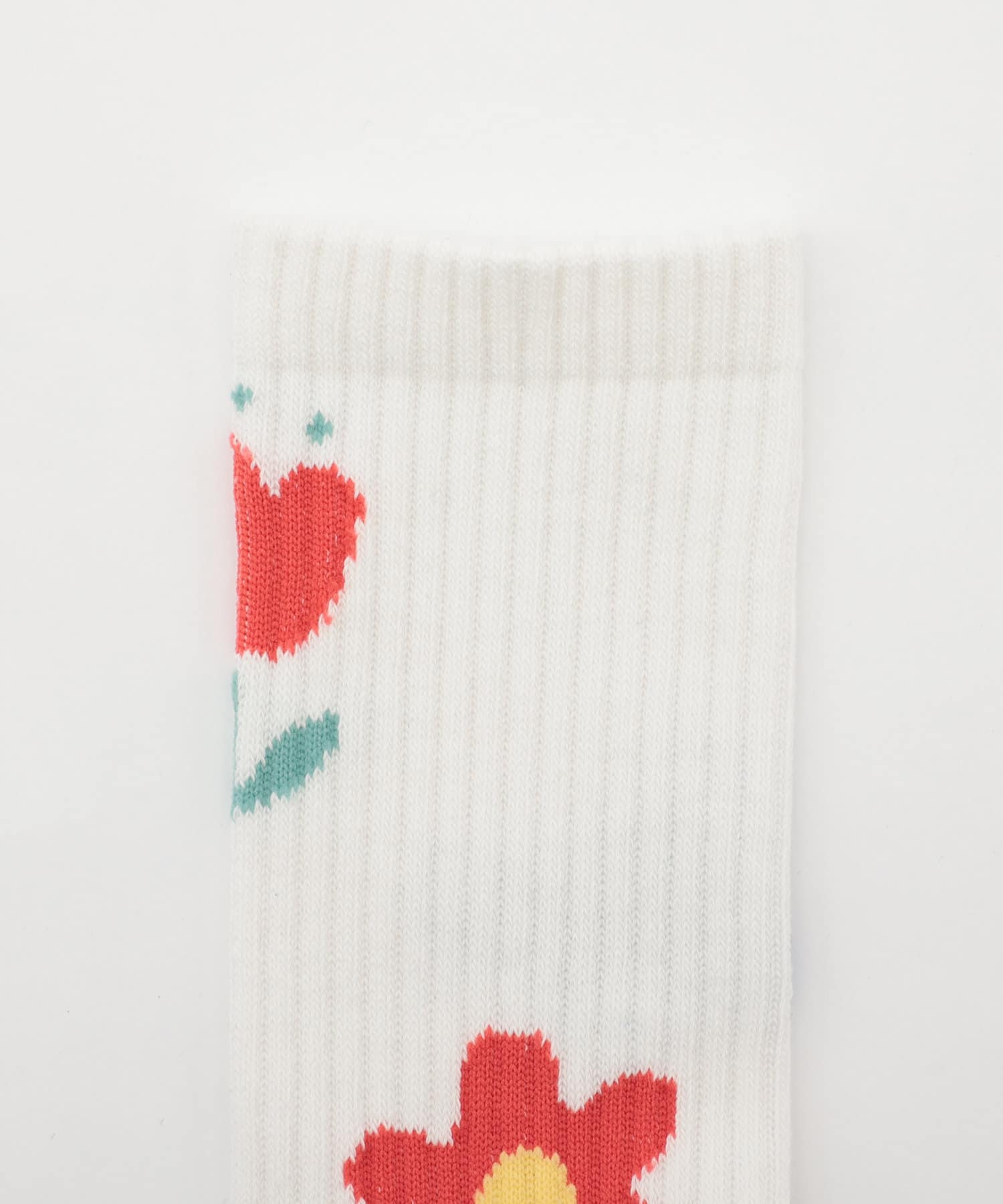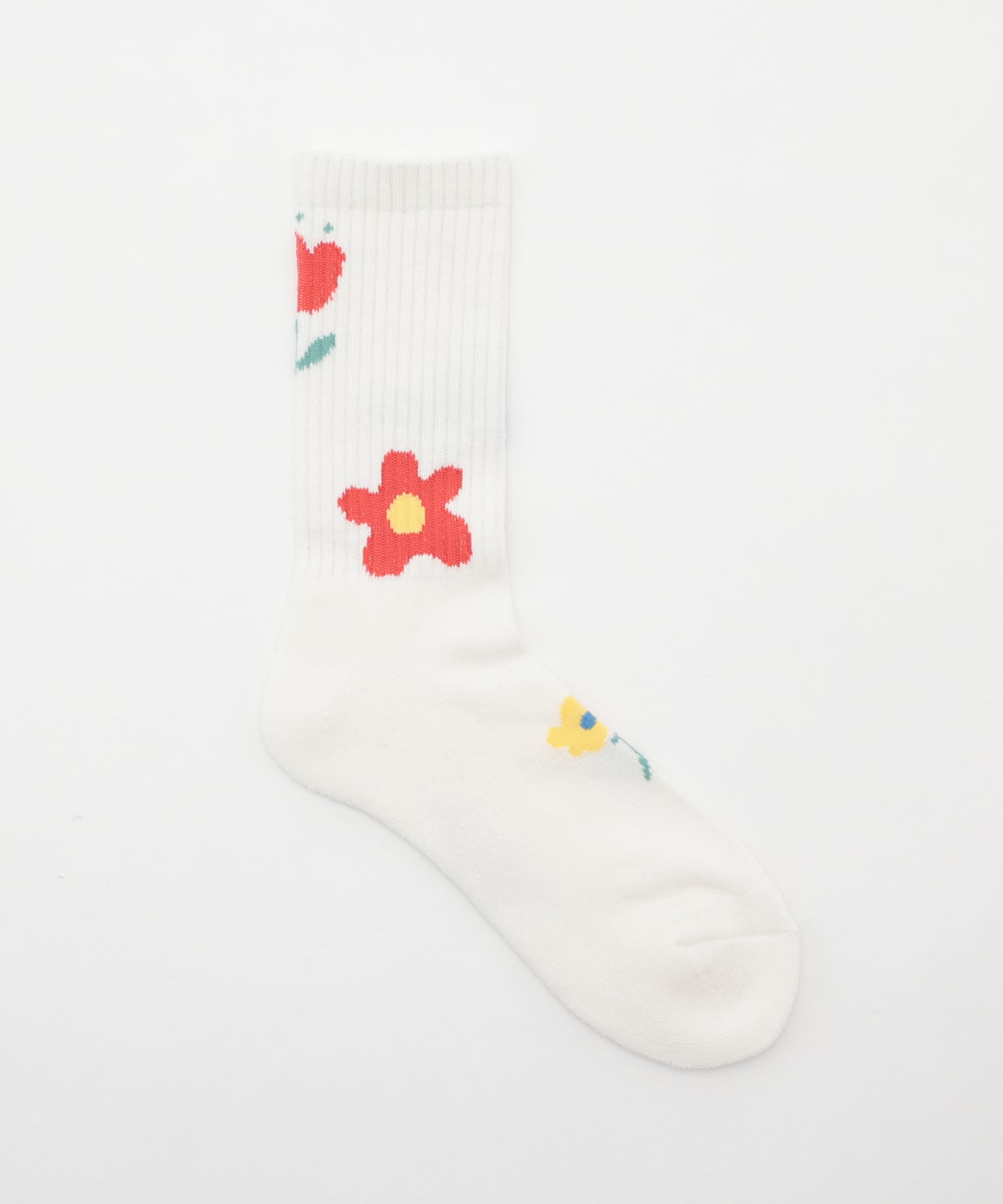 コーデを華やかにする、可愛らしいユルいお花デザインの靴下が登場。