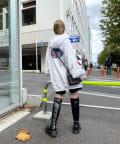・ビッグシルエットなので、ロンTやシャツ、ハイネックトップス等レイヤードコーデにも◎。