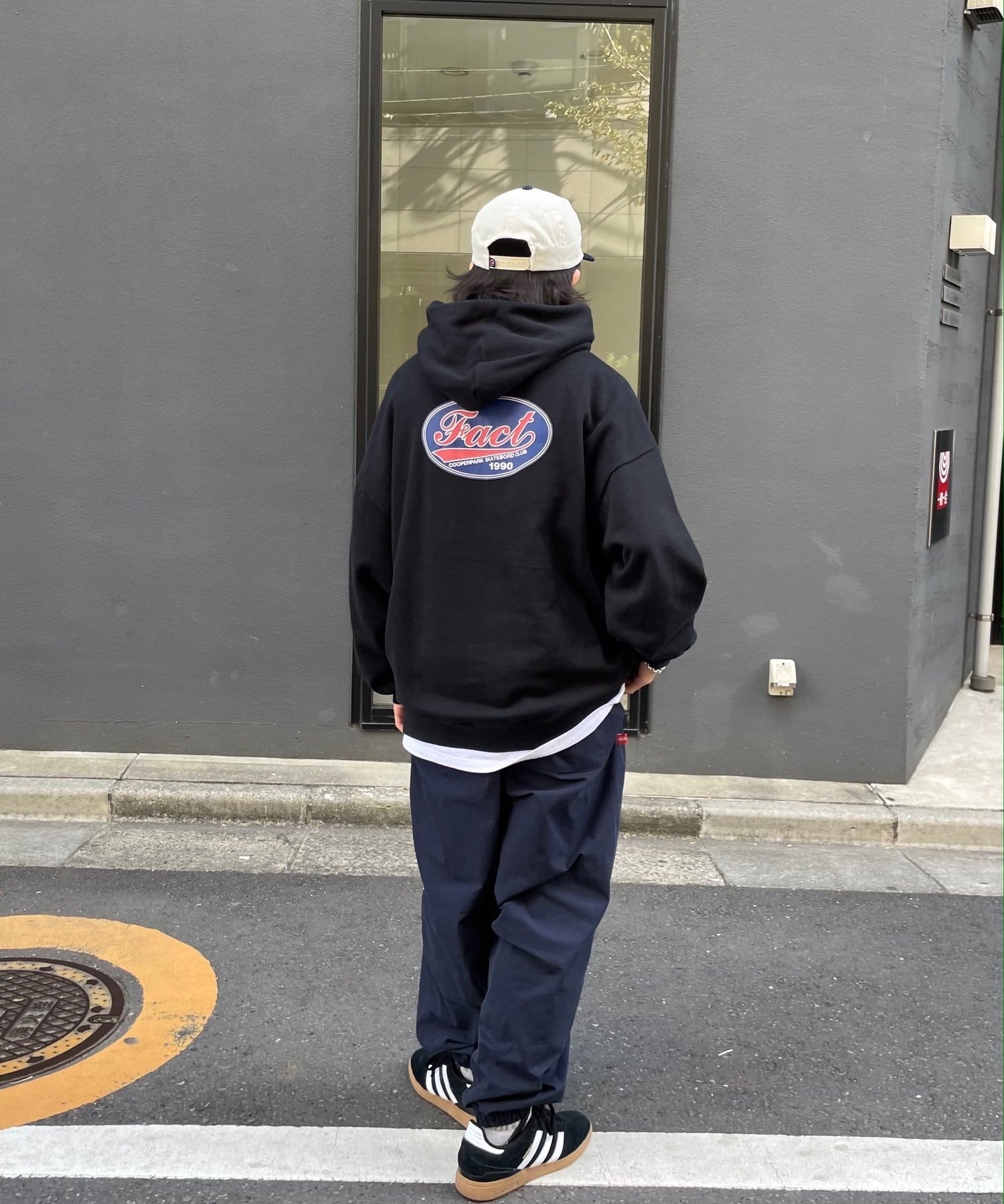・バックスタイルで語る、FACTの定番ロゴプリント。