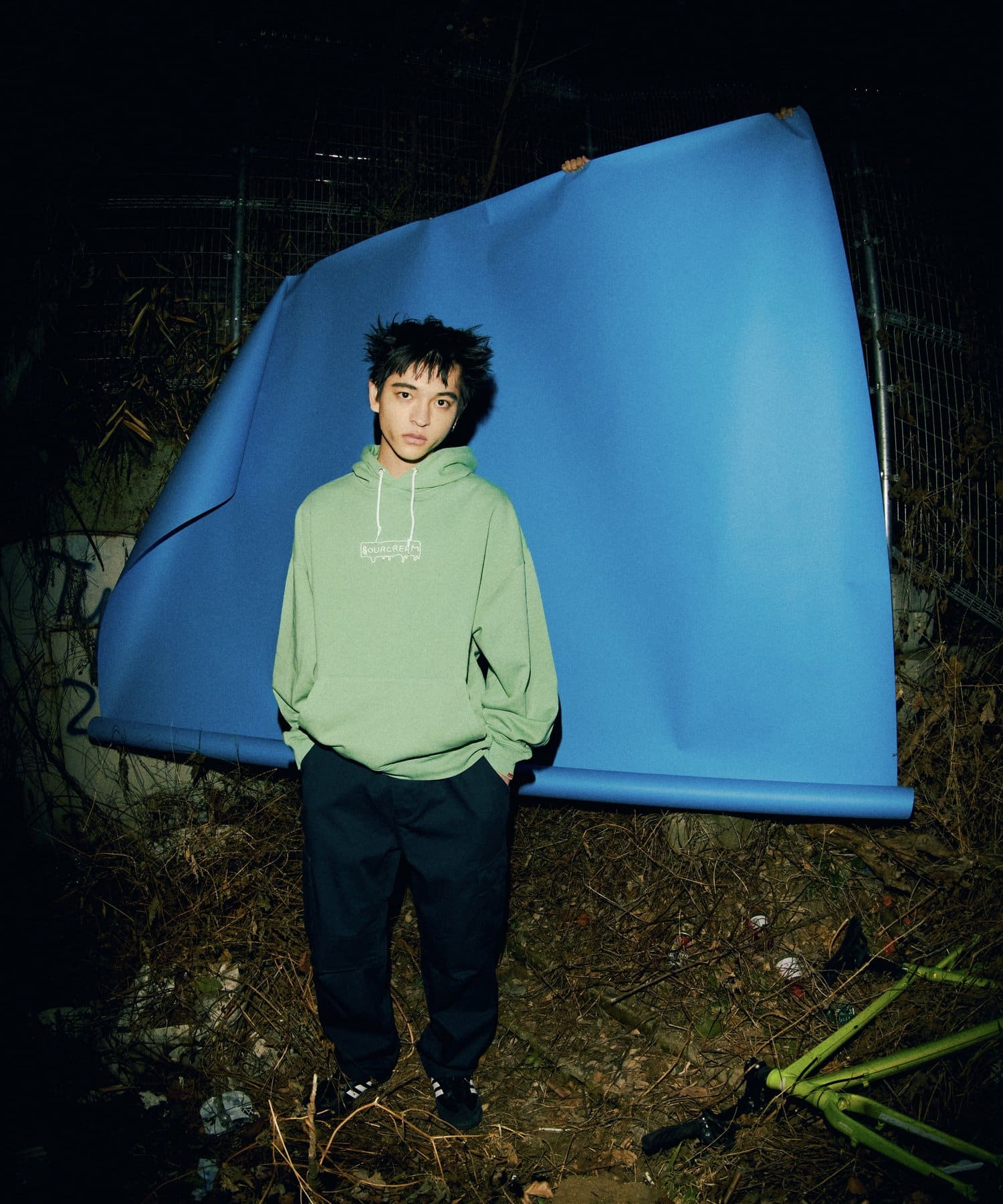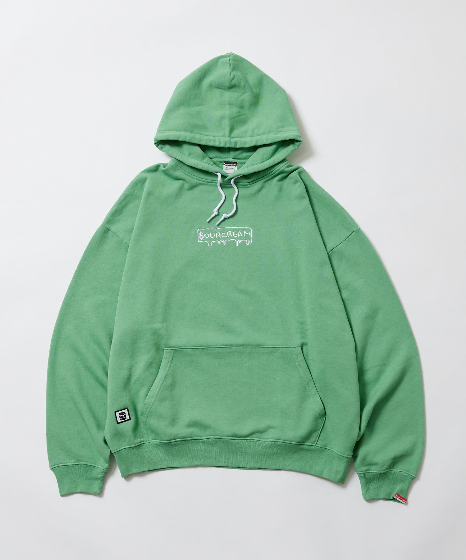 手で刺繍したようなクラフト感が溢れる“SOURCREAM”ロゴパーカー