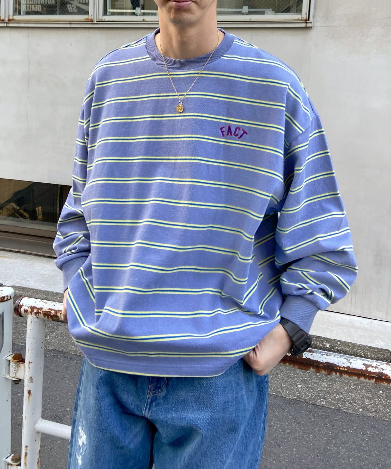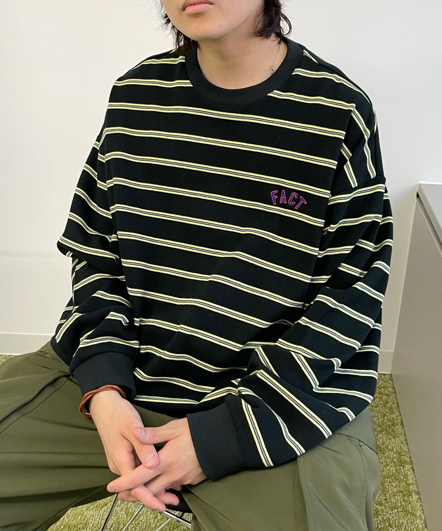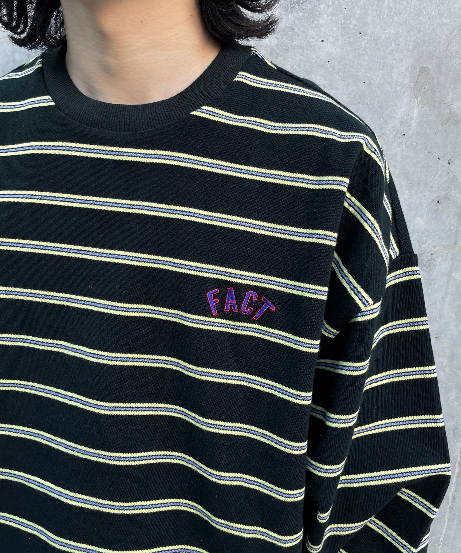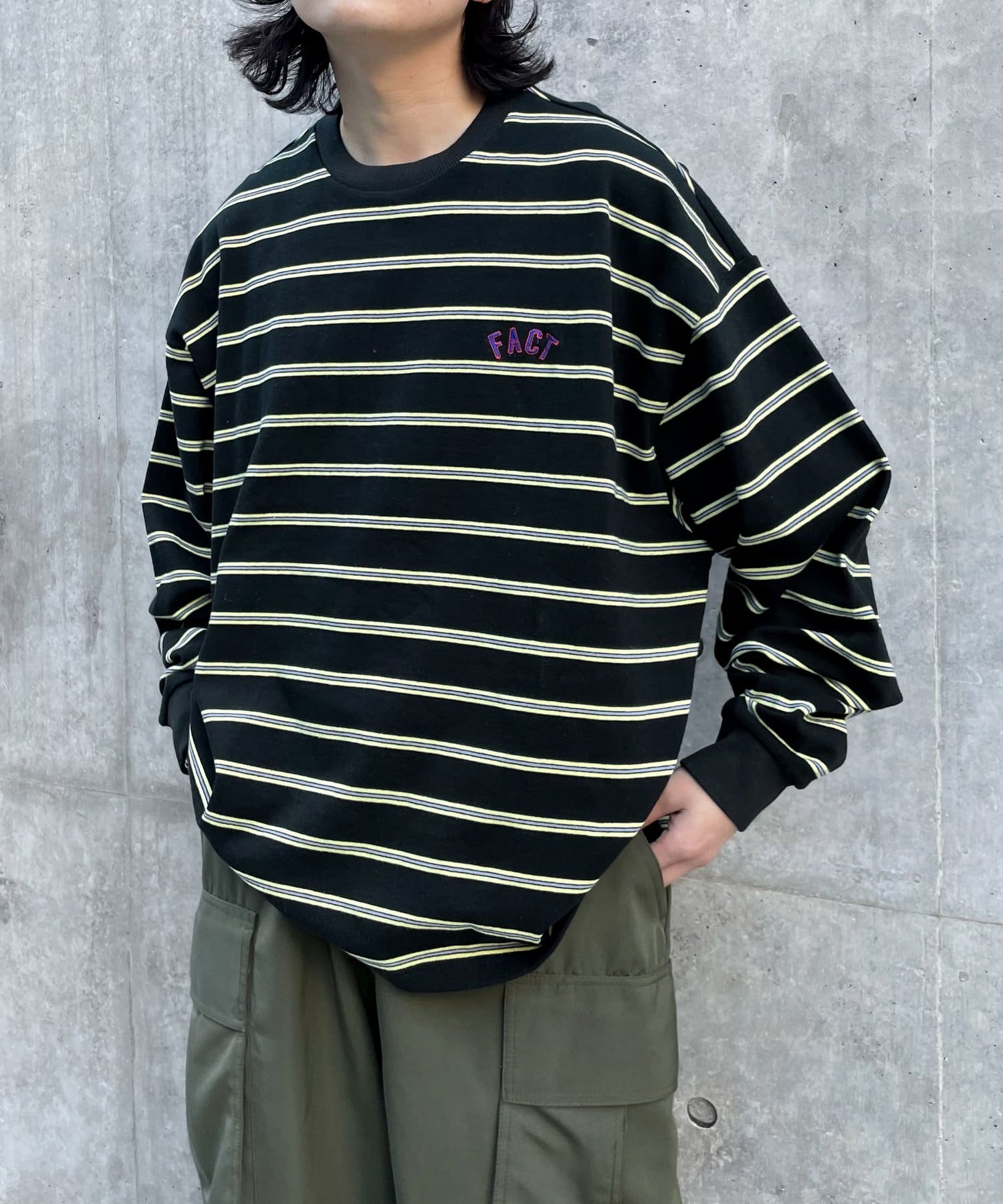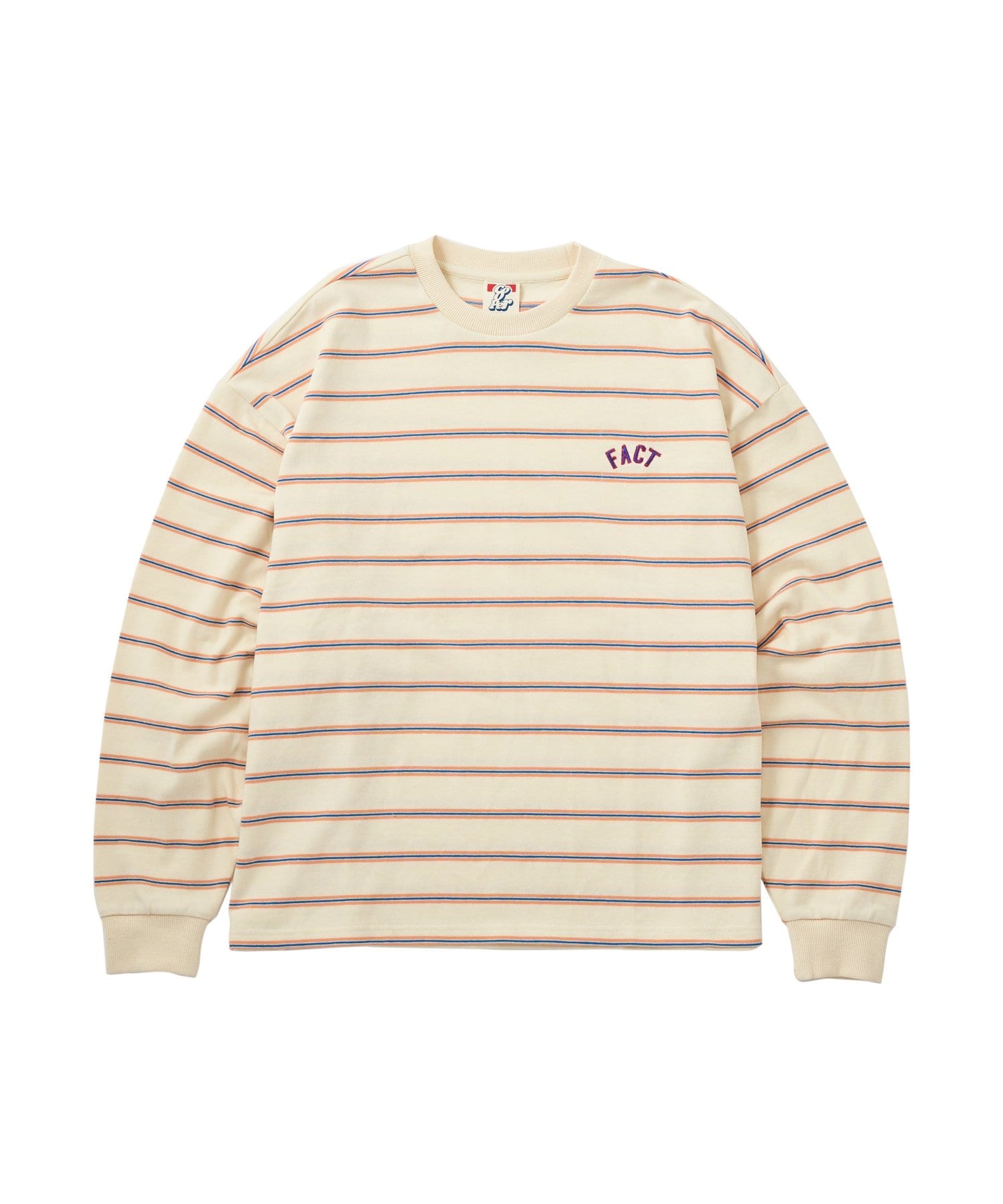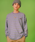 肉厚な刺繍ロゴが施された、カラフルなボーダーラインがポイントのロンTEE