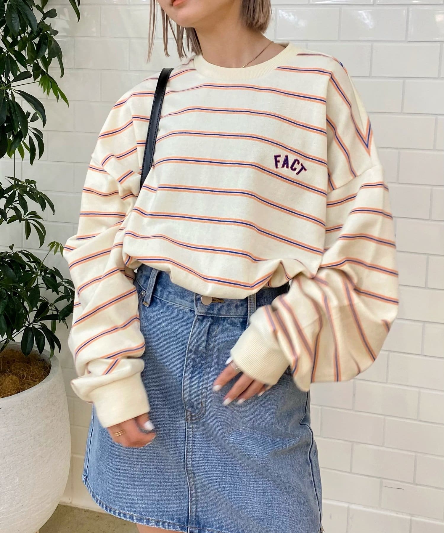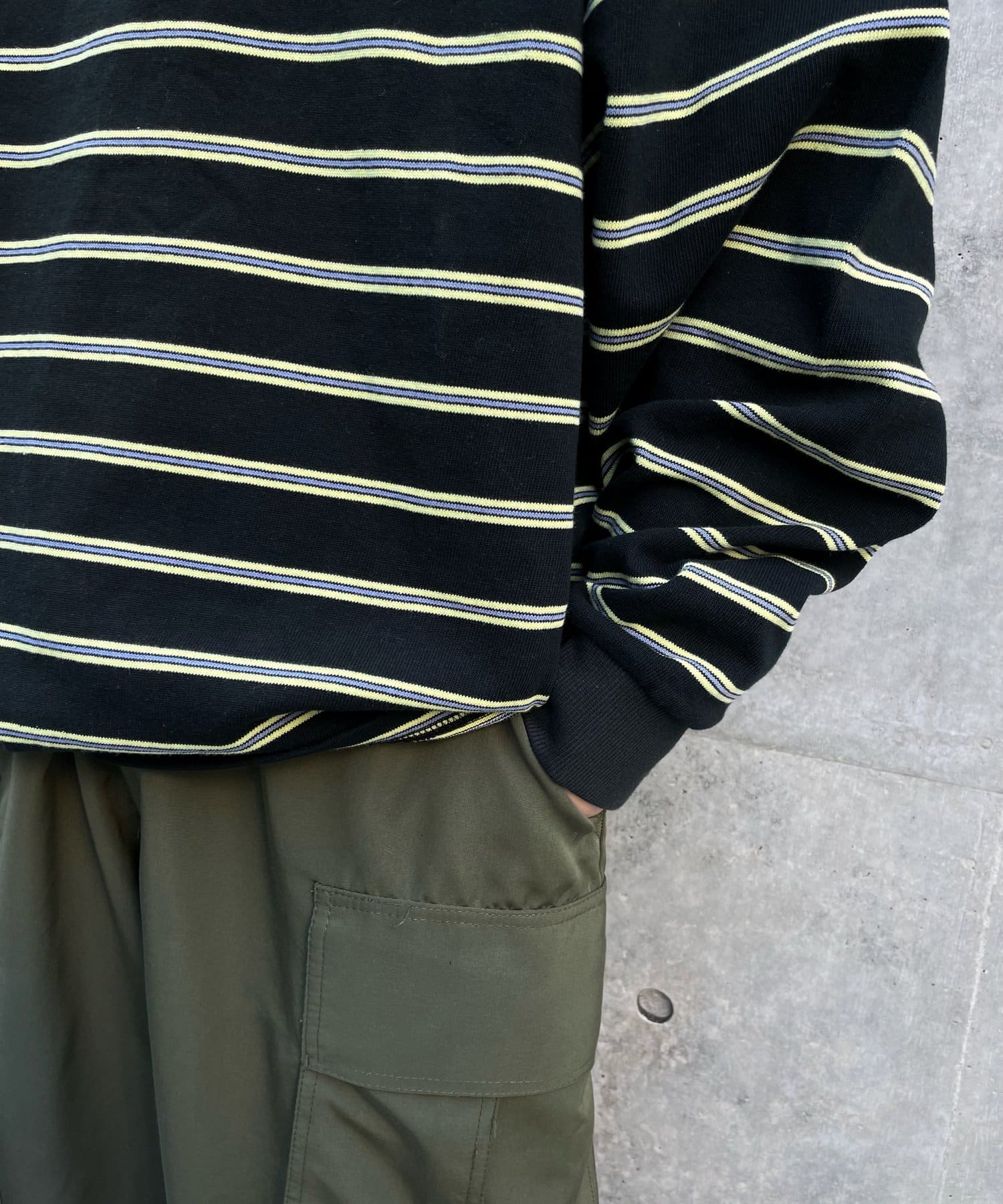 ・単色ではない鮮やかなボーダーラインがコーデに華やかさをもたらします。