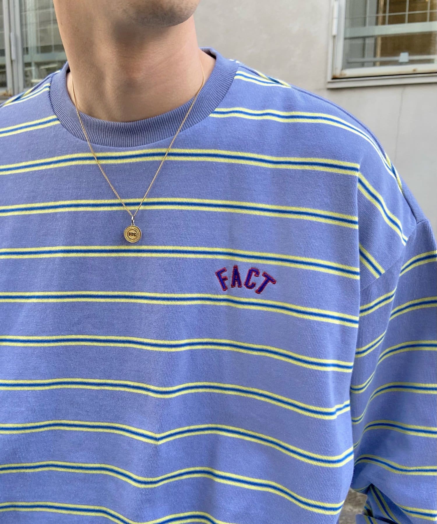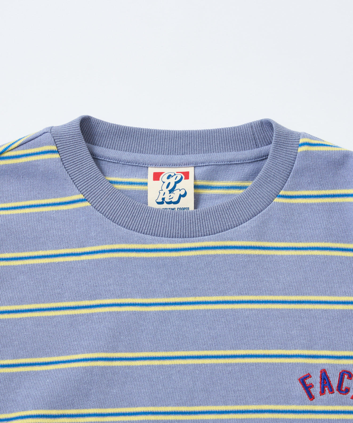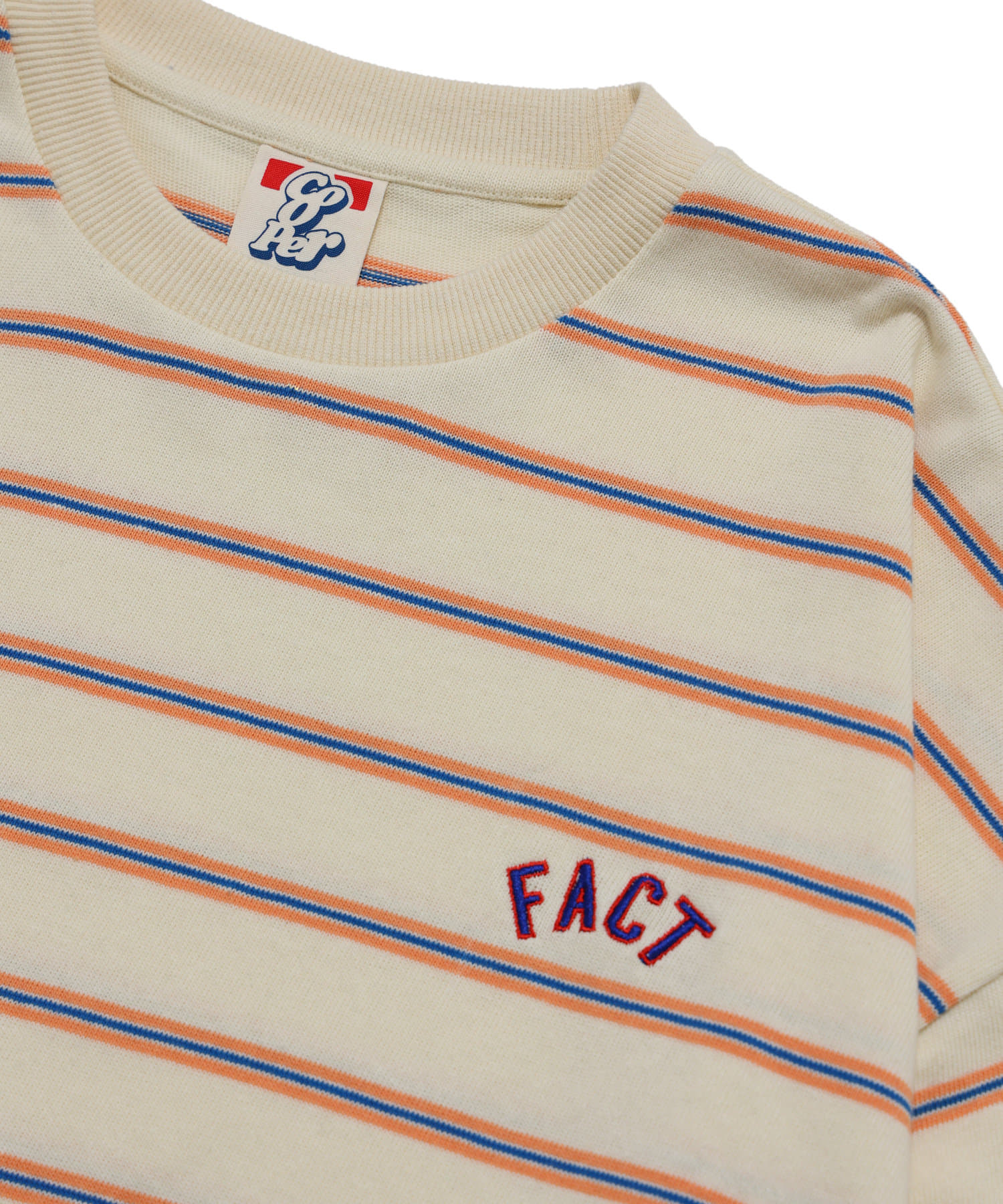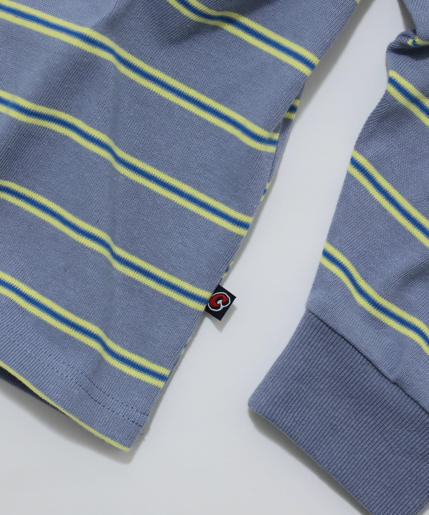 ・左胸にはボーダーに負けない配色で、ワンポイントの刺繍ロゴが施されています。