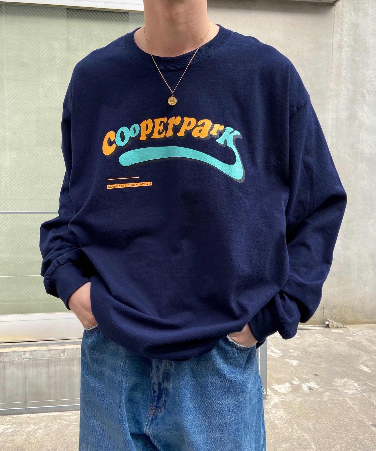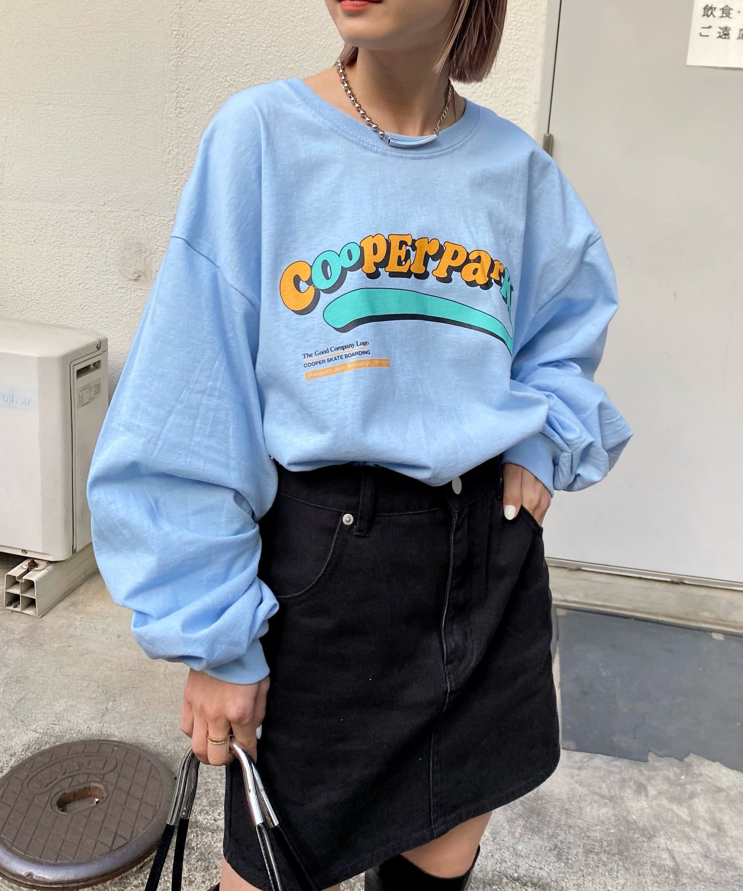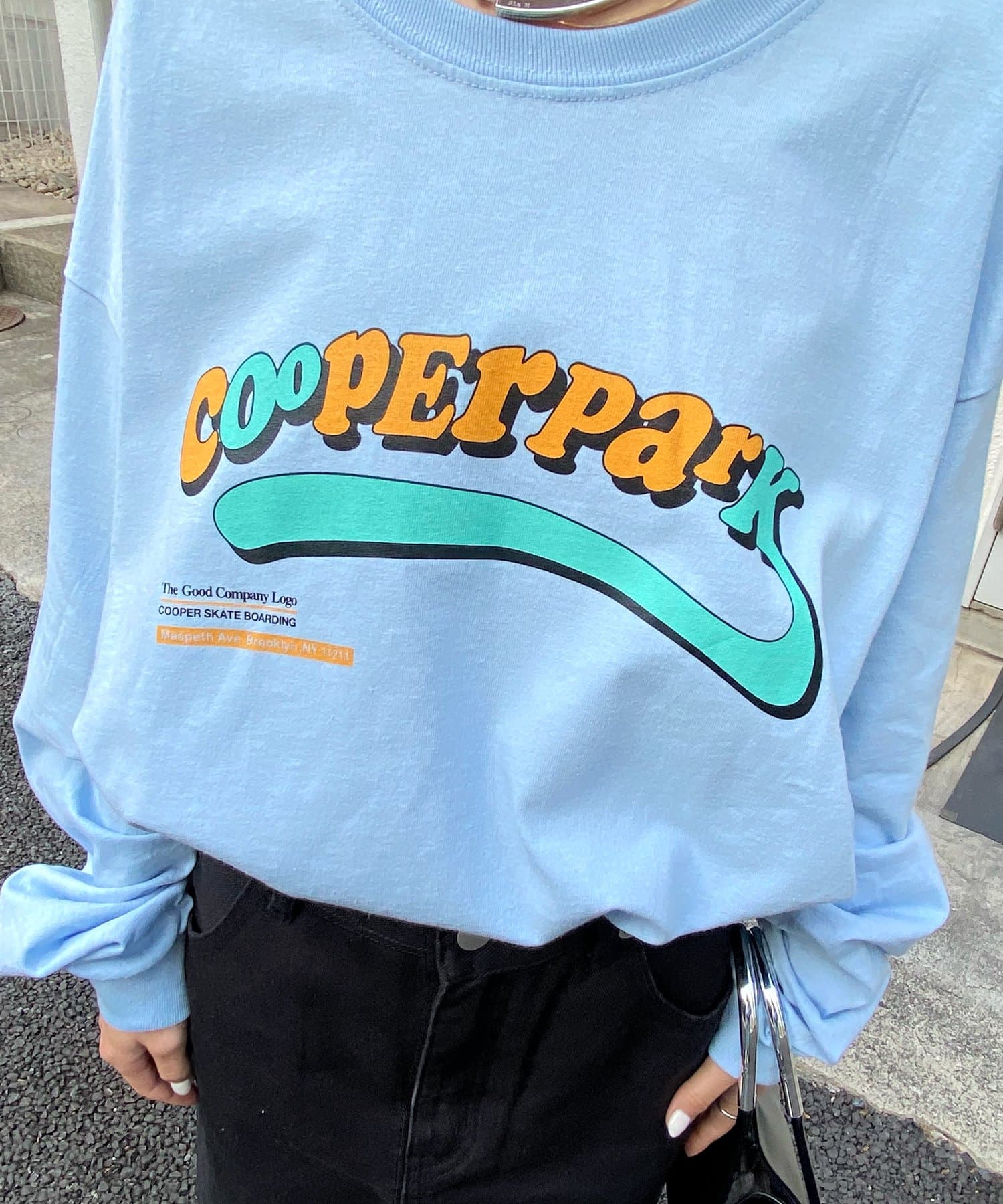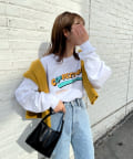 ・主張感あるオレンジ×水色のロゴなので、一枚着でも様になり、アウターからチラッと覗かせても◎。