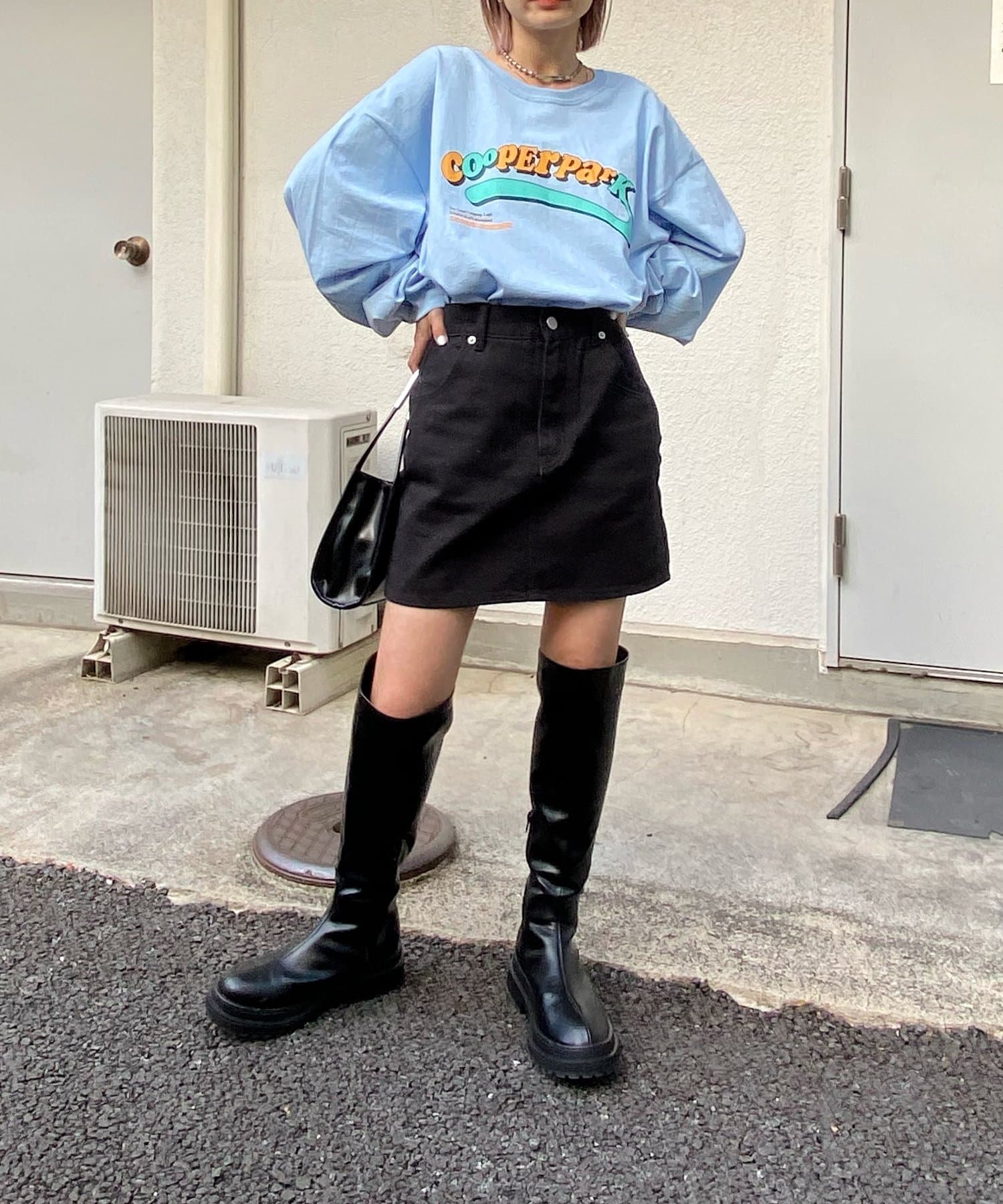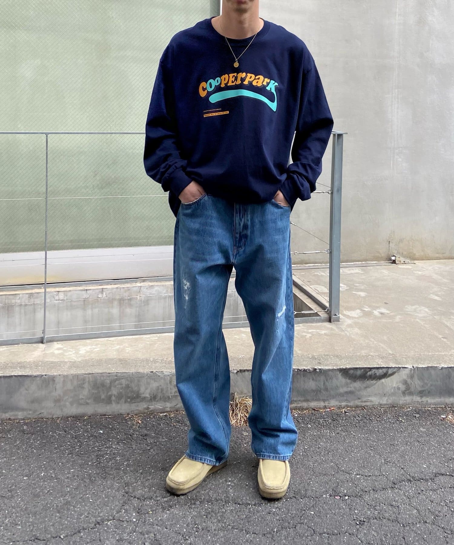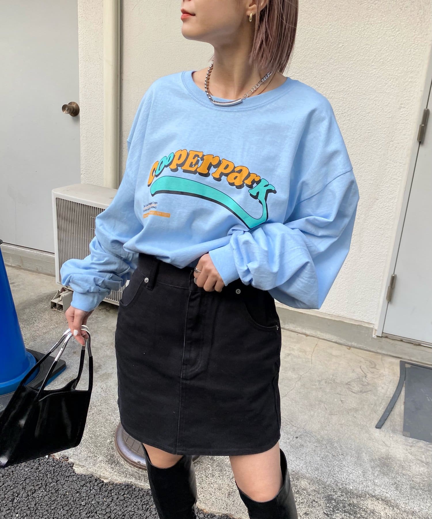 ・主張感あるオレンジ×水色のロゴなので、一枚着でも様になり、アウターからチラッと覗かせても◎。