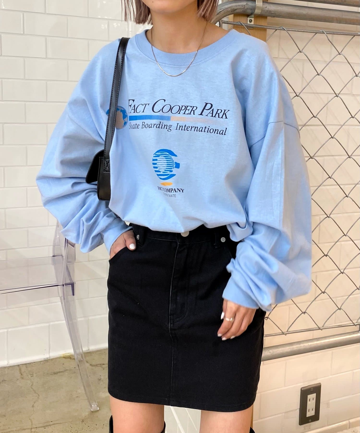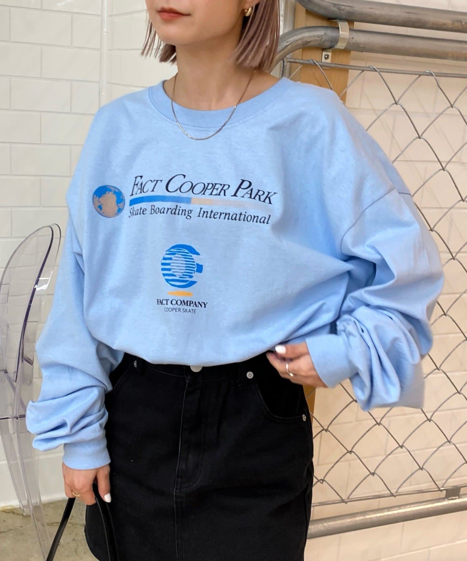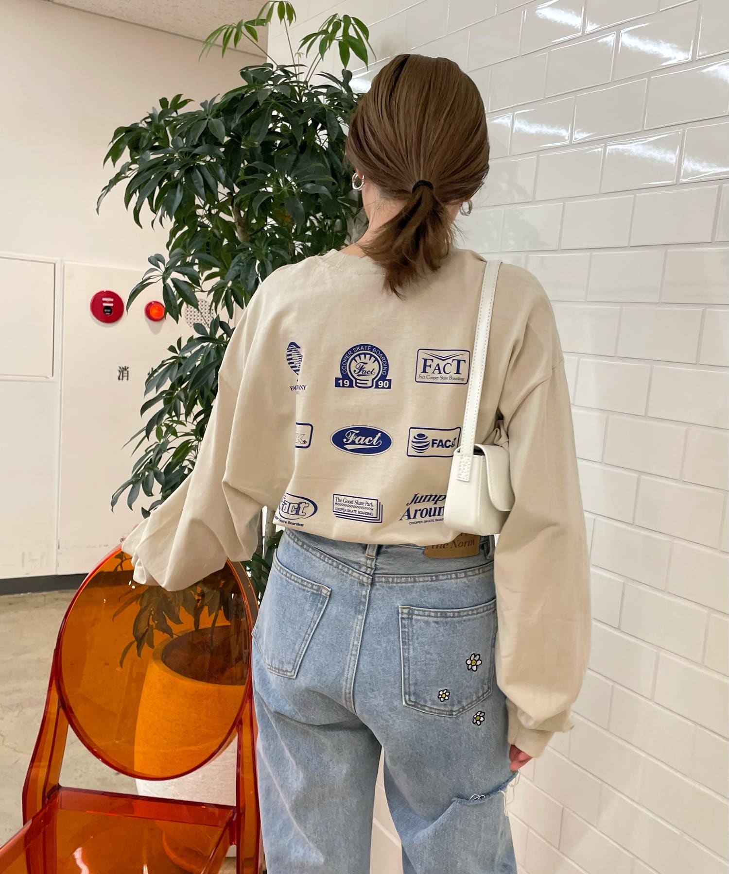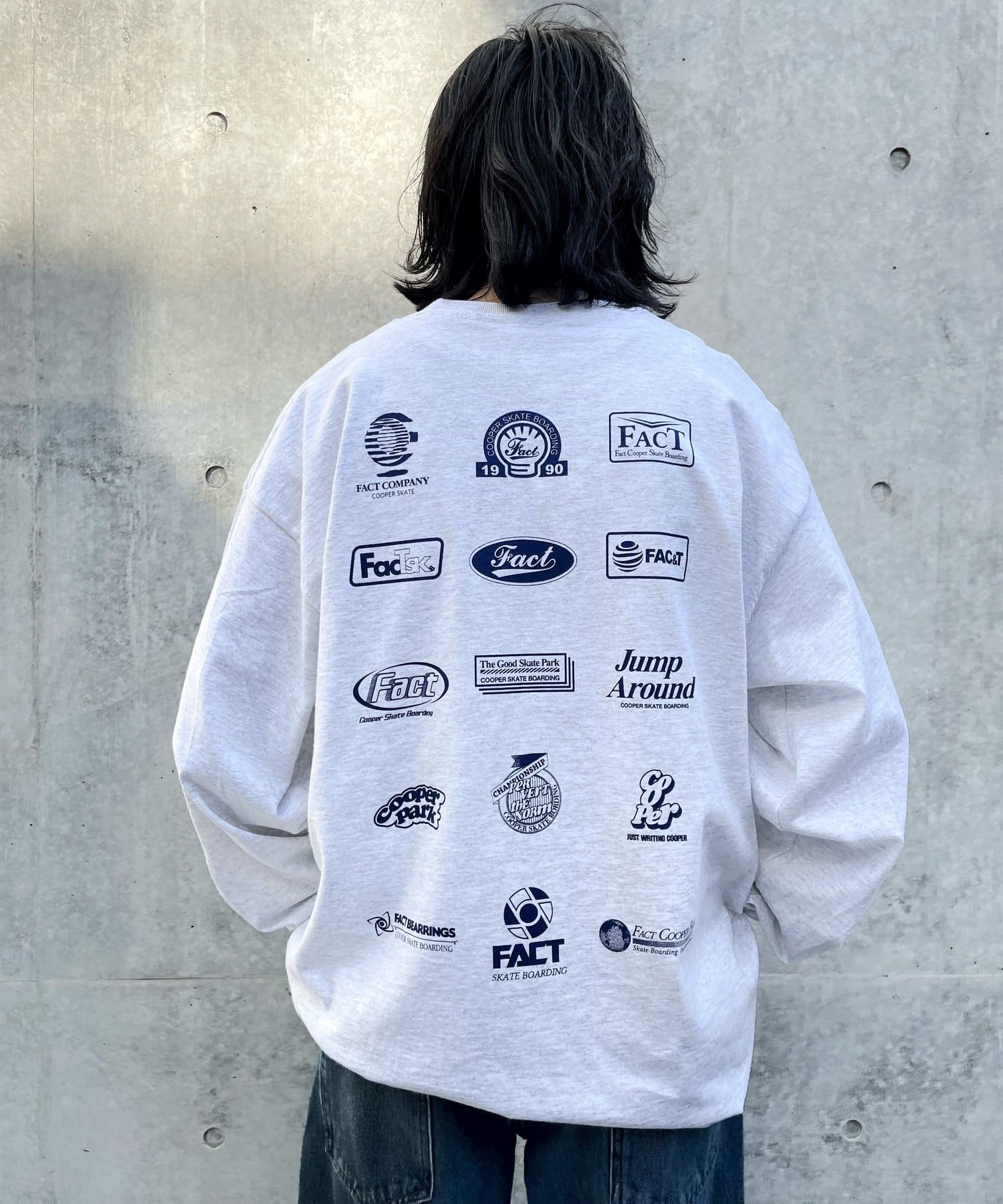 前も後ろもインパクト大!企業風ロゴプリントのロンTEE