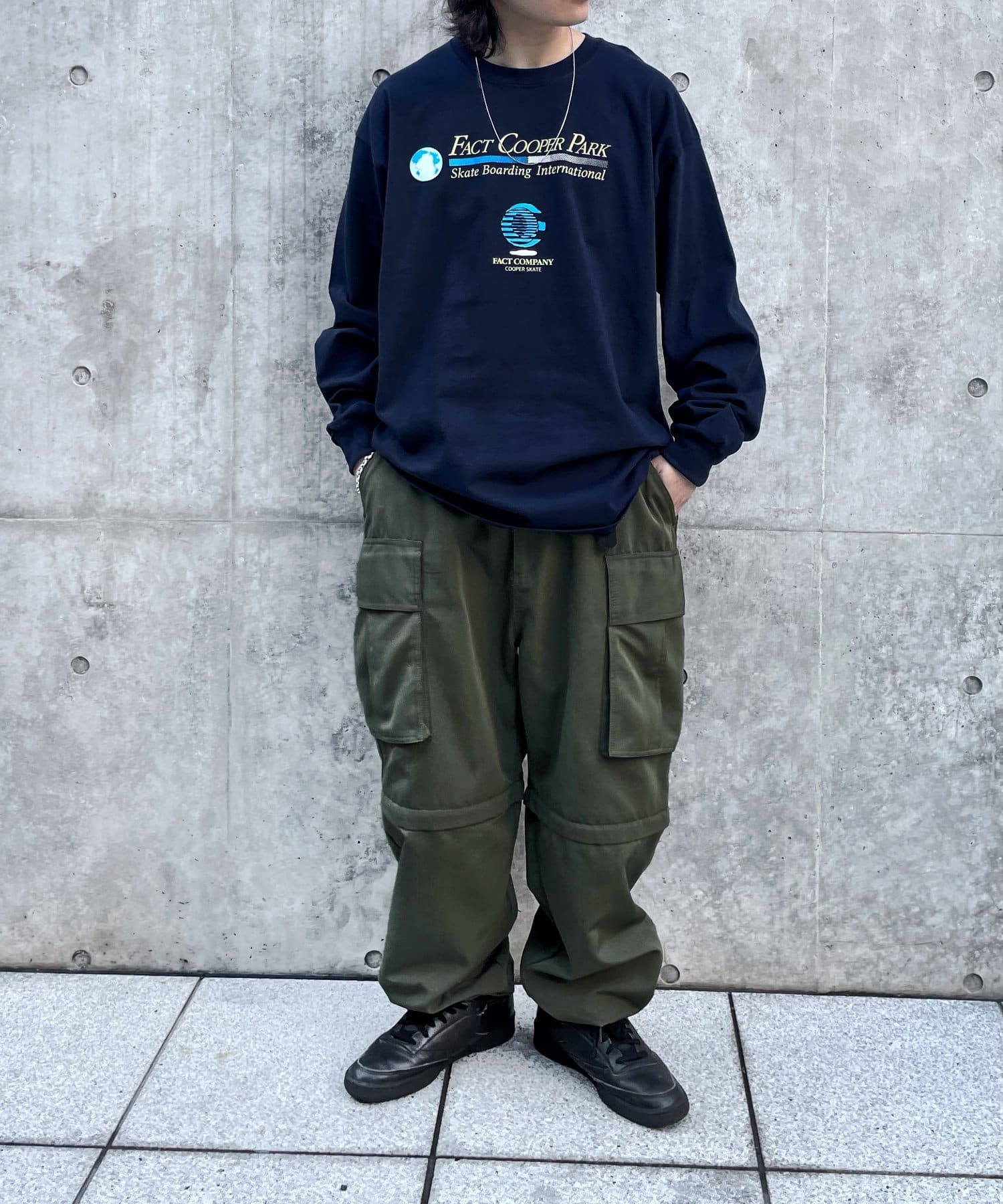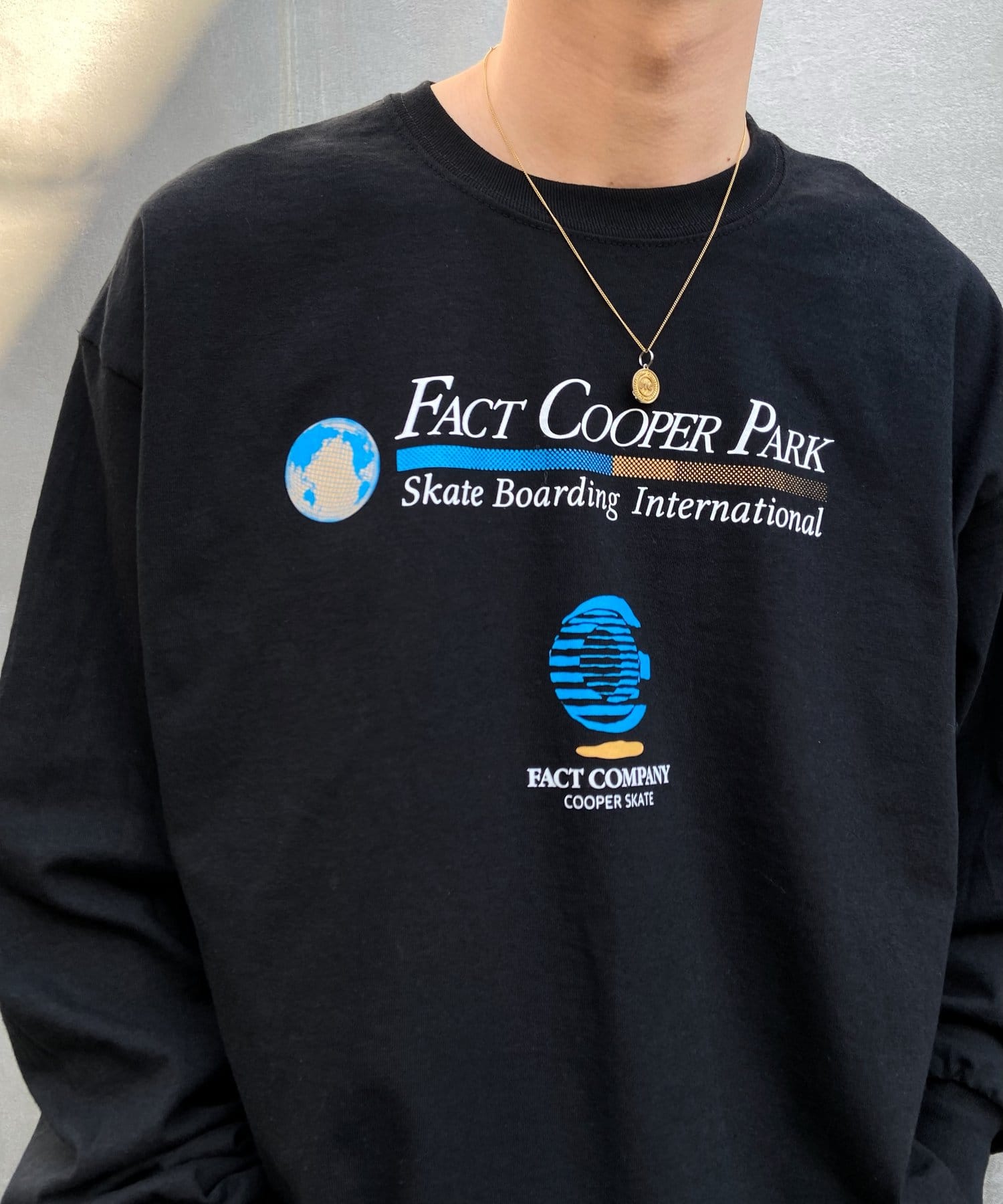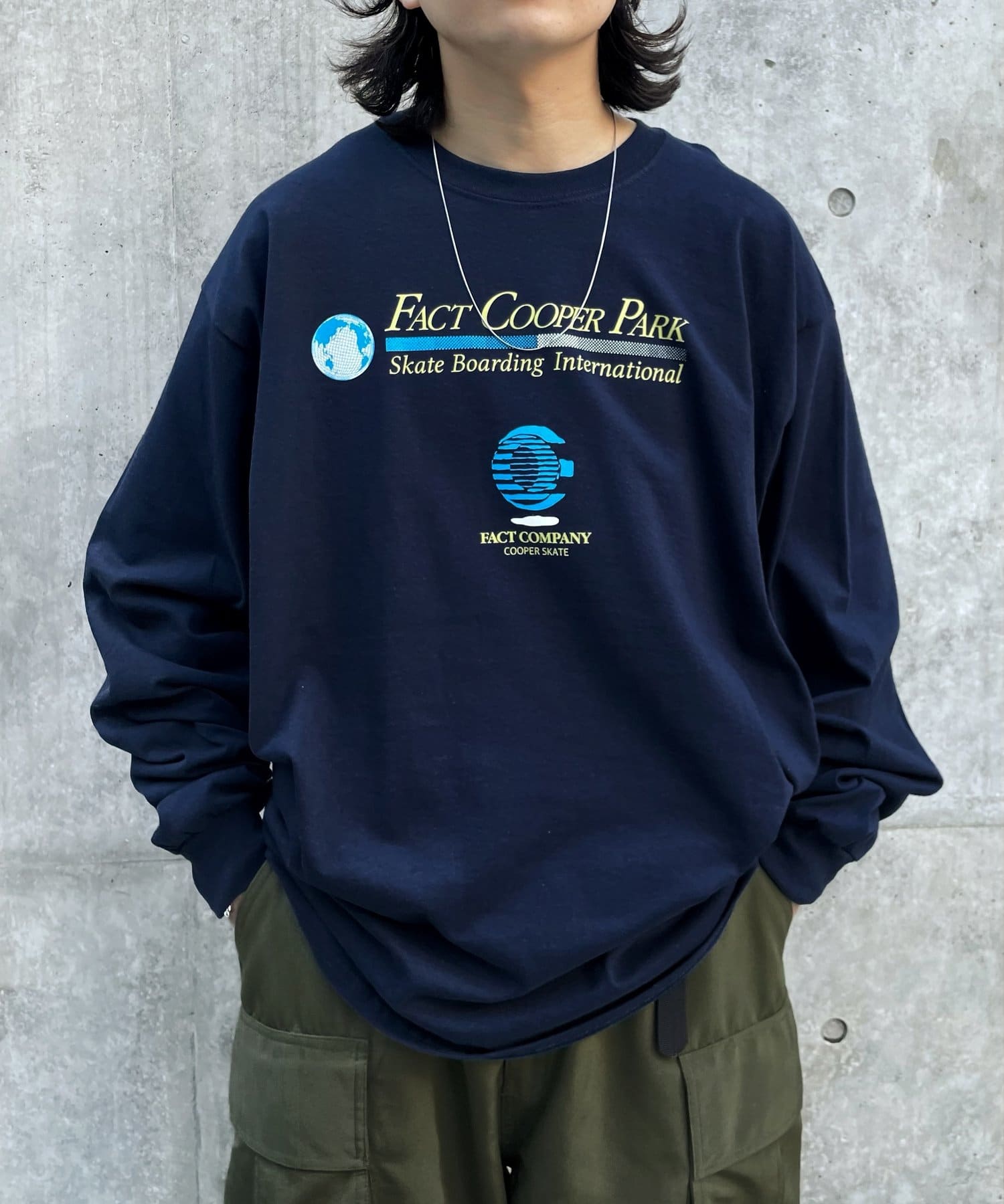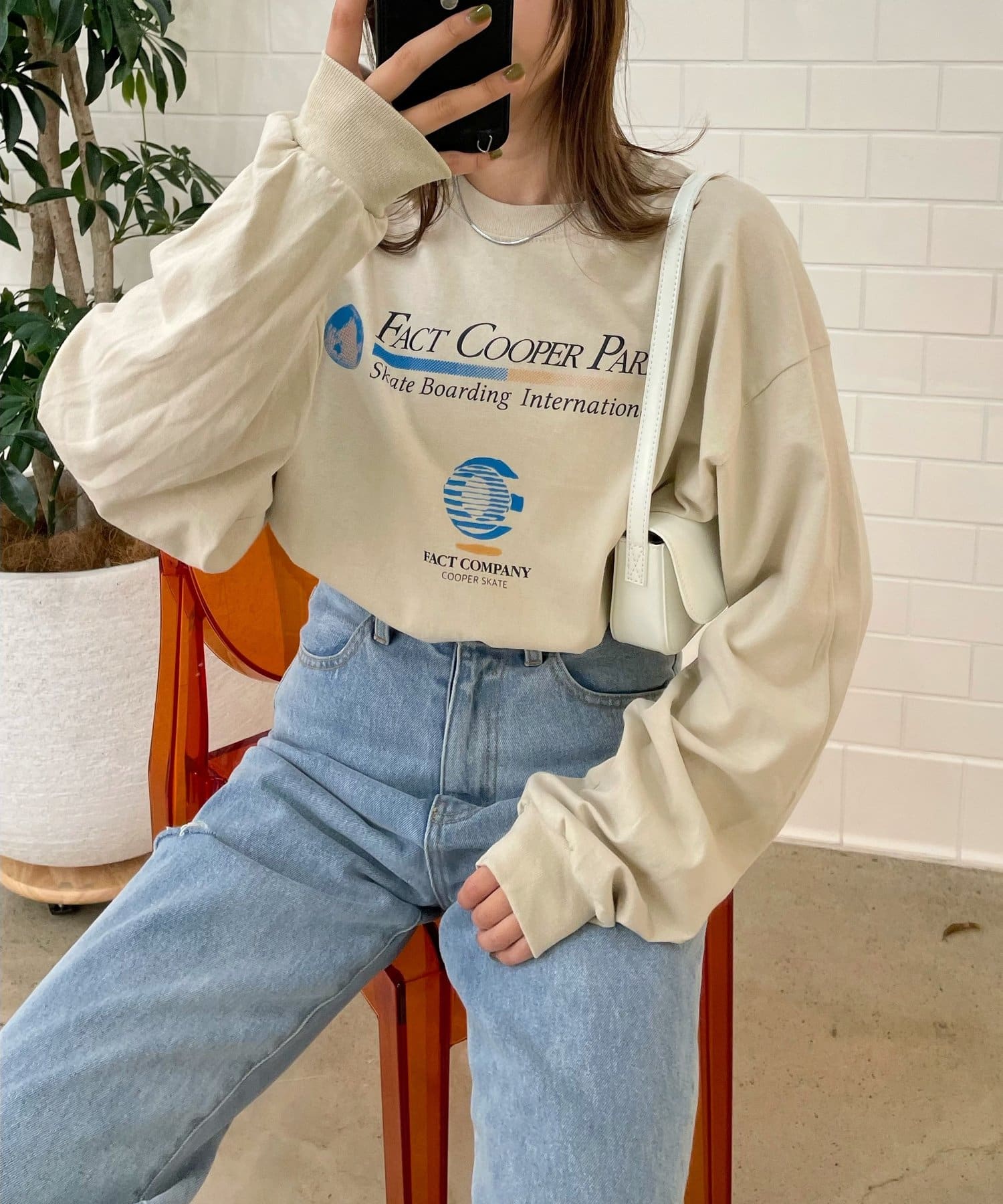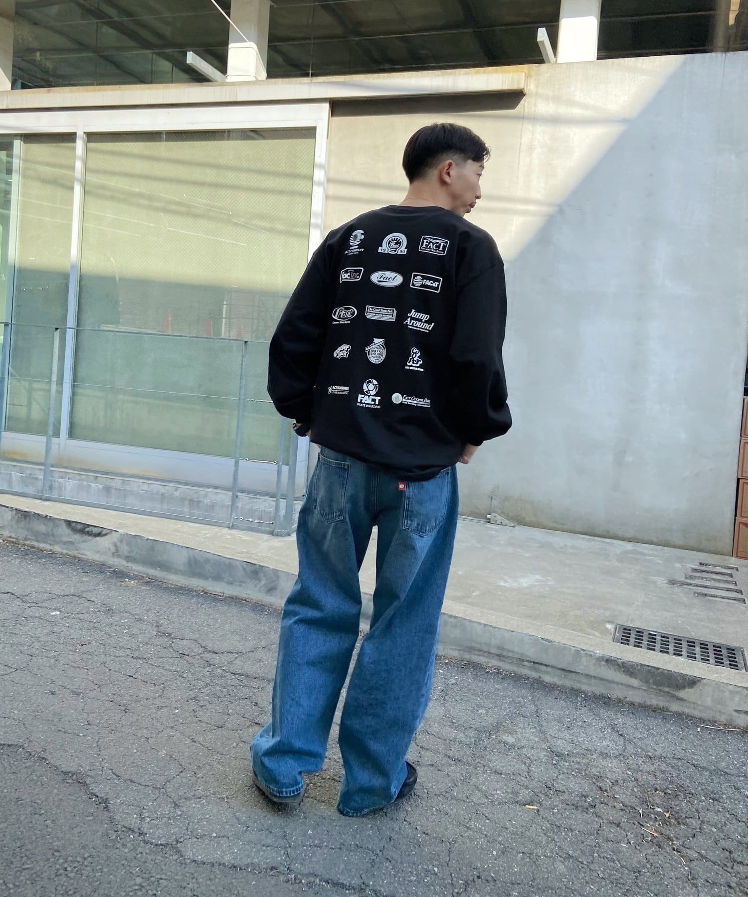 前も後ろもインパクト大!企業風ロゴプリントのロンTEE