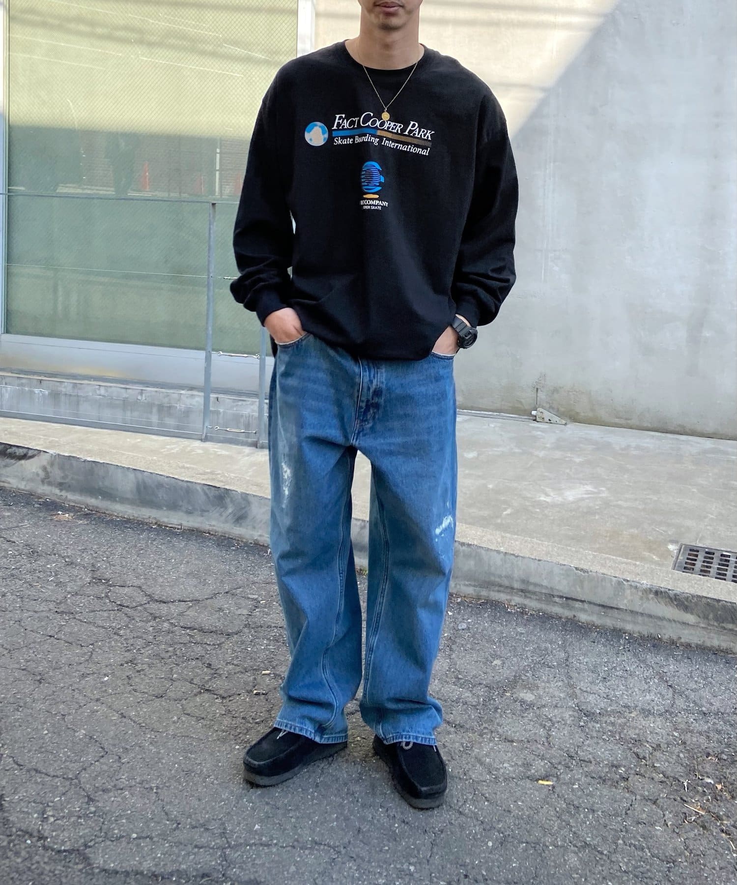 ・古着風カジュアルスタイルには、デニム合わせがマスト。