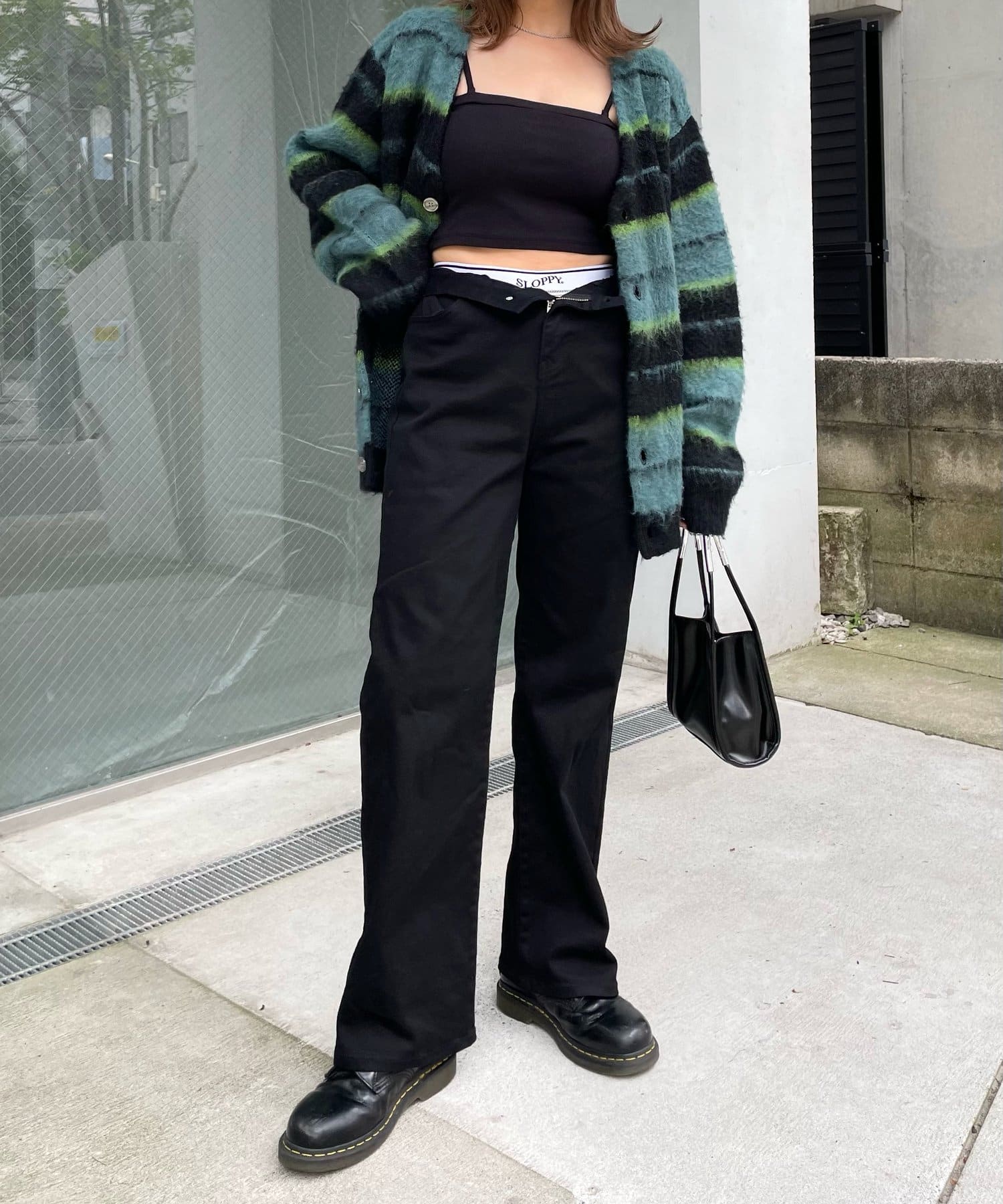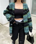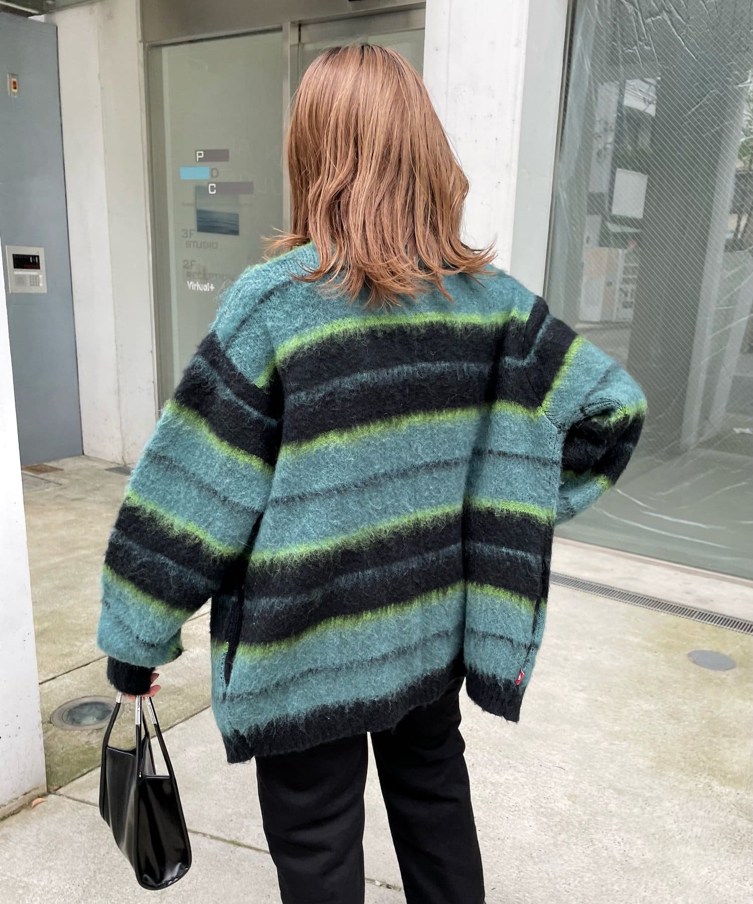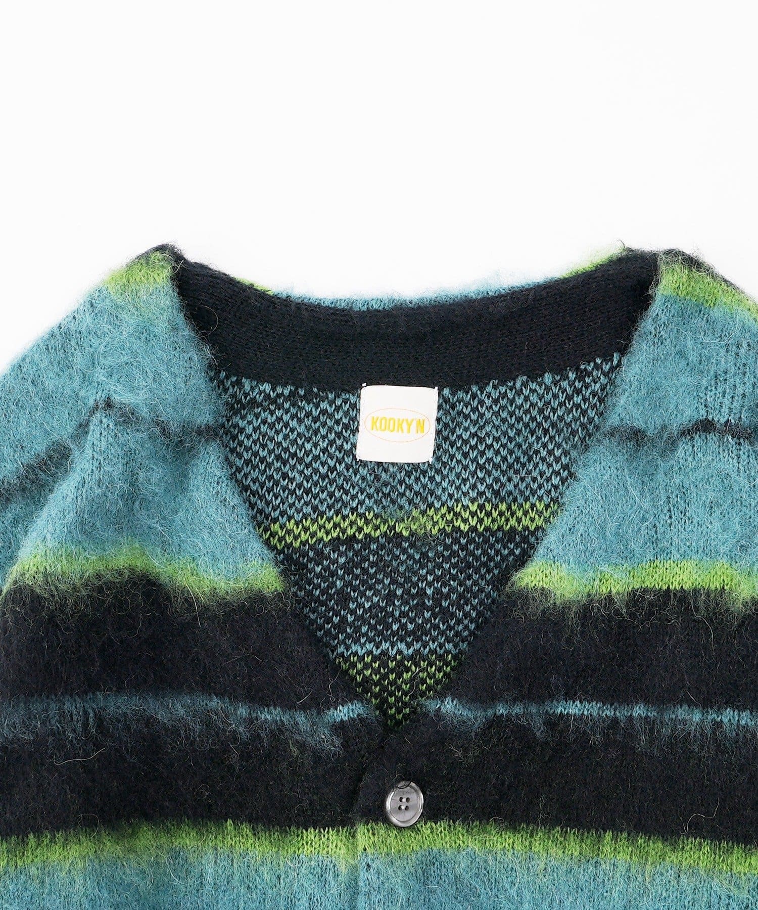 《WEB限定》【KOOKY'N】アルパカ混ボーダーモヘアライクカーディガン