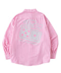 ・胸元の刺繍とバックプリントが特徴のビッグシャツ