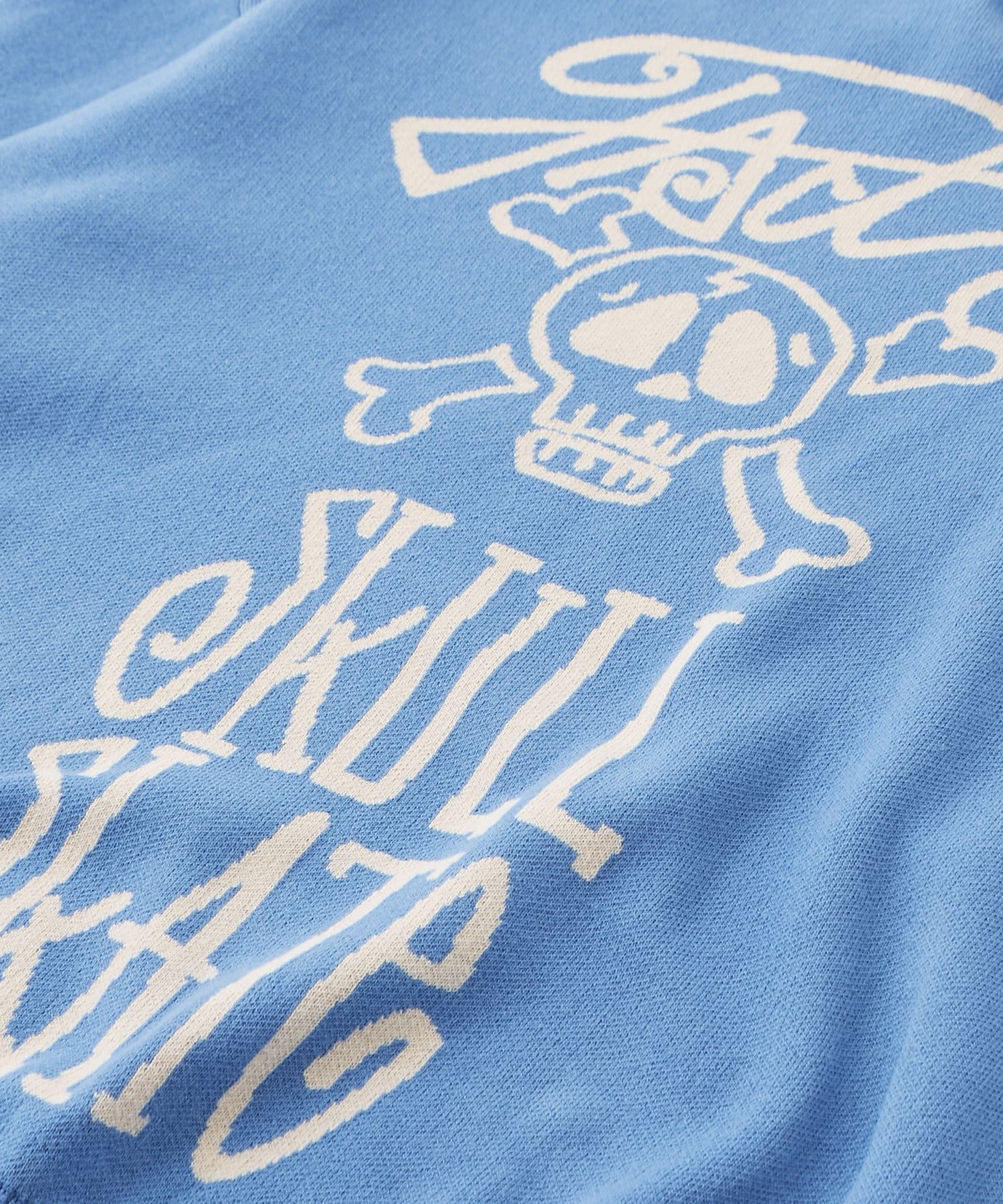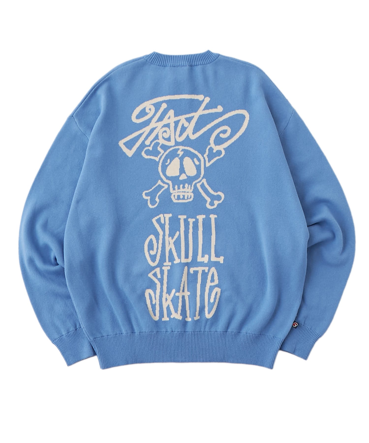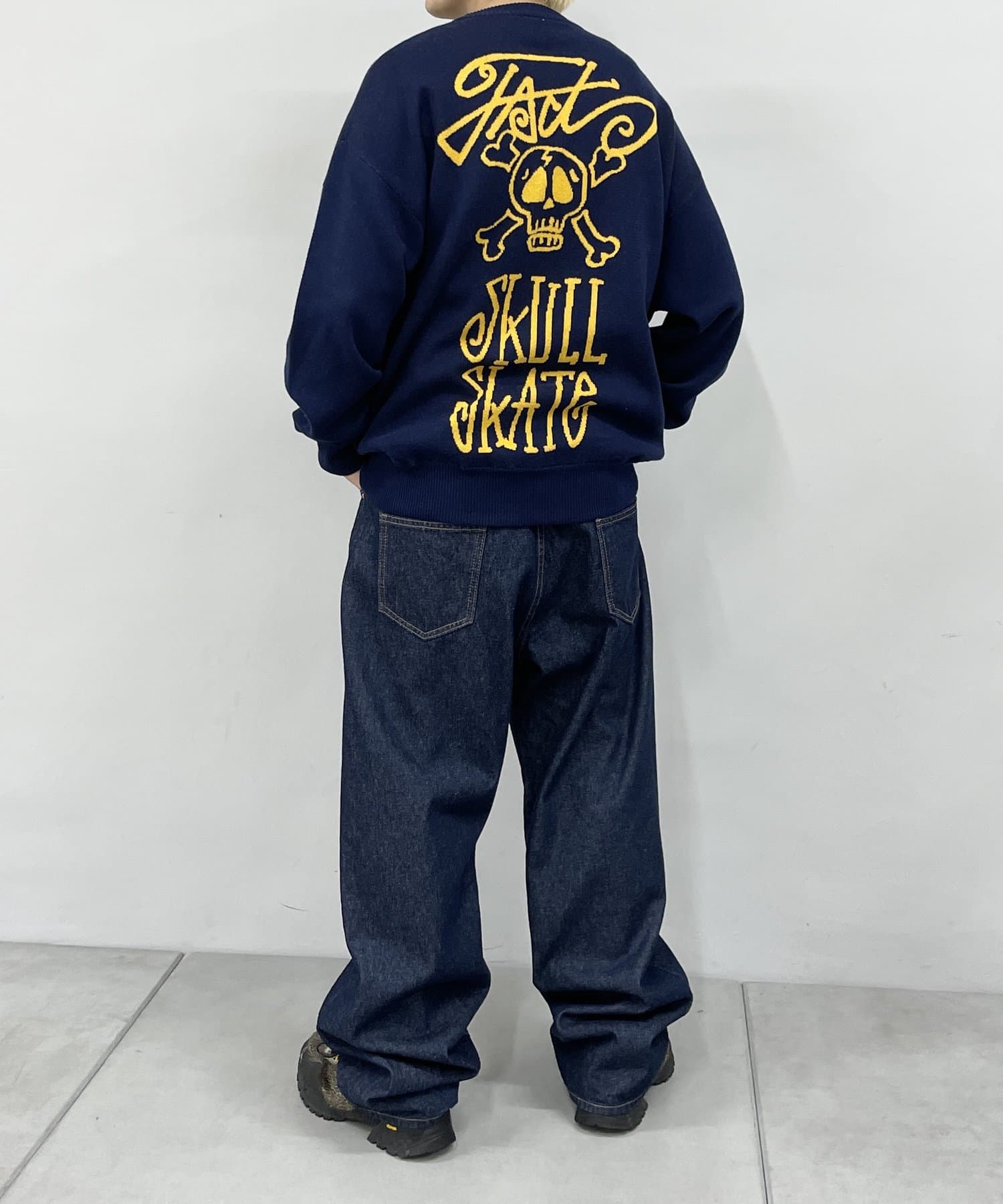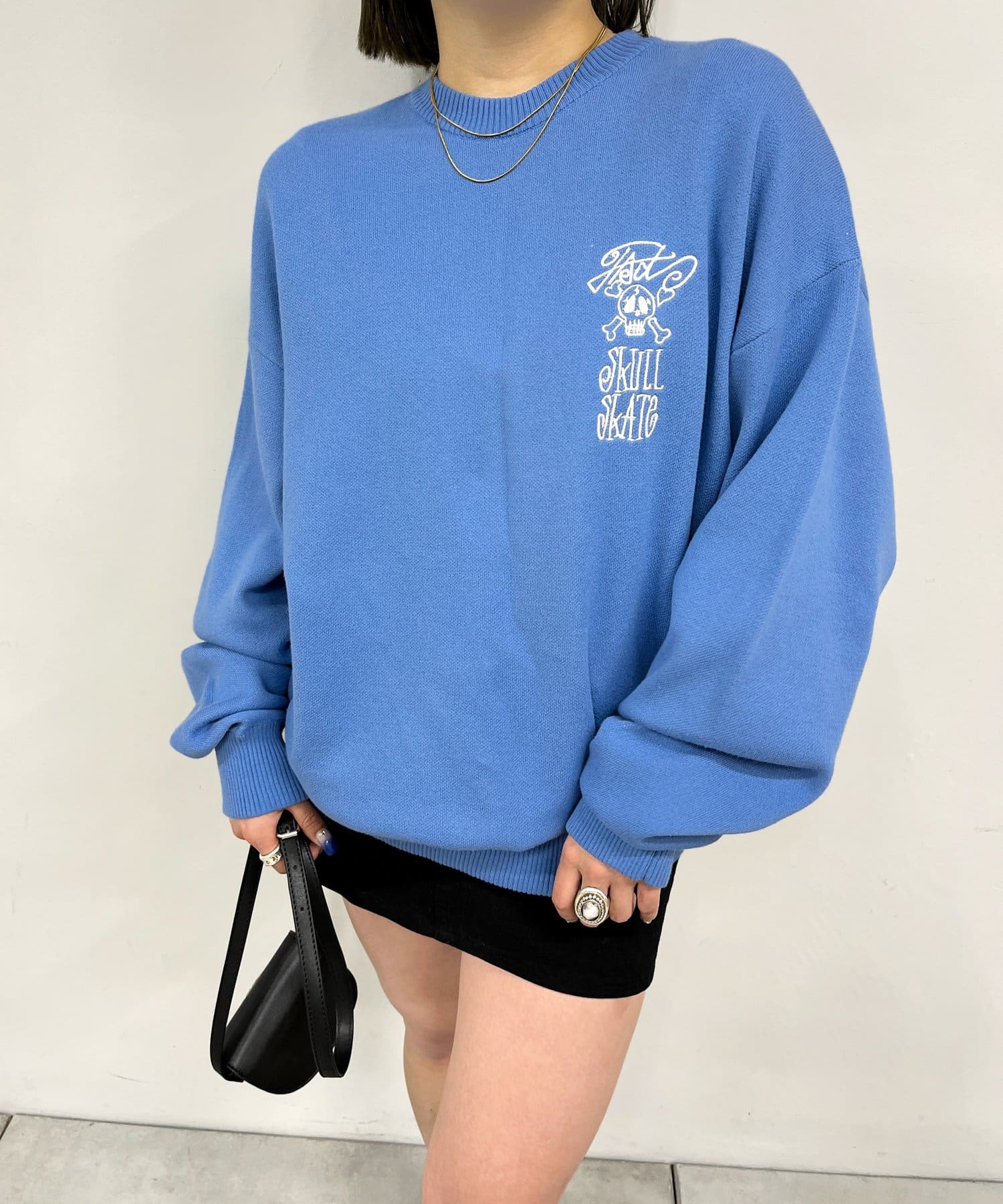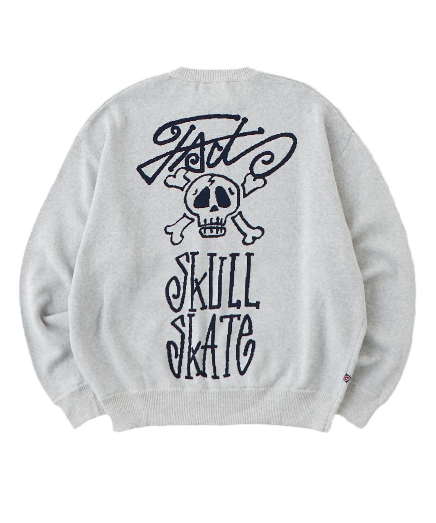 ・フロントはタギングロゴ刺繍。バックのスカルロゴのデザインが特徴的なニット。