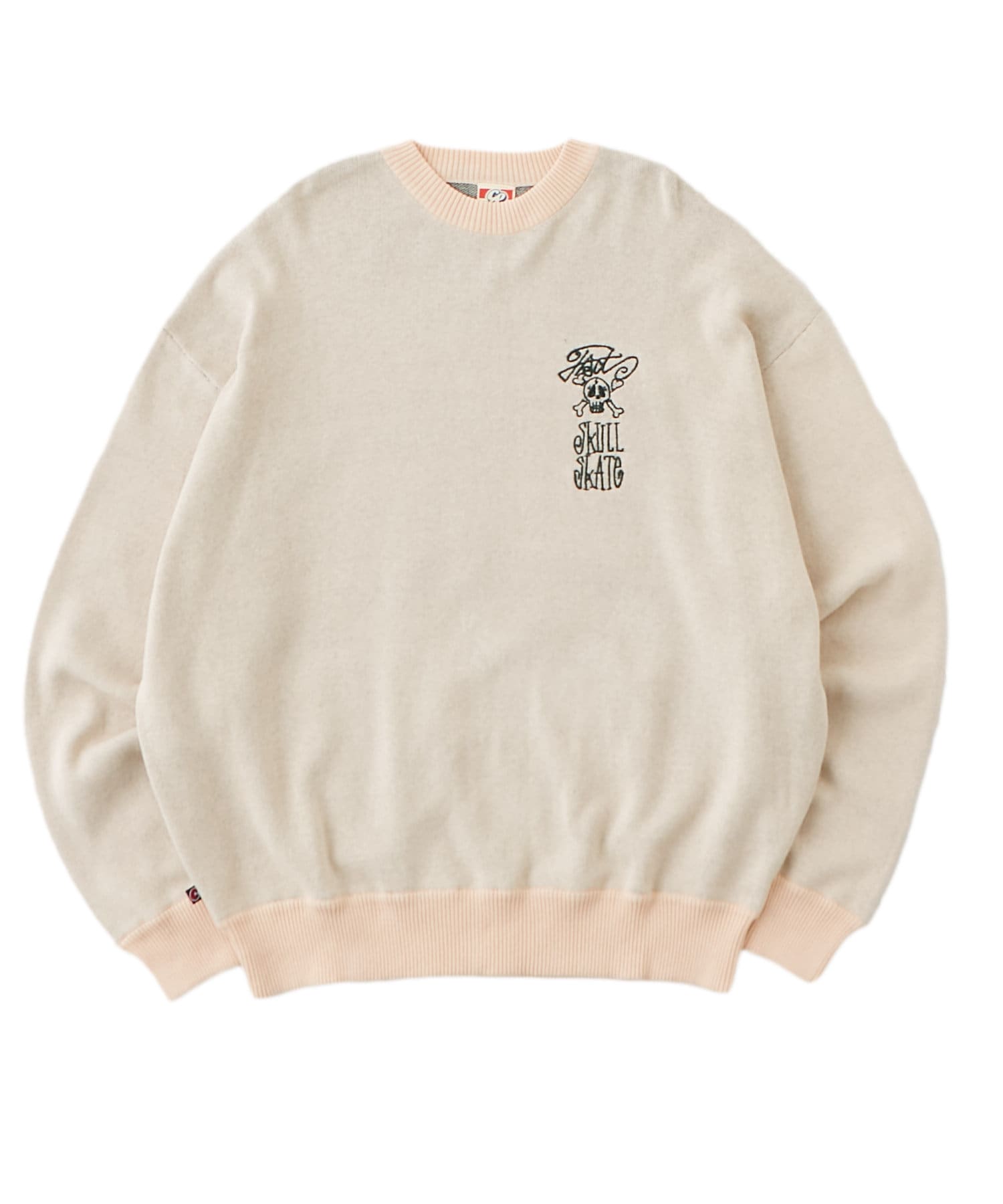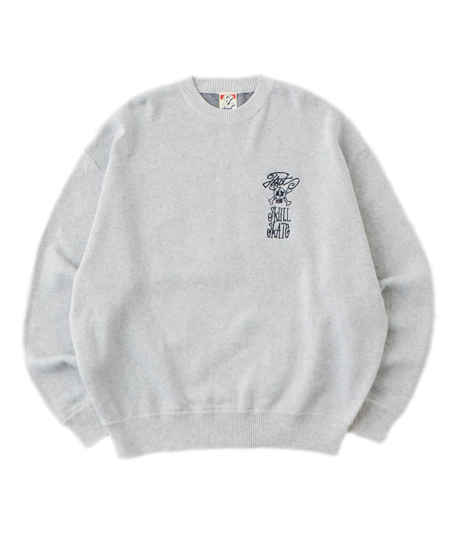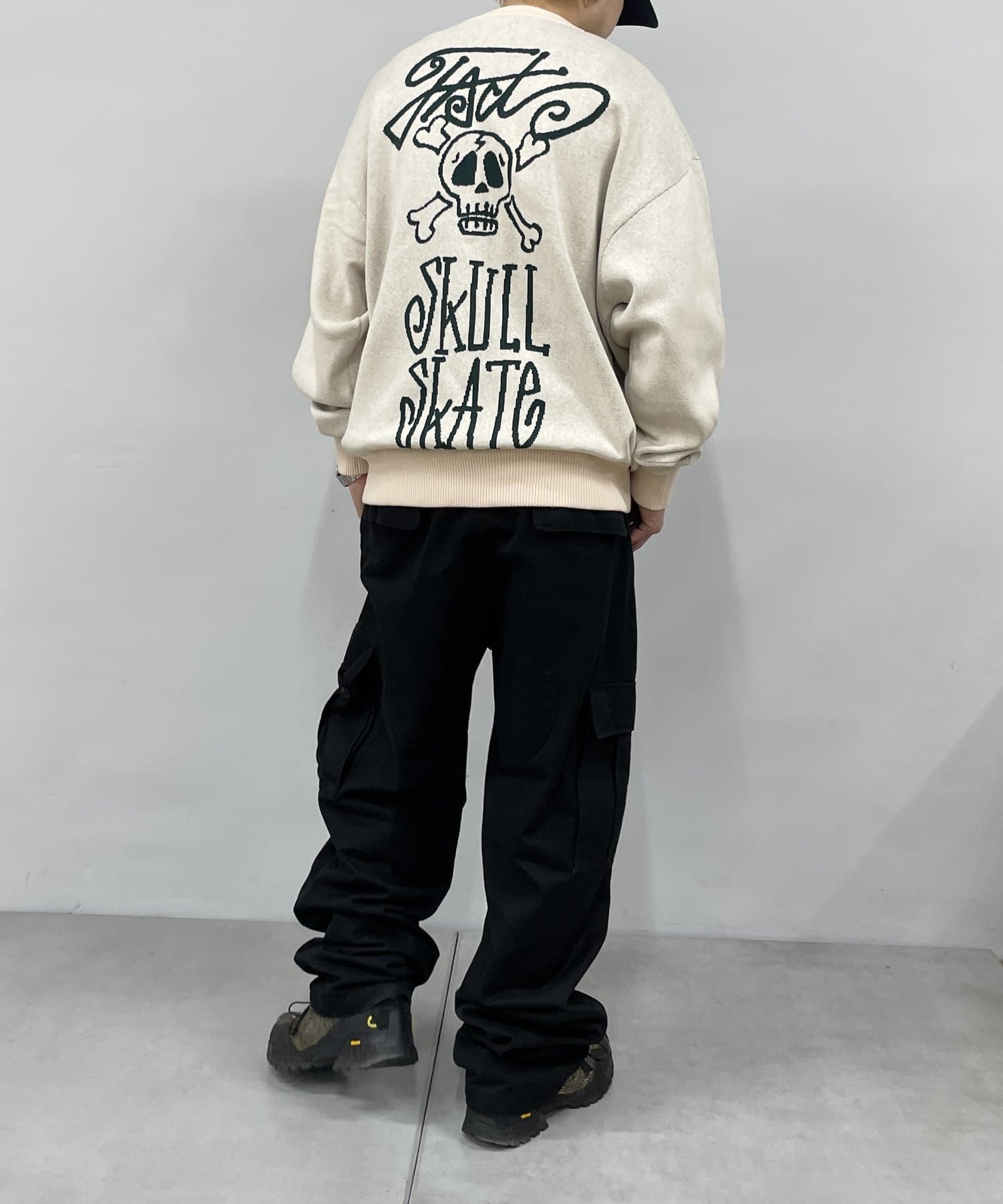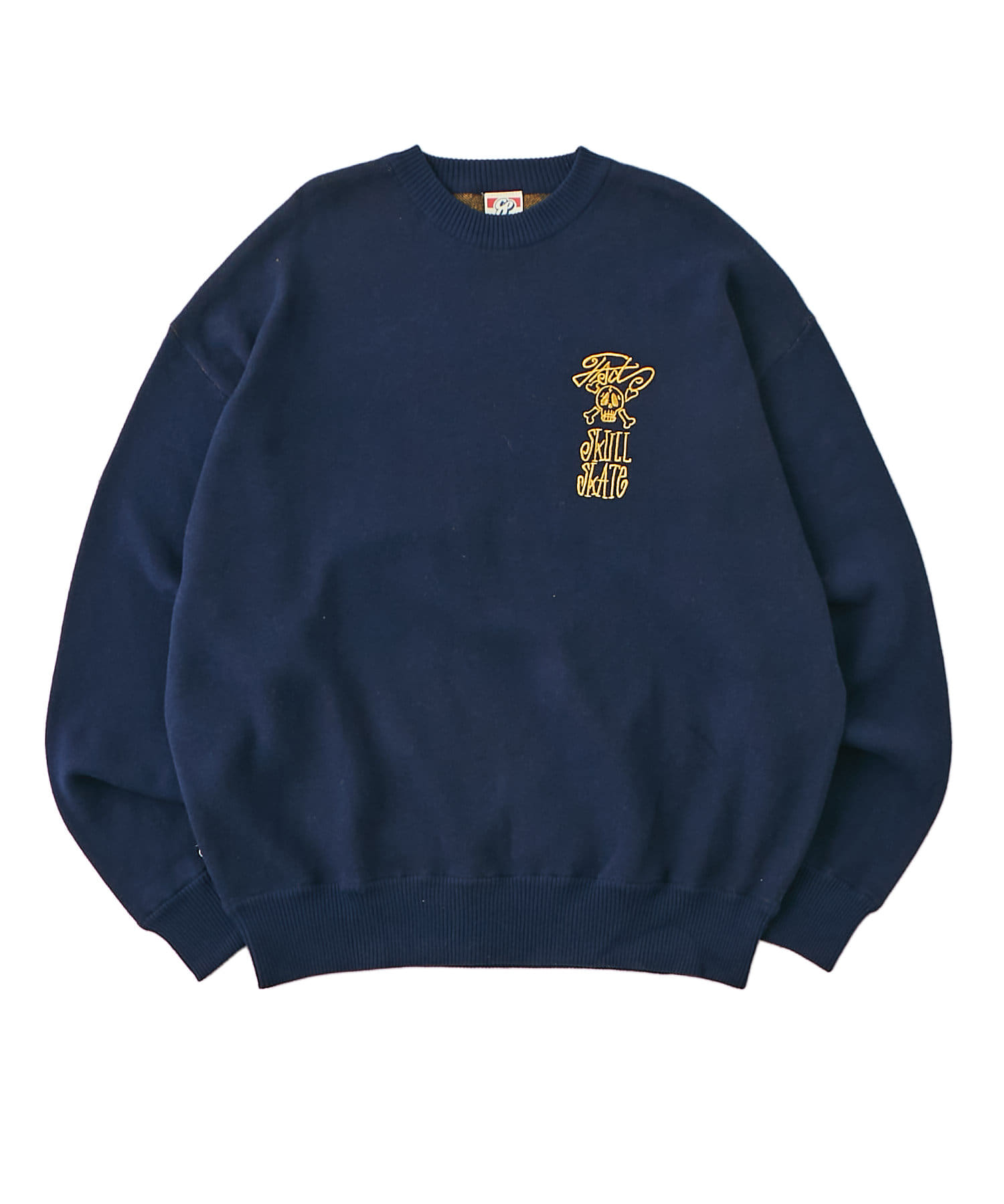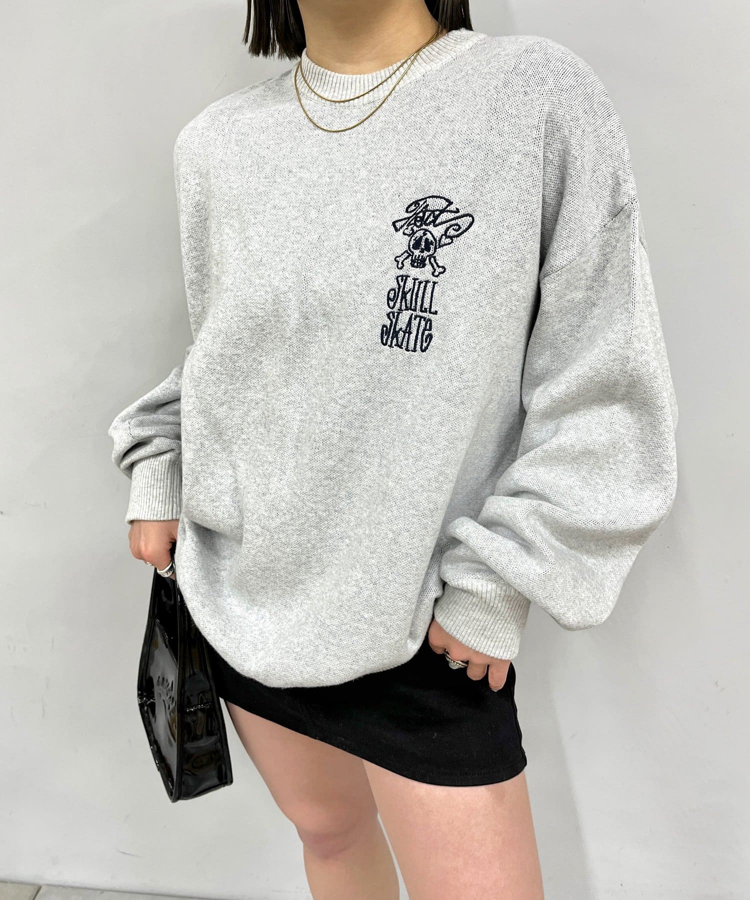 ・フロントはタギングロゴ刺繍。バックのスカルロゴのデザインが特徴的なニット。