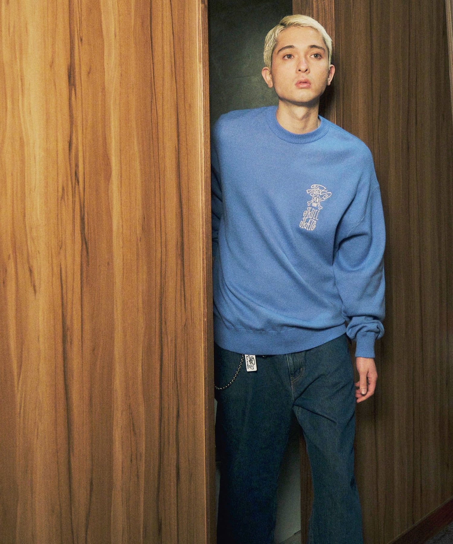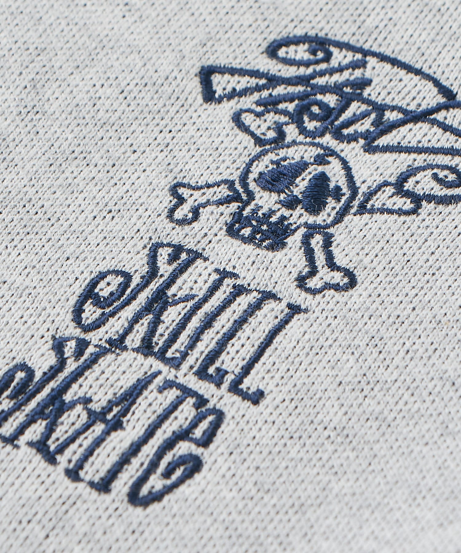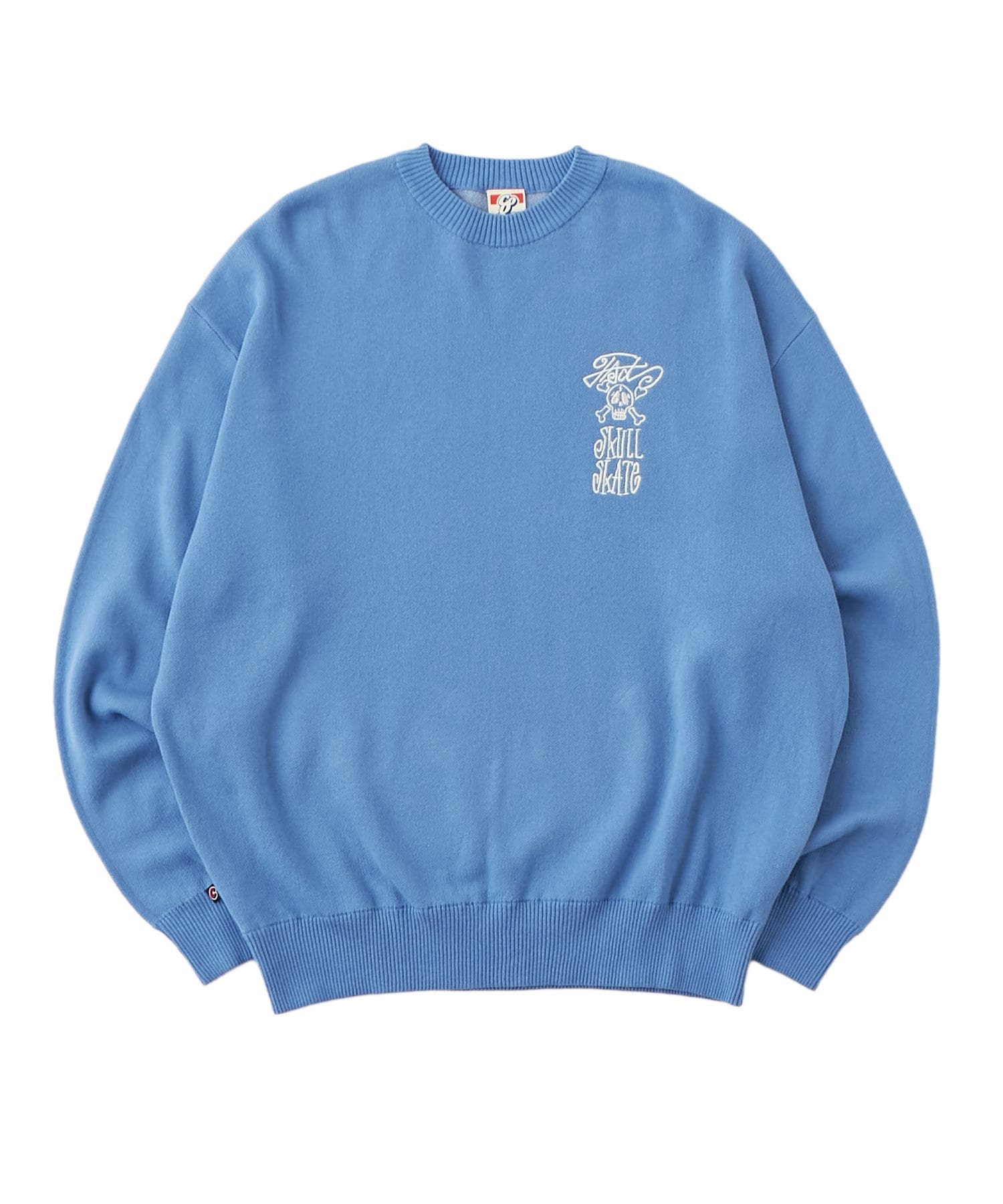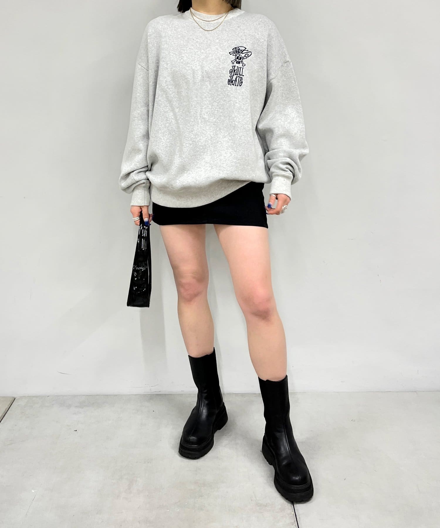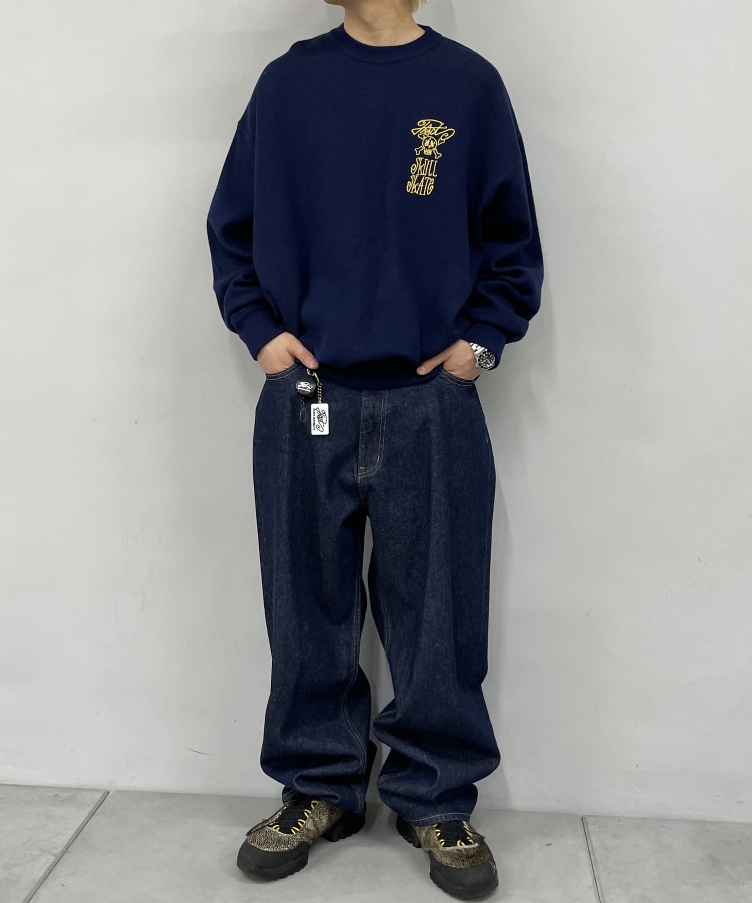 ・フロントはタギングロゴ刺繍。バックのスカルロゴのデザインが特徴的なニット。