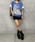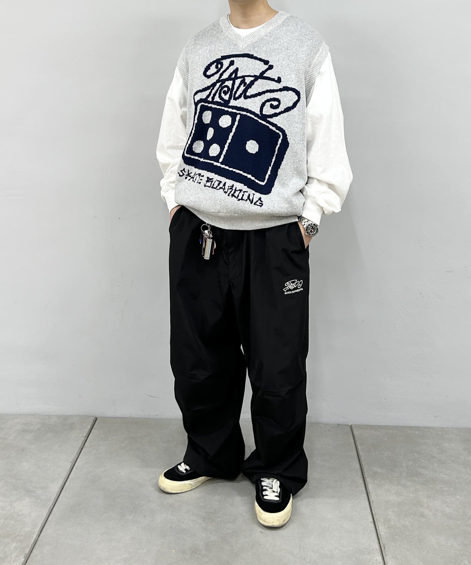 ロゴのインパクトがあるのでレイヤードの1枚着がおすすめ。