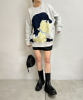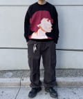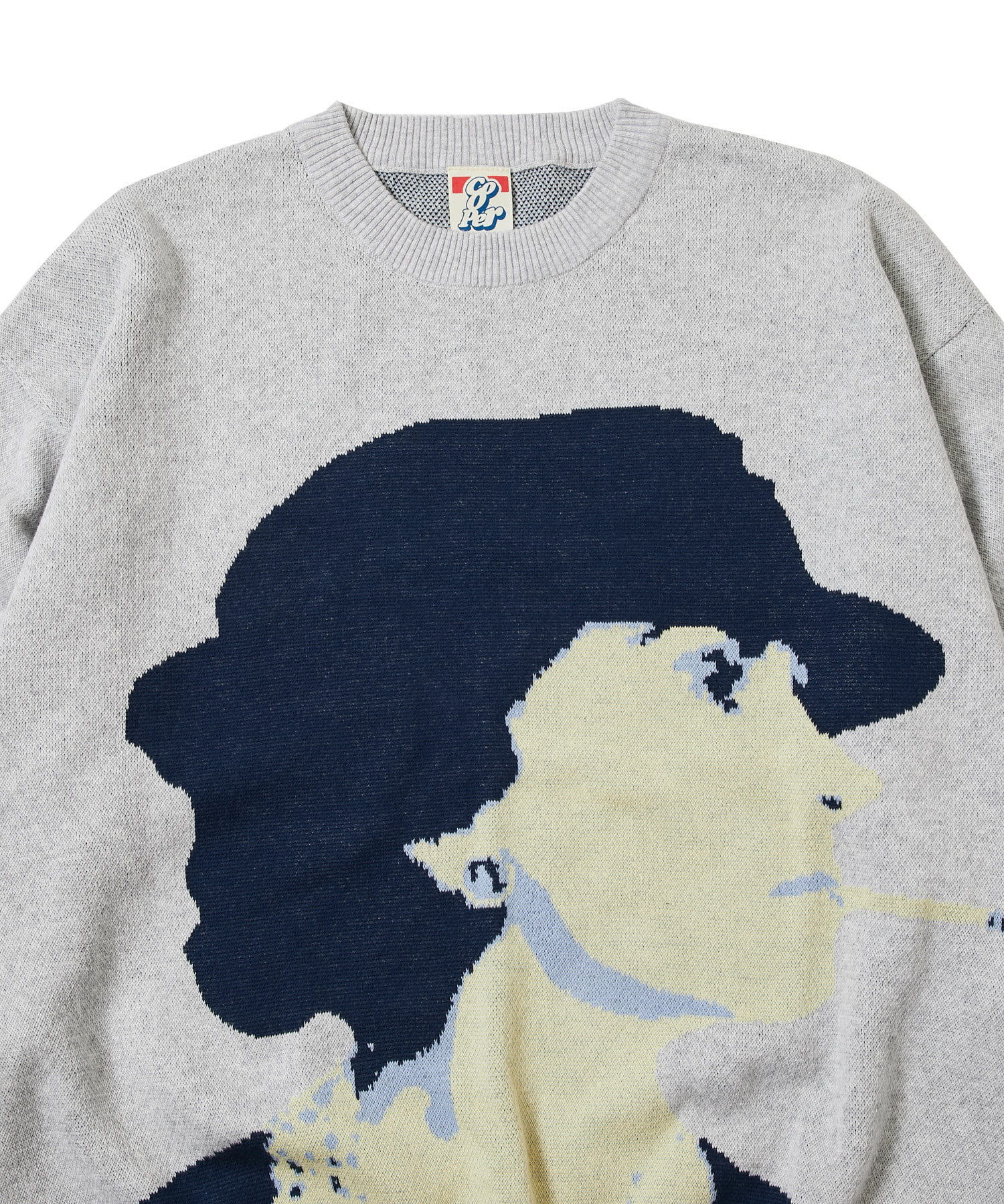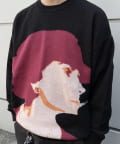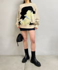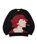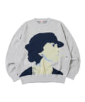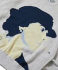 ・フロントに顔のグラフィックデザインが特徴的なニット。