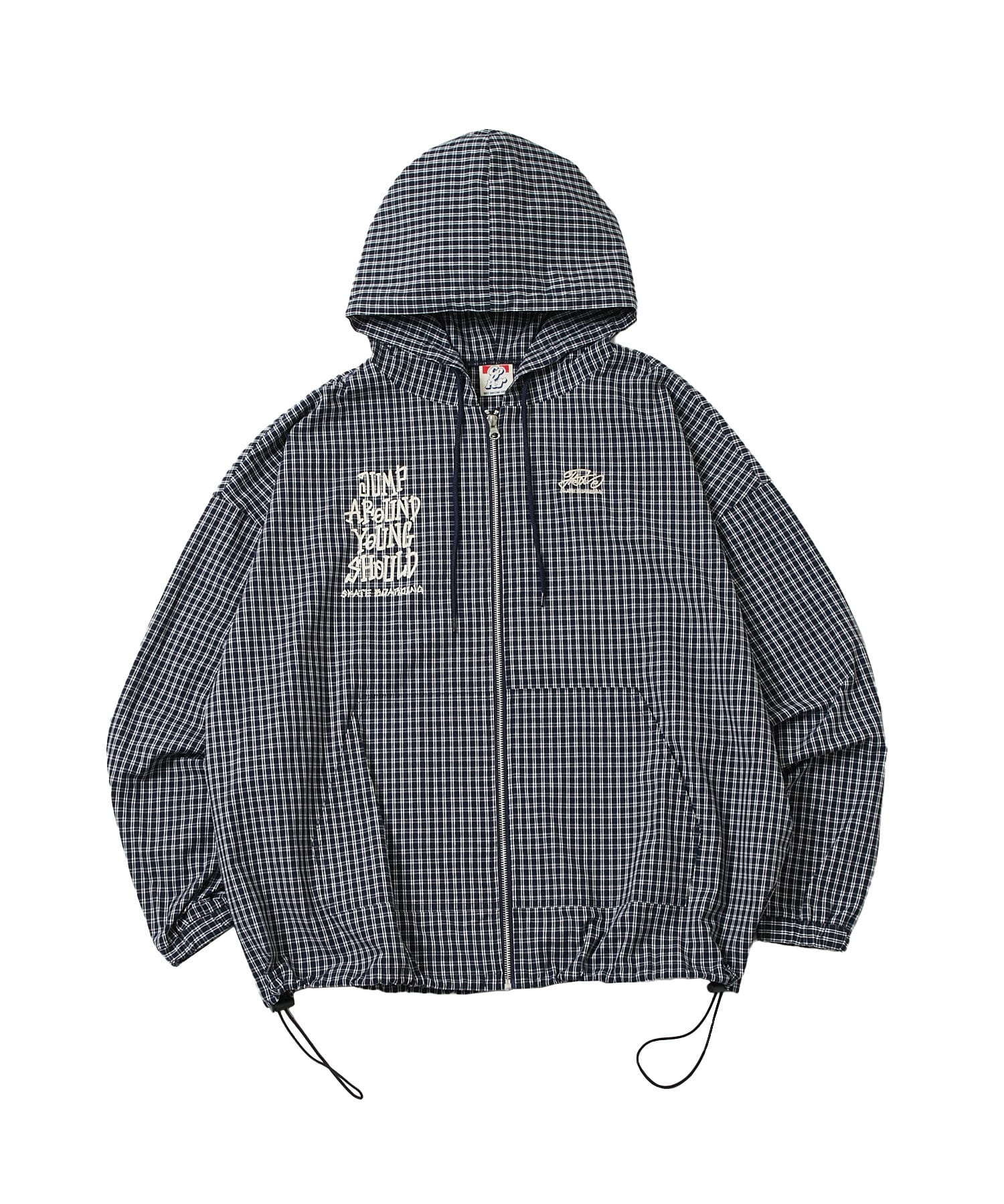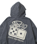 ・胸元の刺繍とドミノロゴのバックプリントが特徴のフードジャケット。