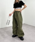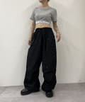 柔らかな素材で、より楽にボリューム感のでるワイドシルエットもこだわりの1つ。
