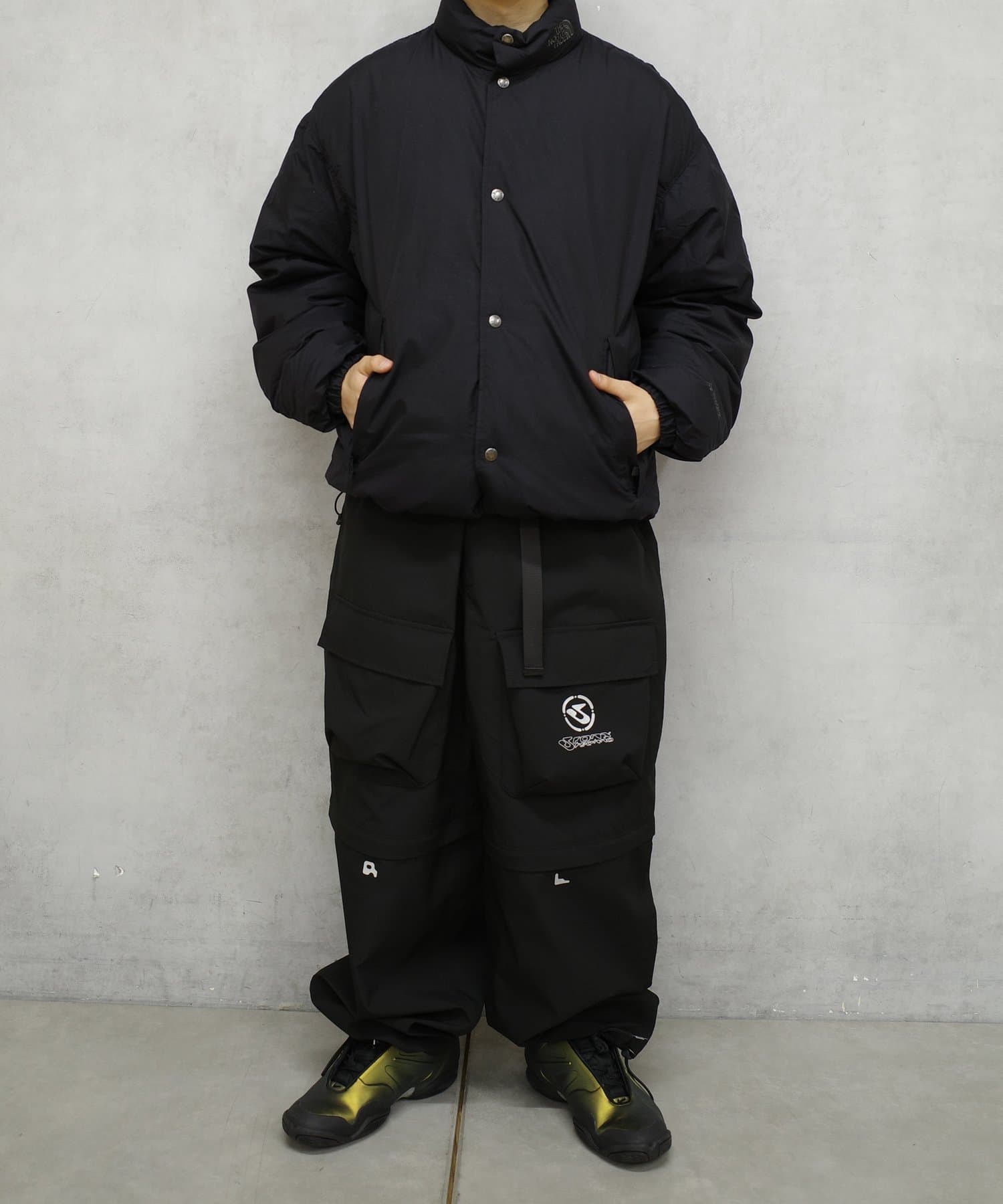 衿元と後ろ肩に同色のロゴ刺繍を配置。着合わせや脱ぎ着のしやすさを考慮し、身幅や袖幅はゆったりめに仕上げています。