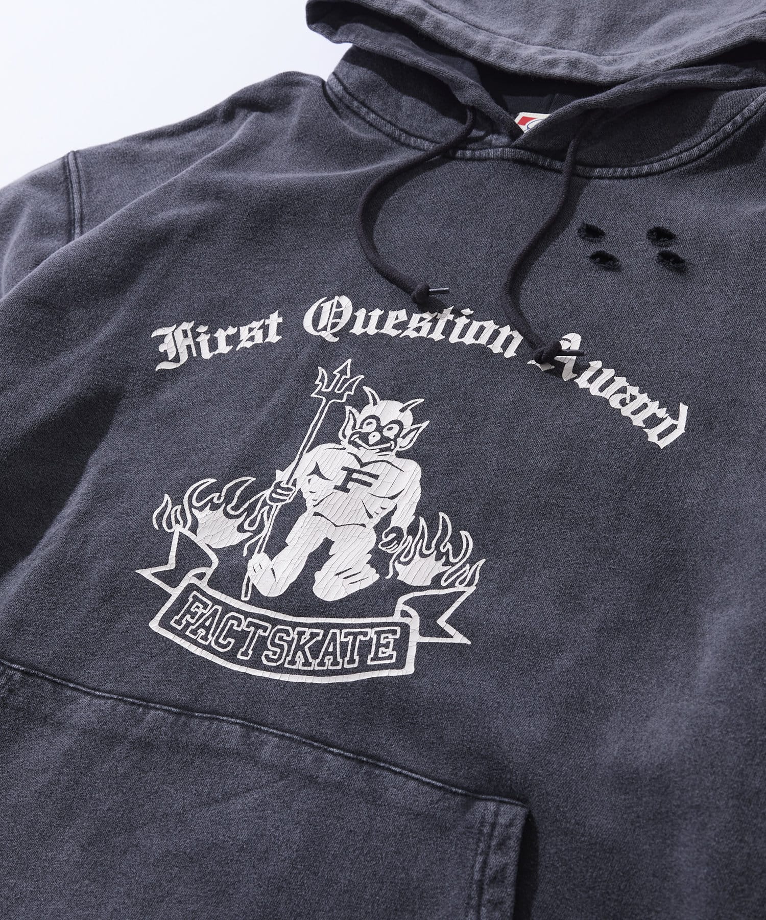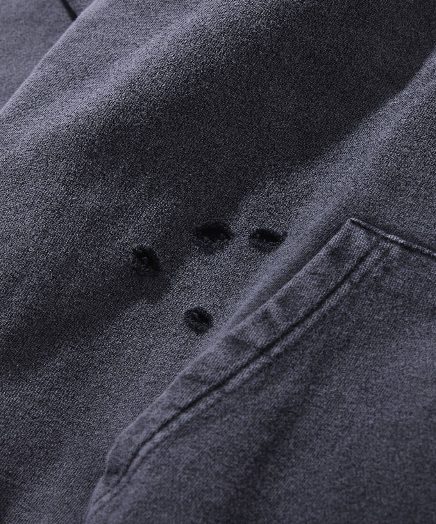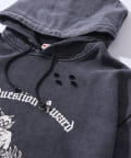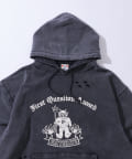・ダメージデザインとボディに施された加工で古着感のあるパーカー。
