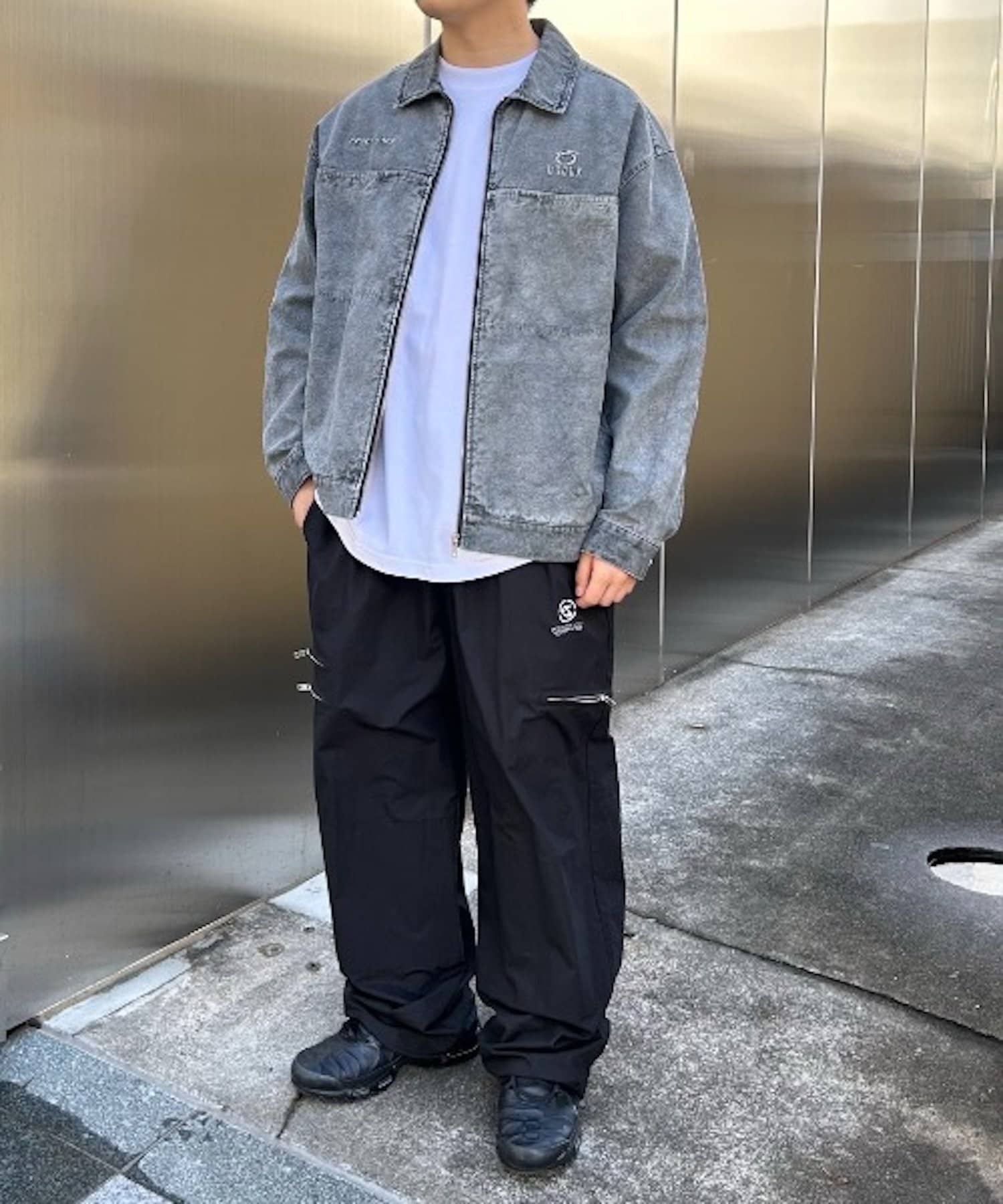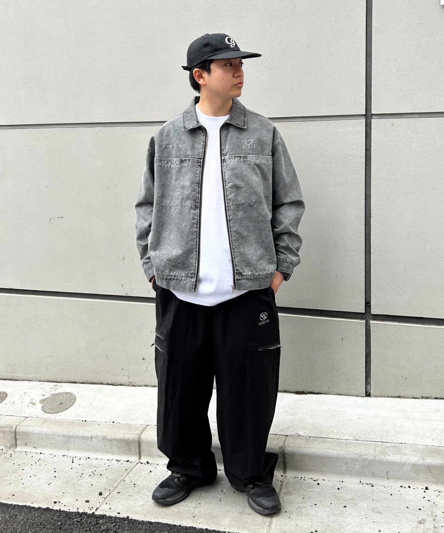 加工感を活かしパンツはベーシックデザインですっきり見せるストリートコーデがおすすめ。