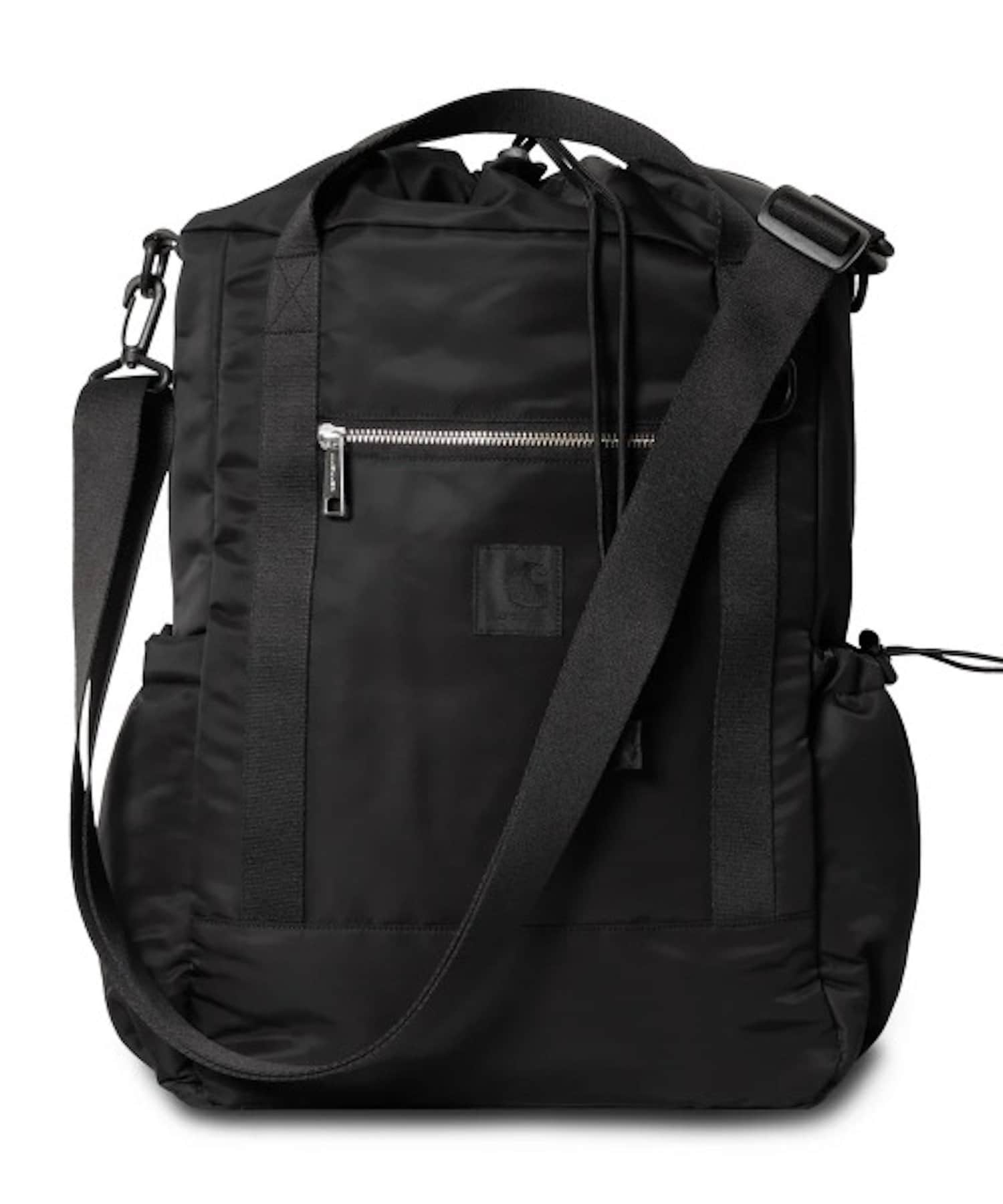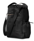 外側には大きなジップポケットとサイドポケットが2つ。トップハンドルと調節・取り外し可能な2本のバックストラップ付き。
