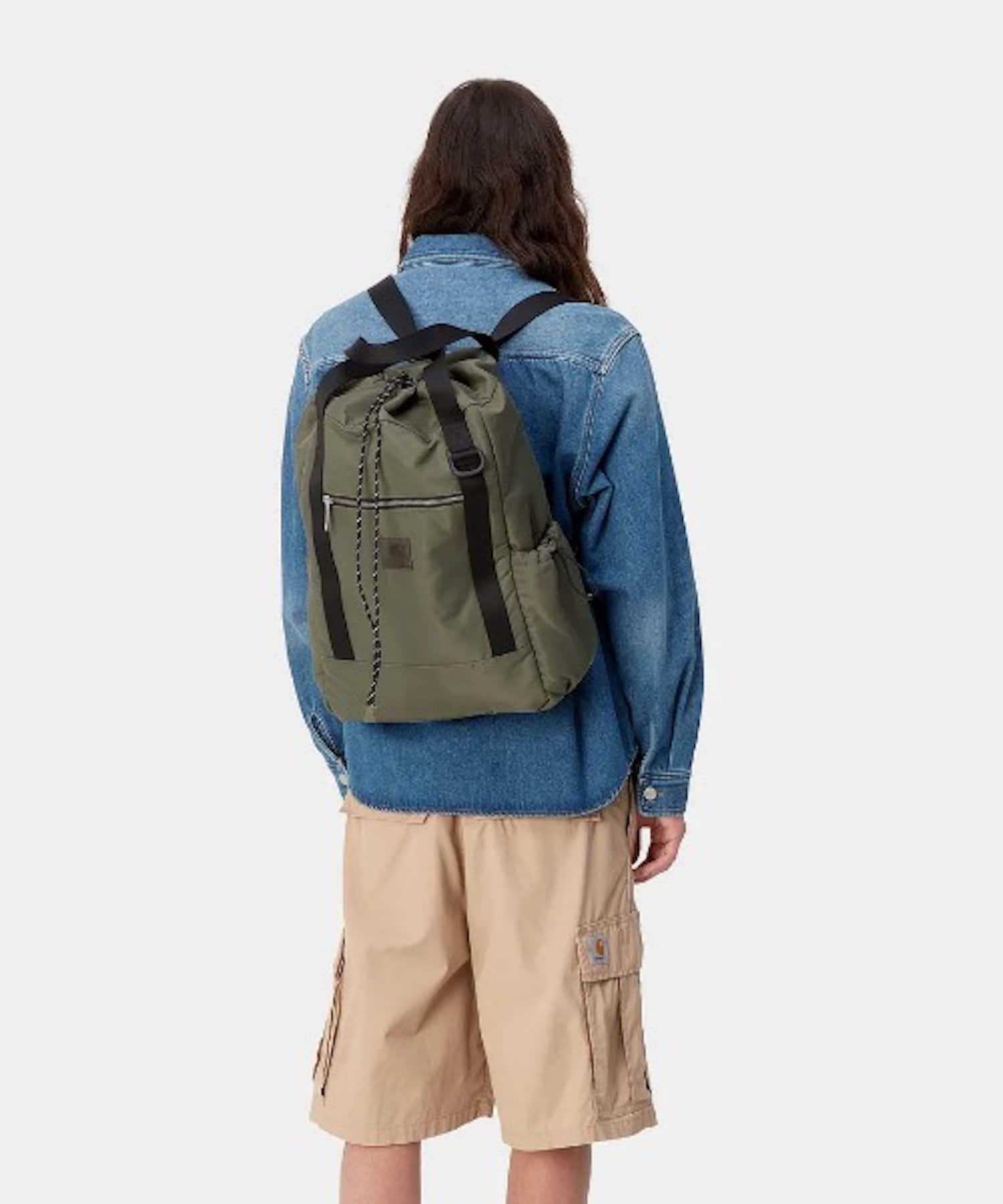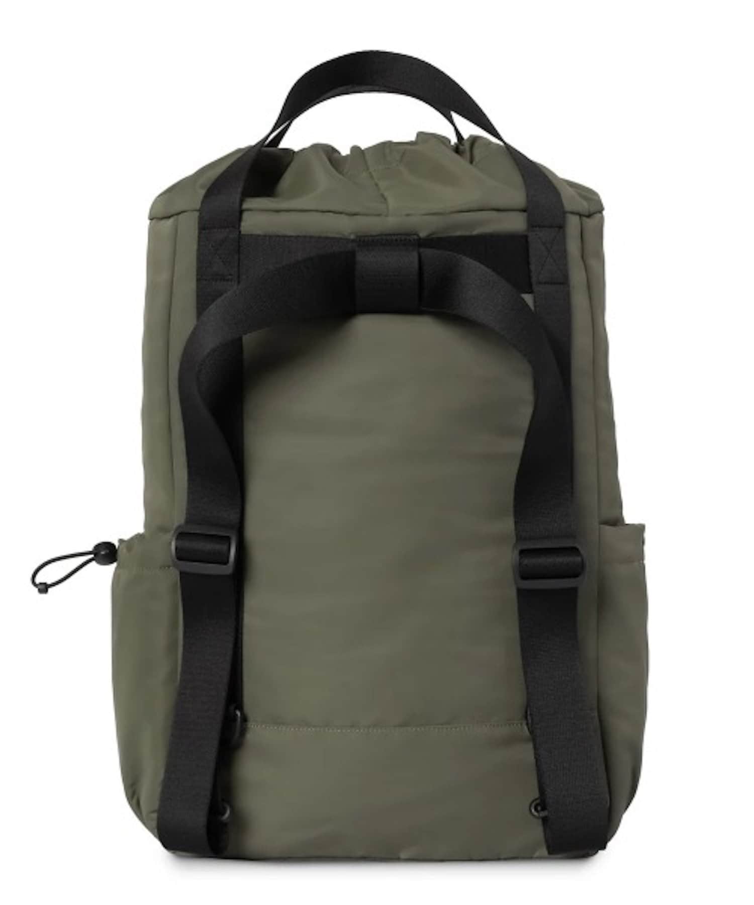 撥水加工を施したナイロンツイル素材を使用し、パッド入りの裏地を備えたオトリー・バックパック。