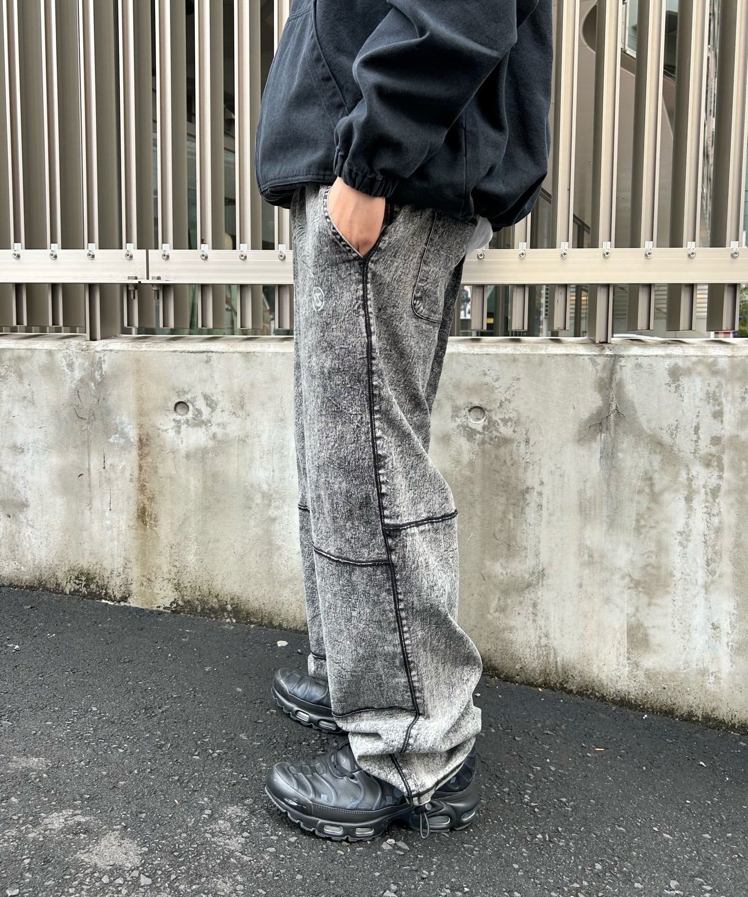 デニム、ツイル生地に加工今季のトレンドでもある加工デザインで新鮮な1本です。