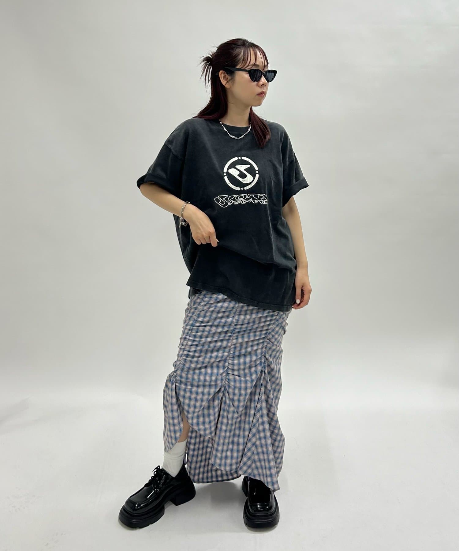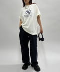 シンプルなアイテムに、デザインや加工のワイドパンツと合わせることでトレンドライクなストリートスタイルになります。