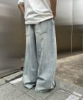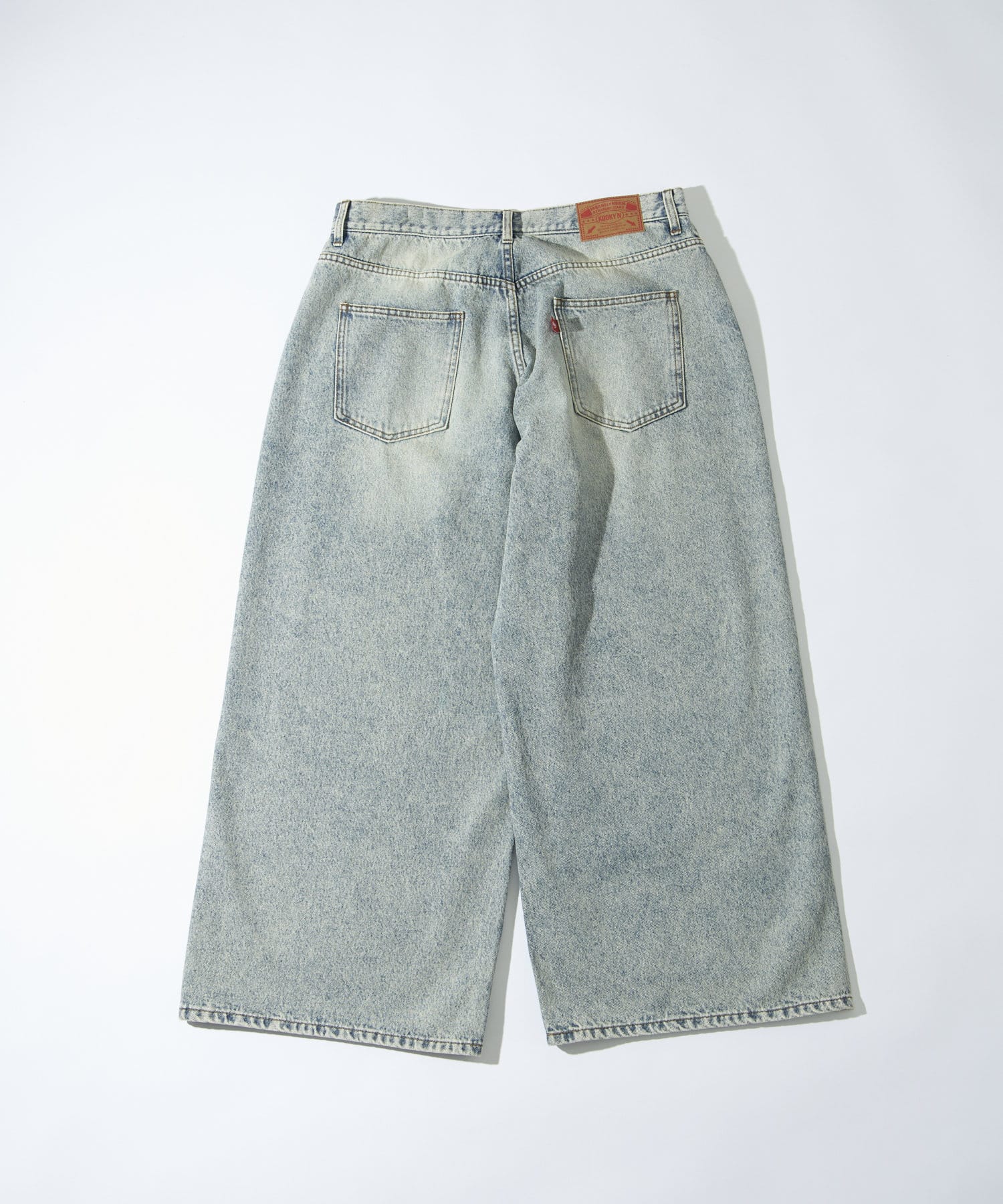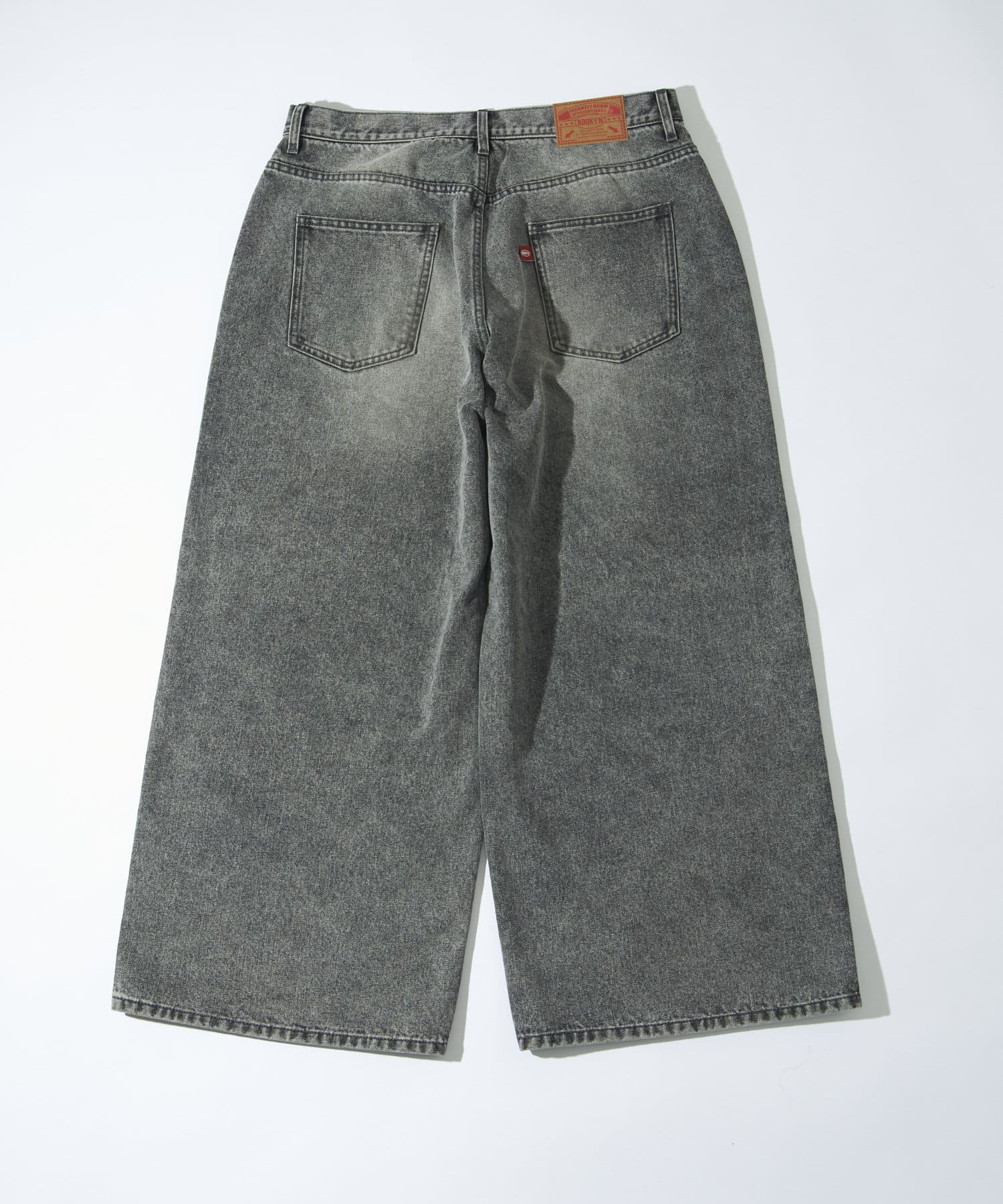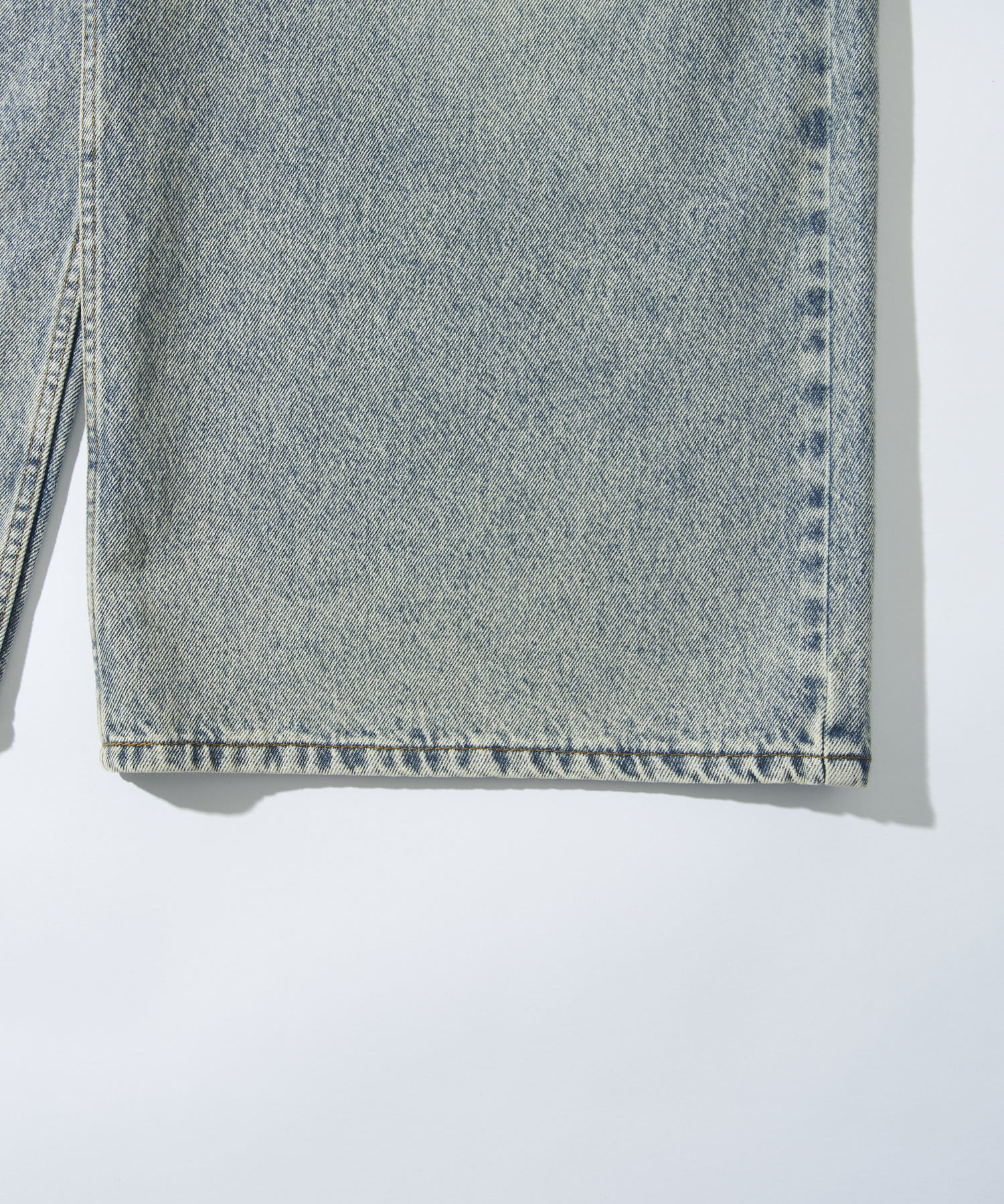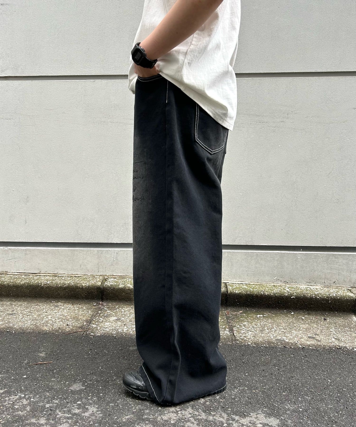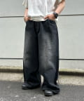・コットンデニムとコットンのダック生地に加工使用した5ポケットのワイドボトム。
