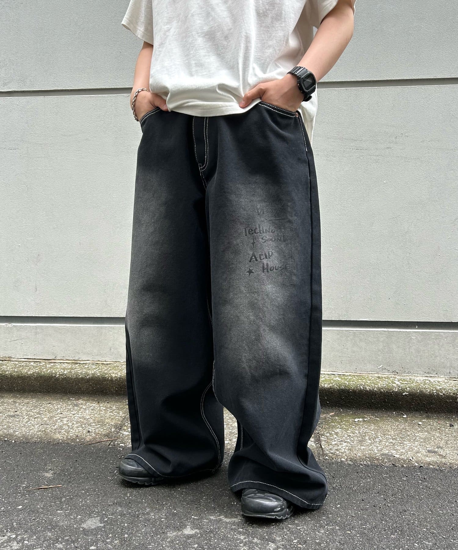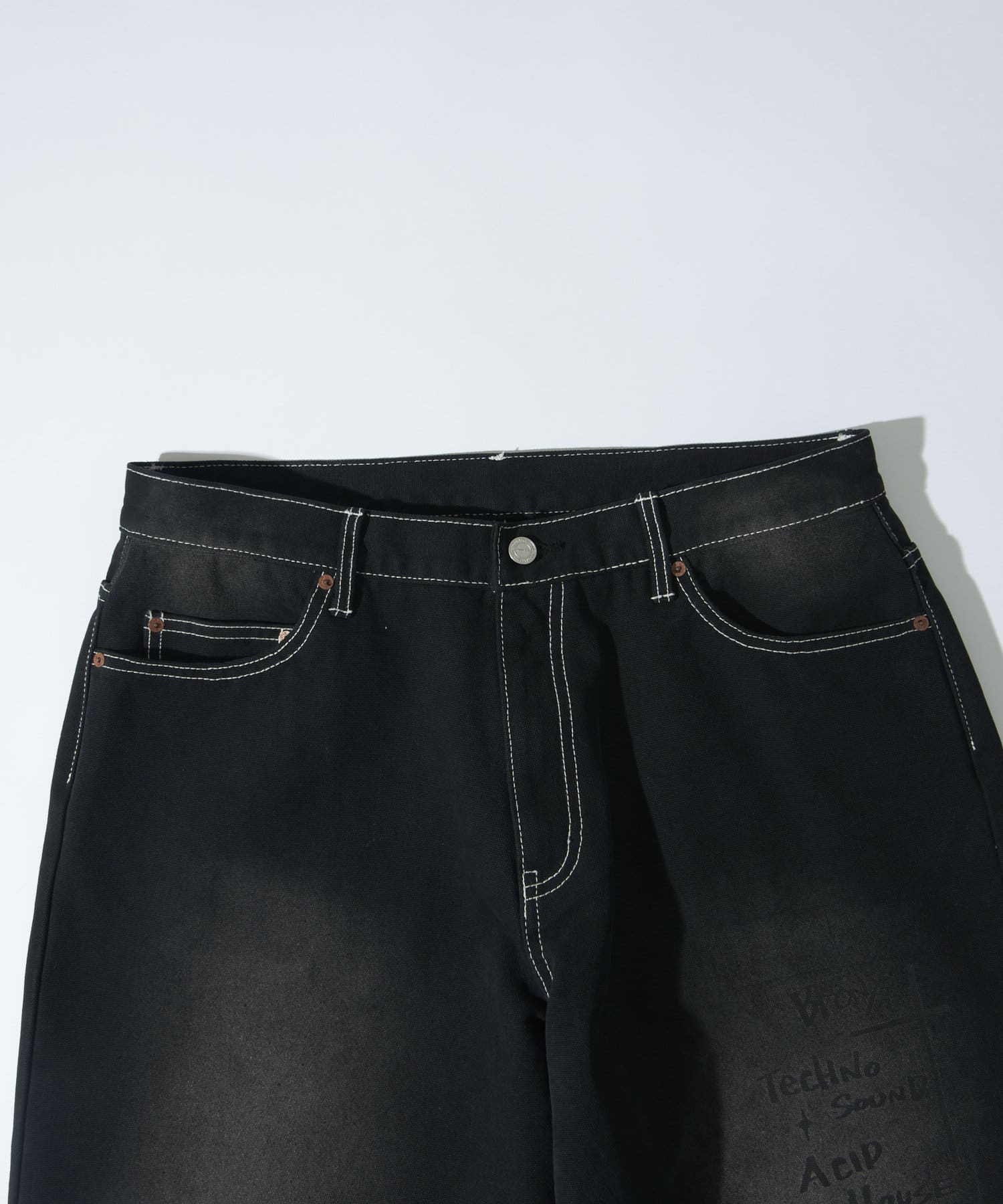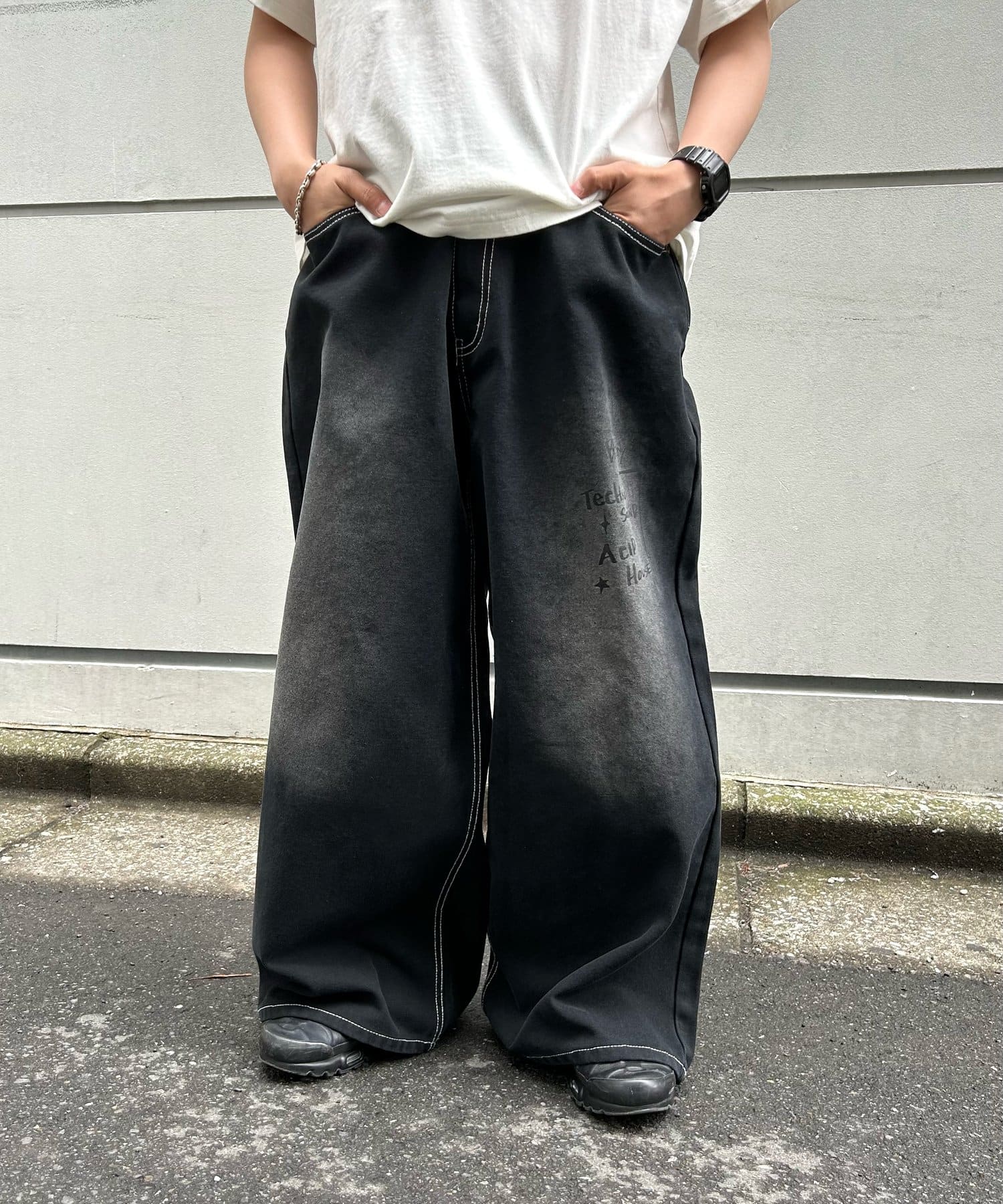 加工&ペイントデザインのヴィンテージライクワイドデニム。