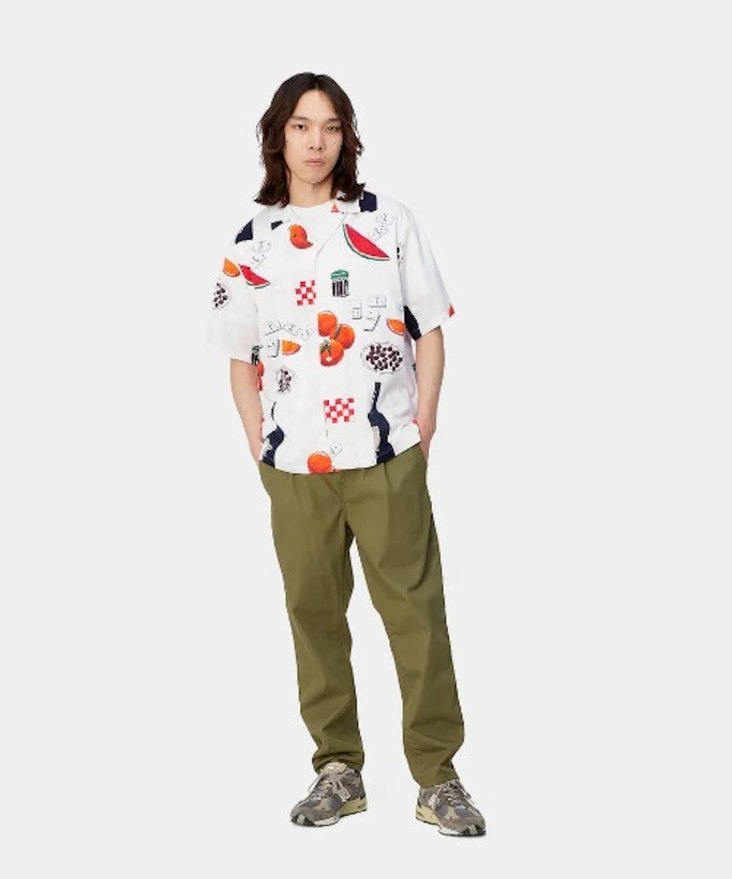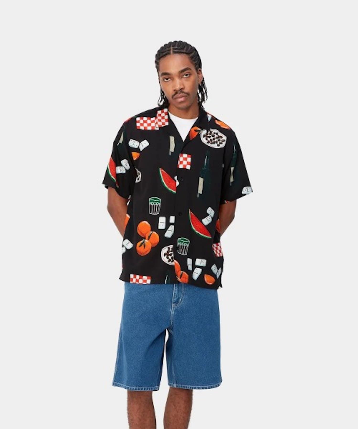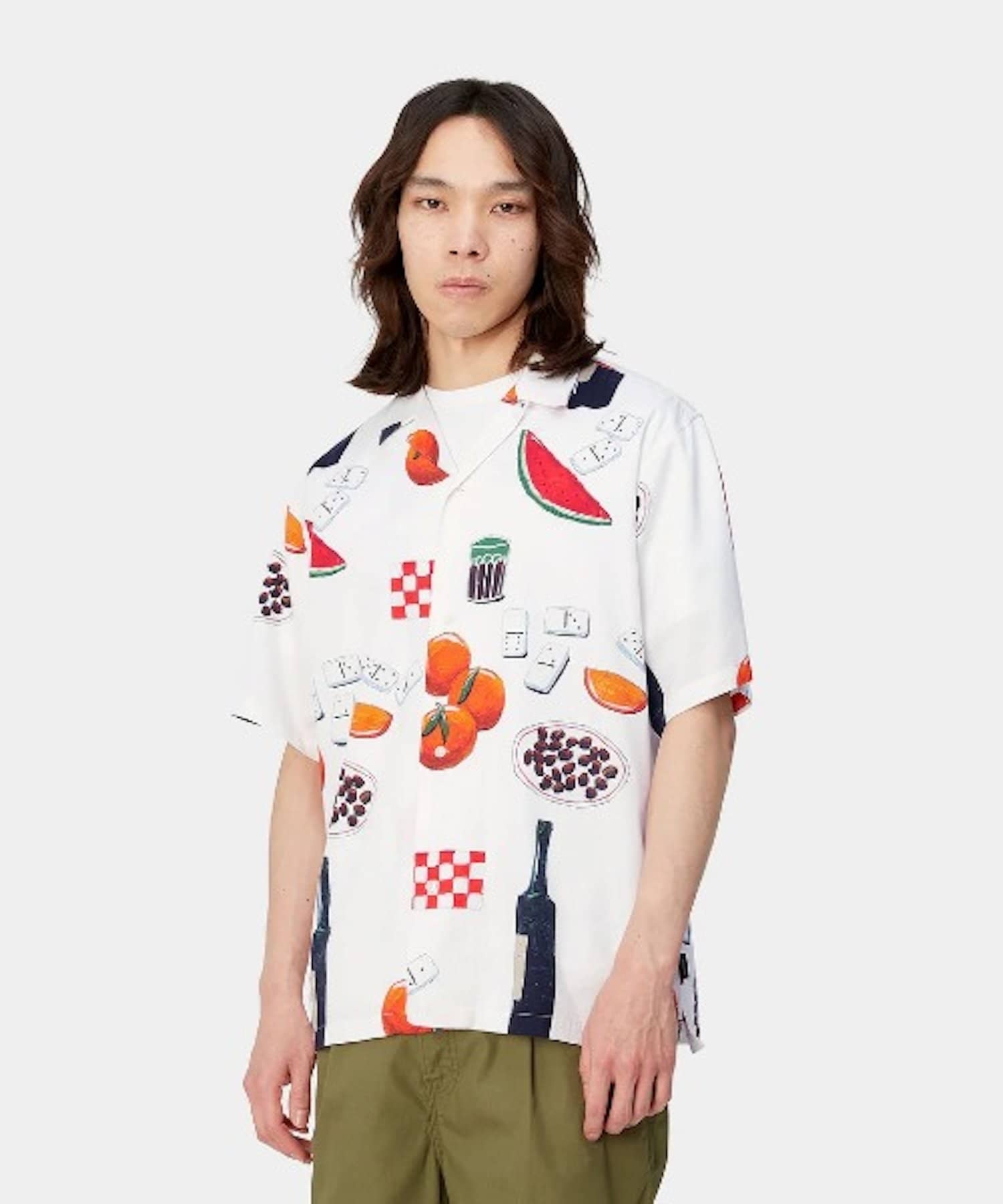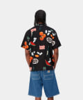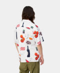 ショートスリーブアイシスマリアディナーシャツは、軽量なコットン混サテン生地を使用し、シルエットはゆったりとしたルーズフィット仕立て。グラフィックアーティストのアイシスマリアがデザインした全面グラフィックプリントが特徴。カーハートWIPのフラッグラベルがデザインを引き締める。