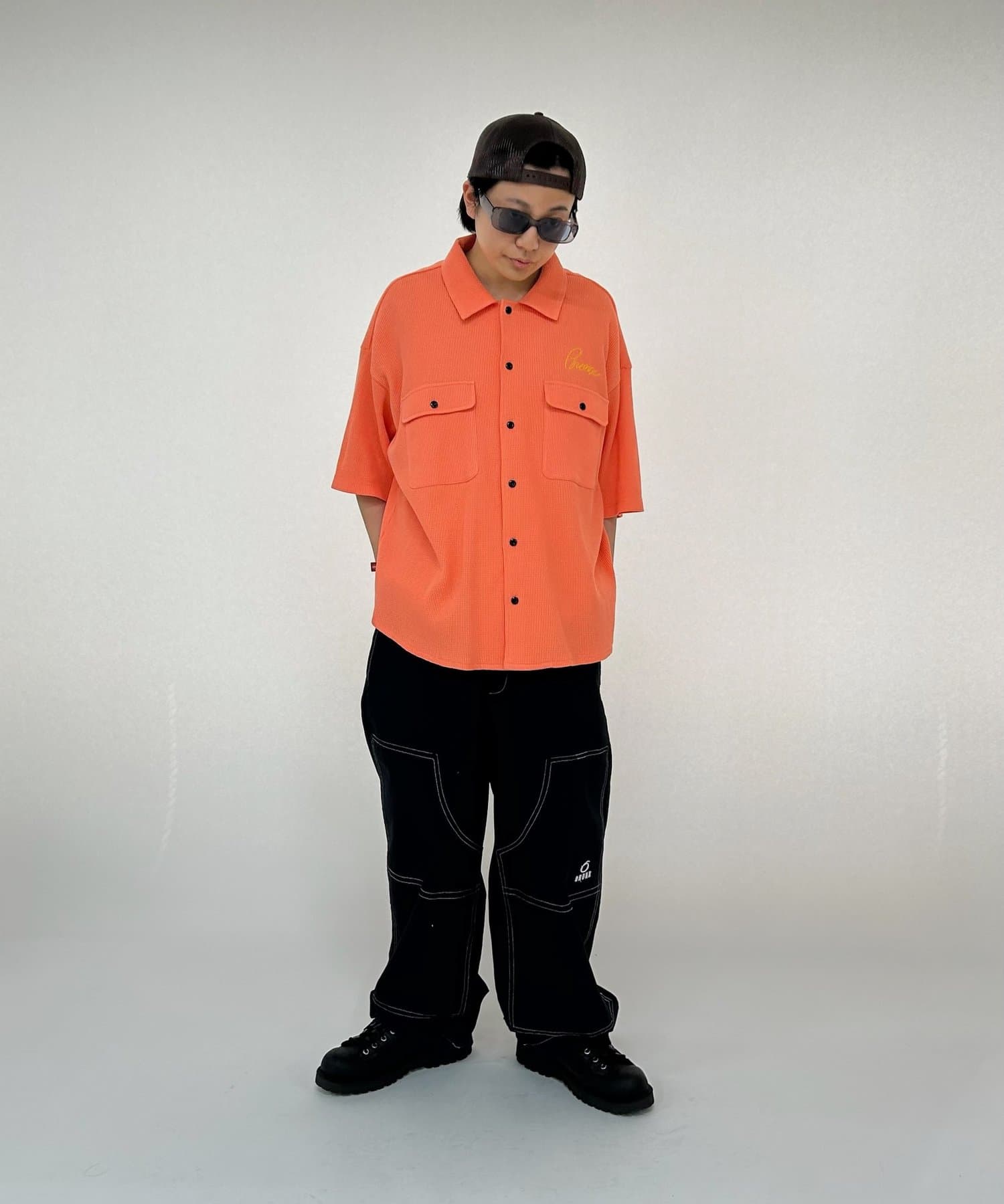 ・ワークシャツをベースにボックスシルエットのシャツ。