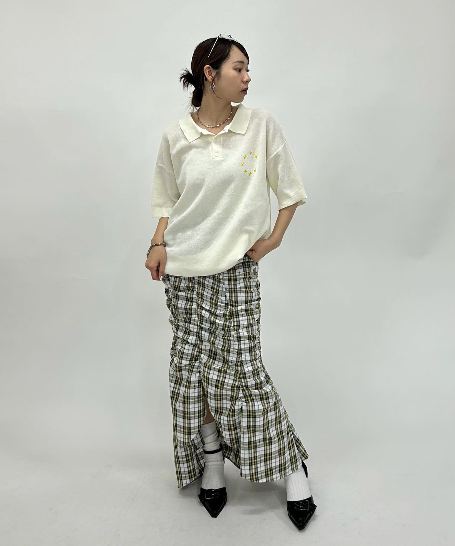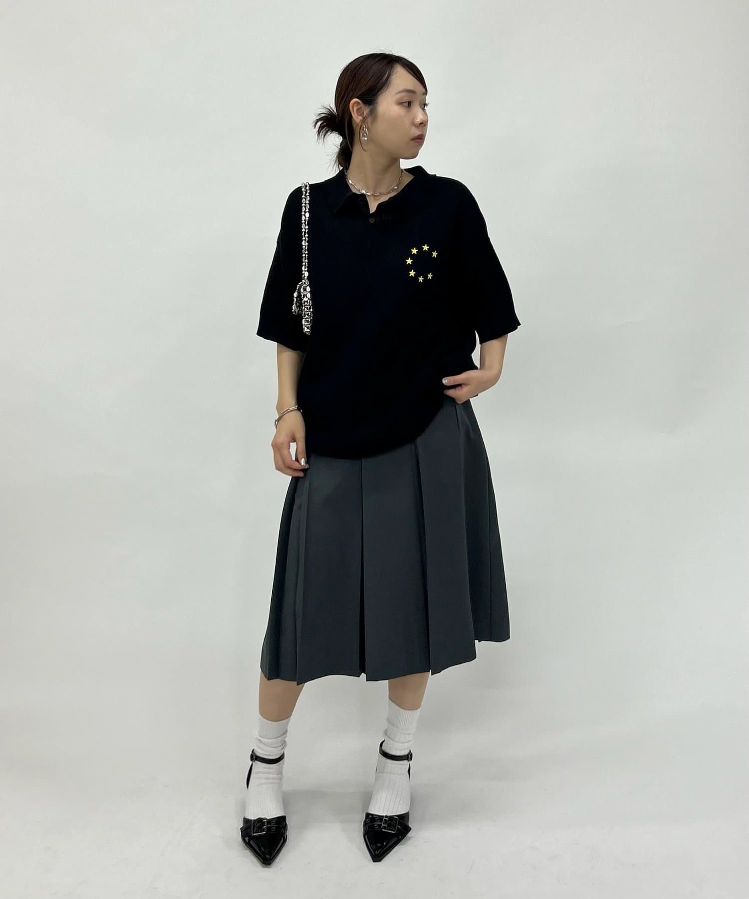 スッキリしたデザインでどんなボトムスでも合わせやすいアイテム。