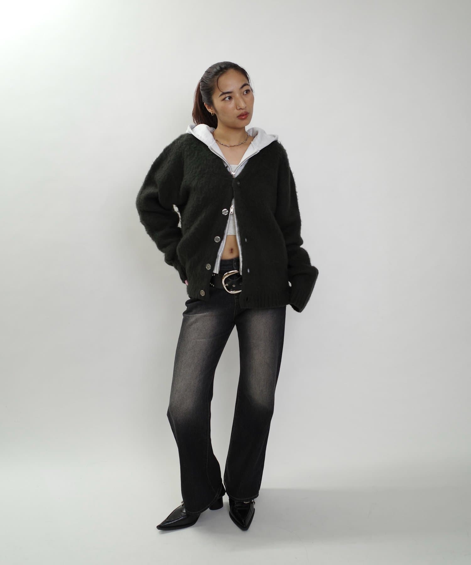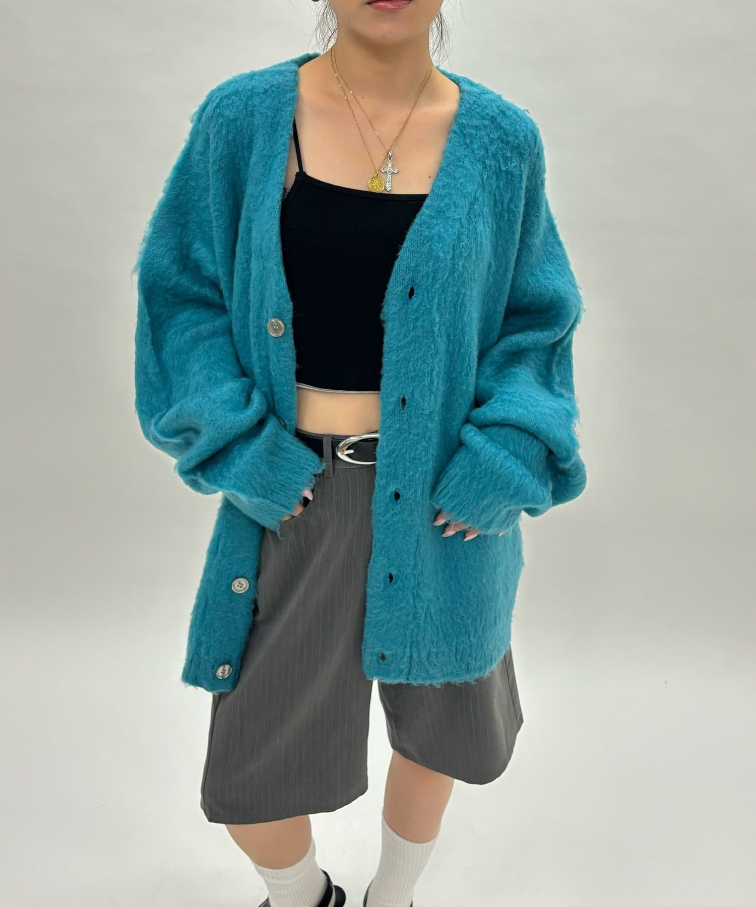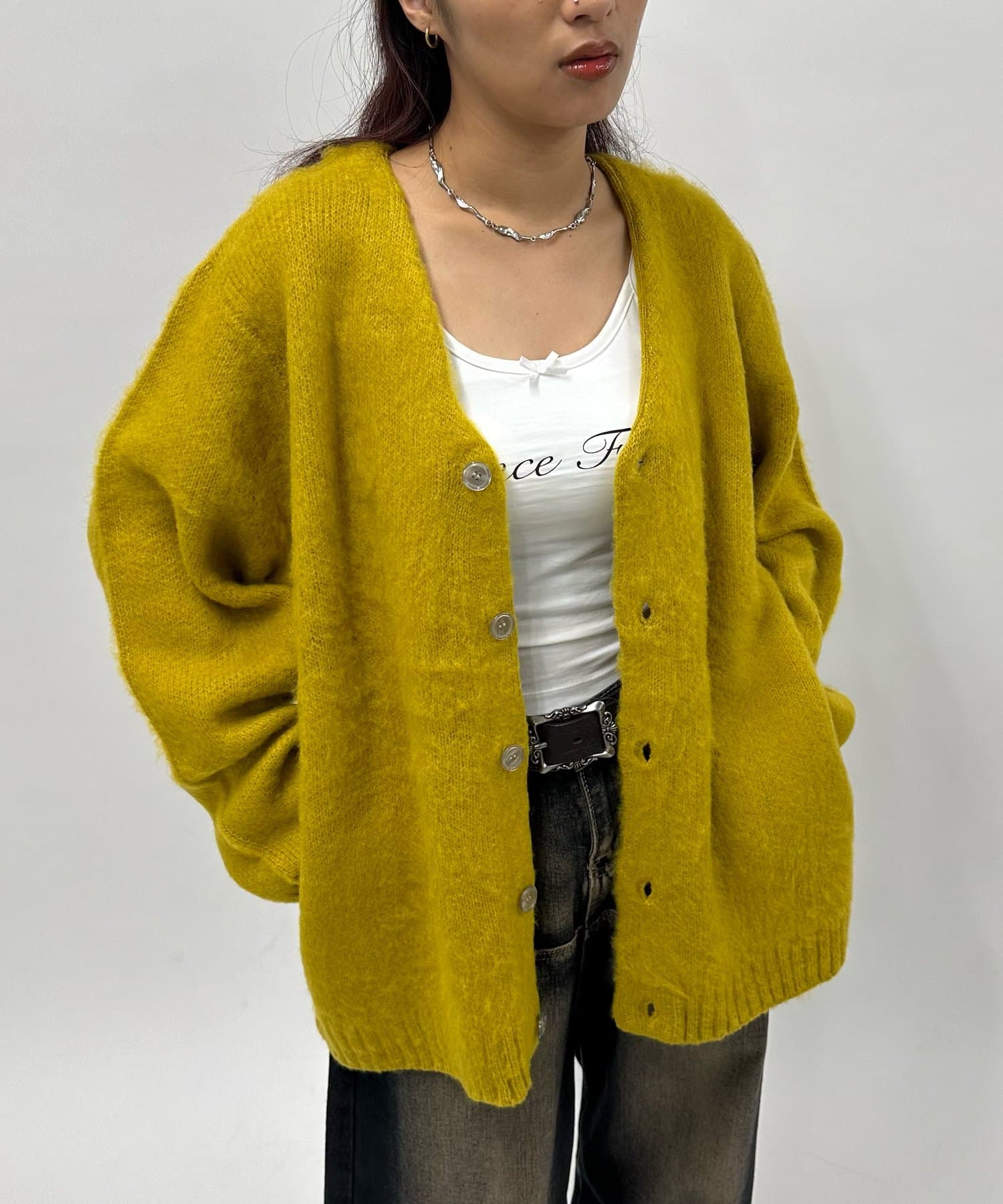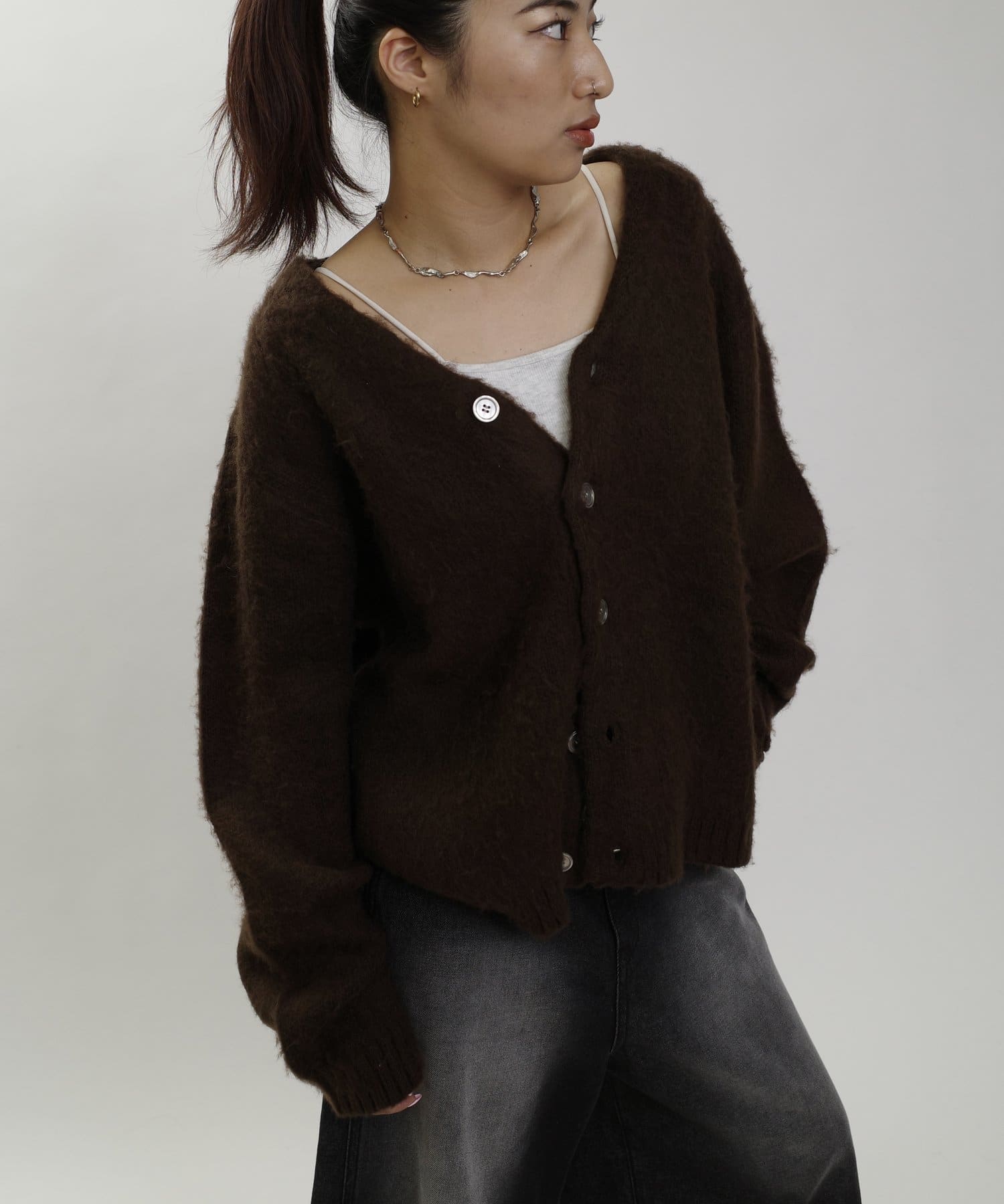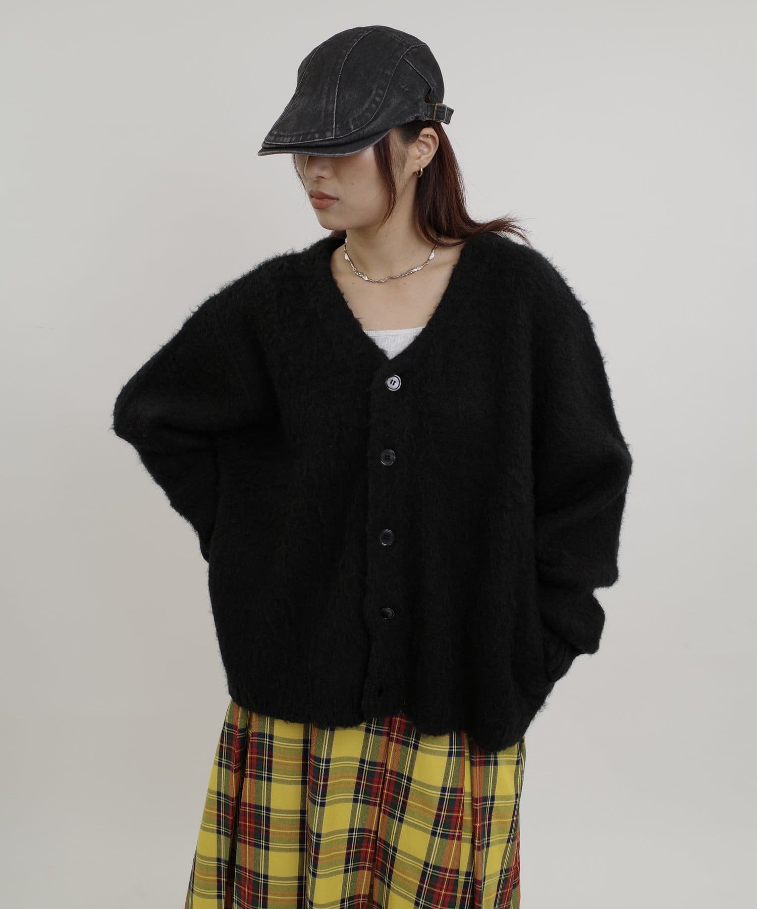 ・毛足の長い素材が特徴のモヘアライクカーディガン。