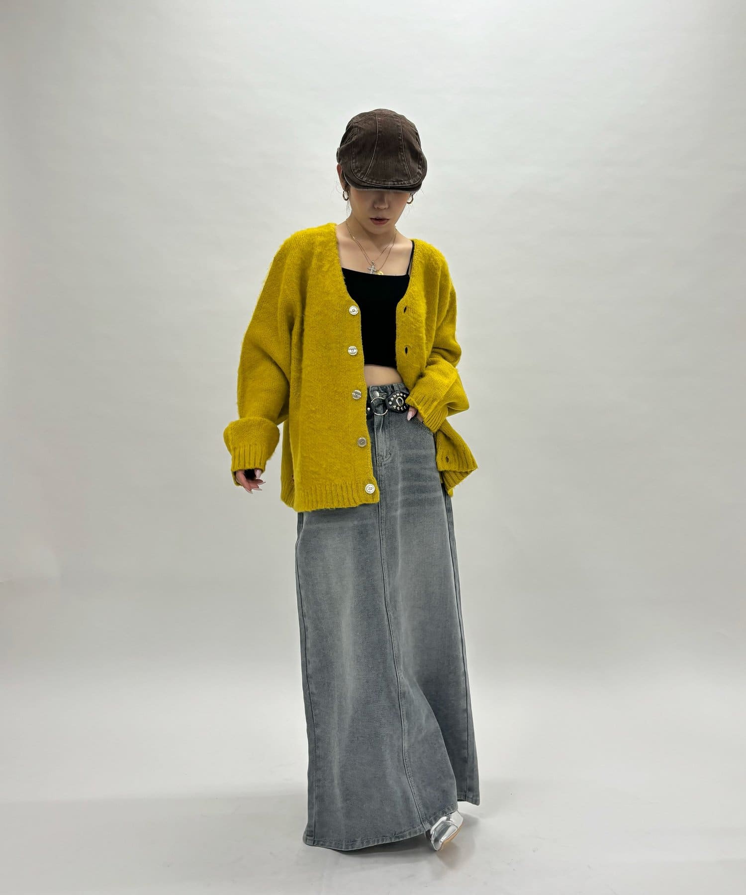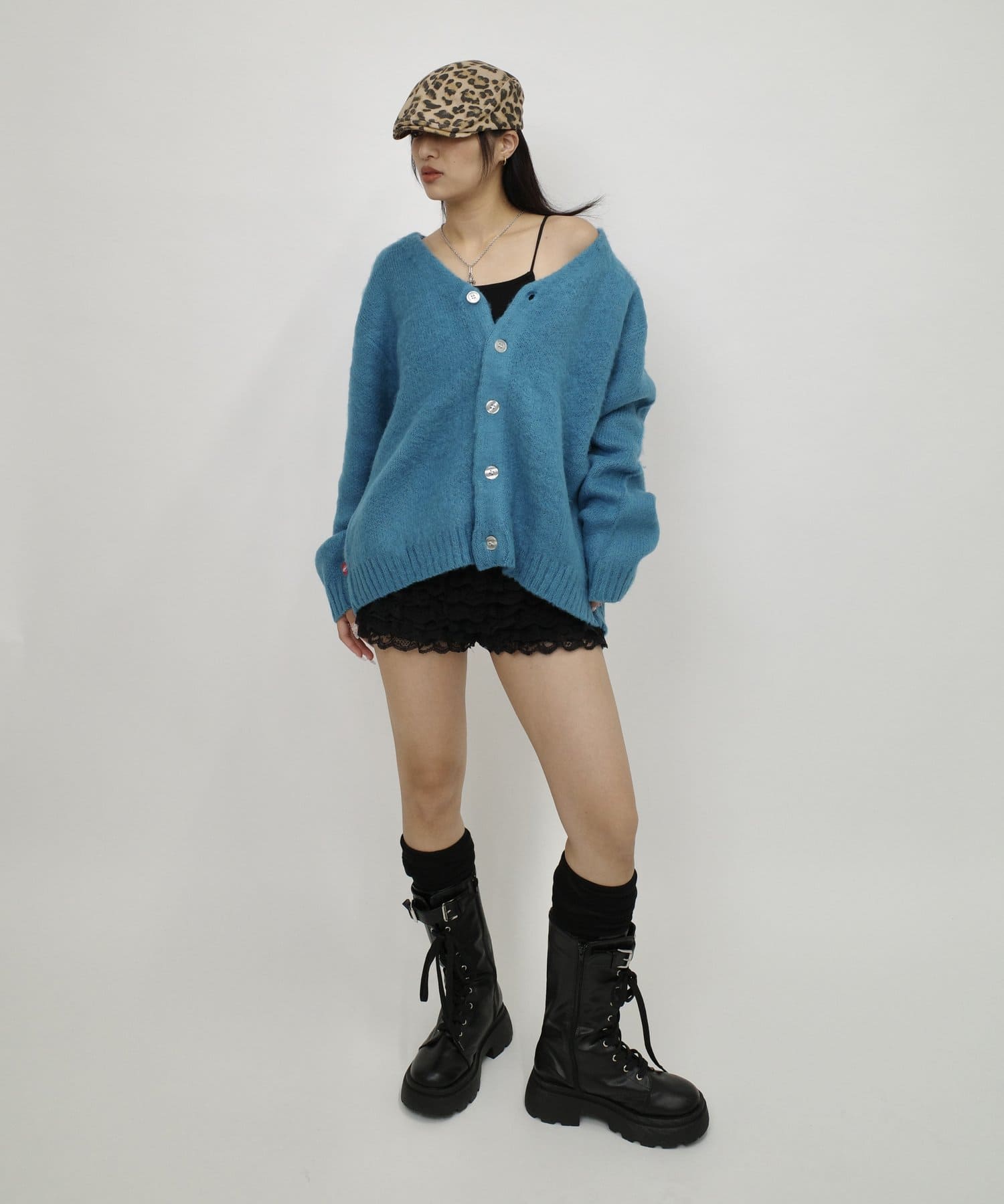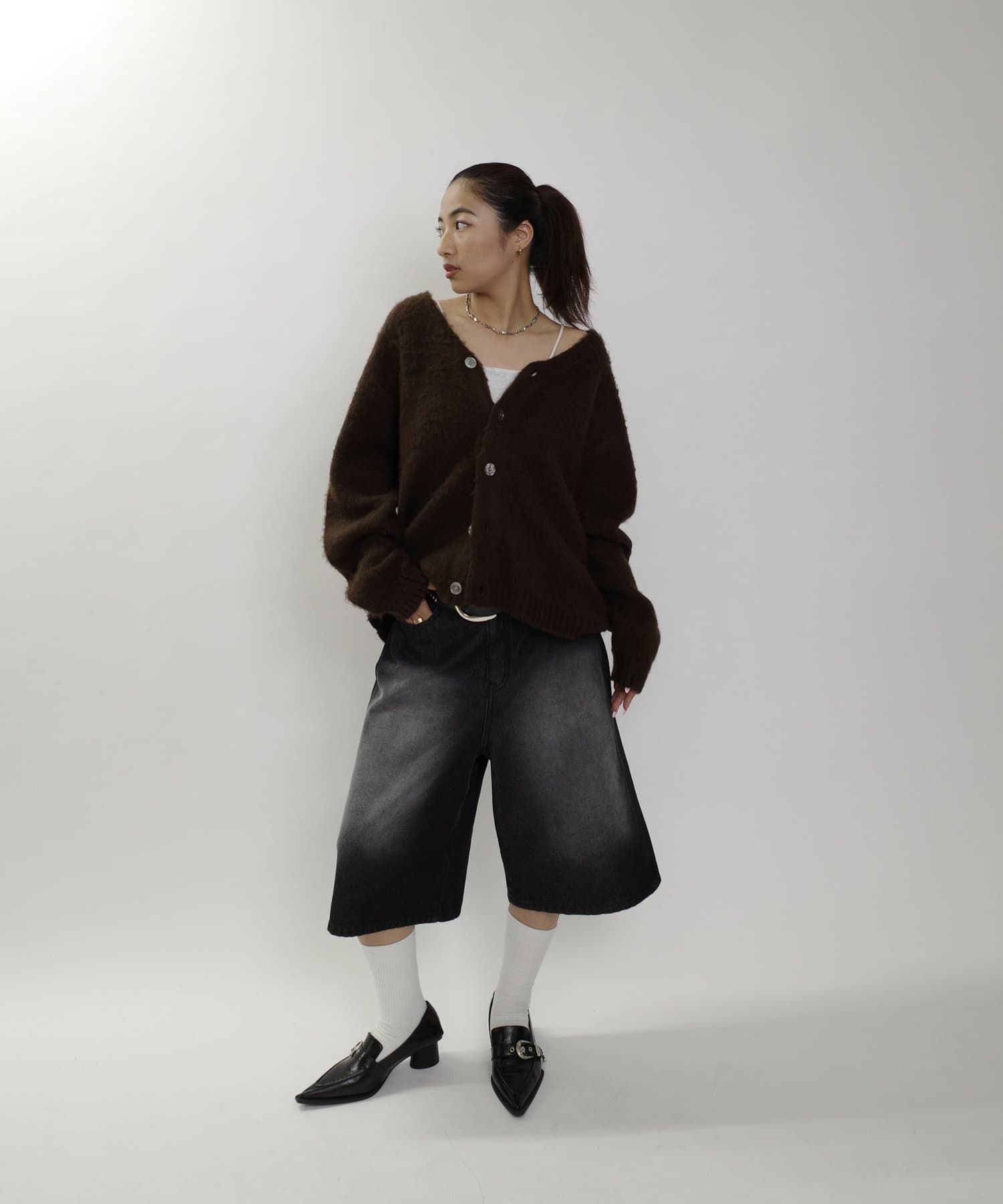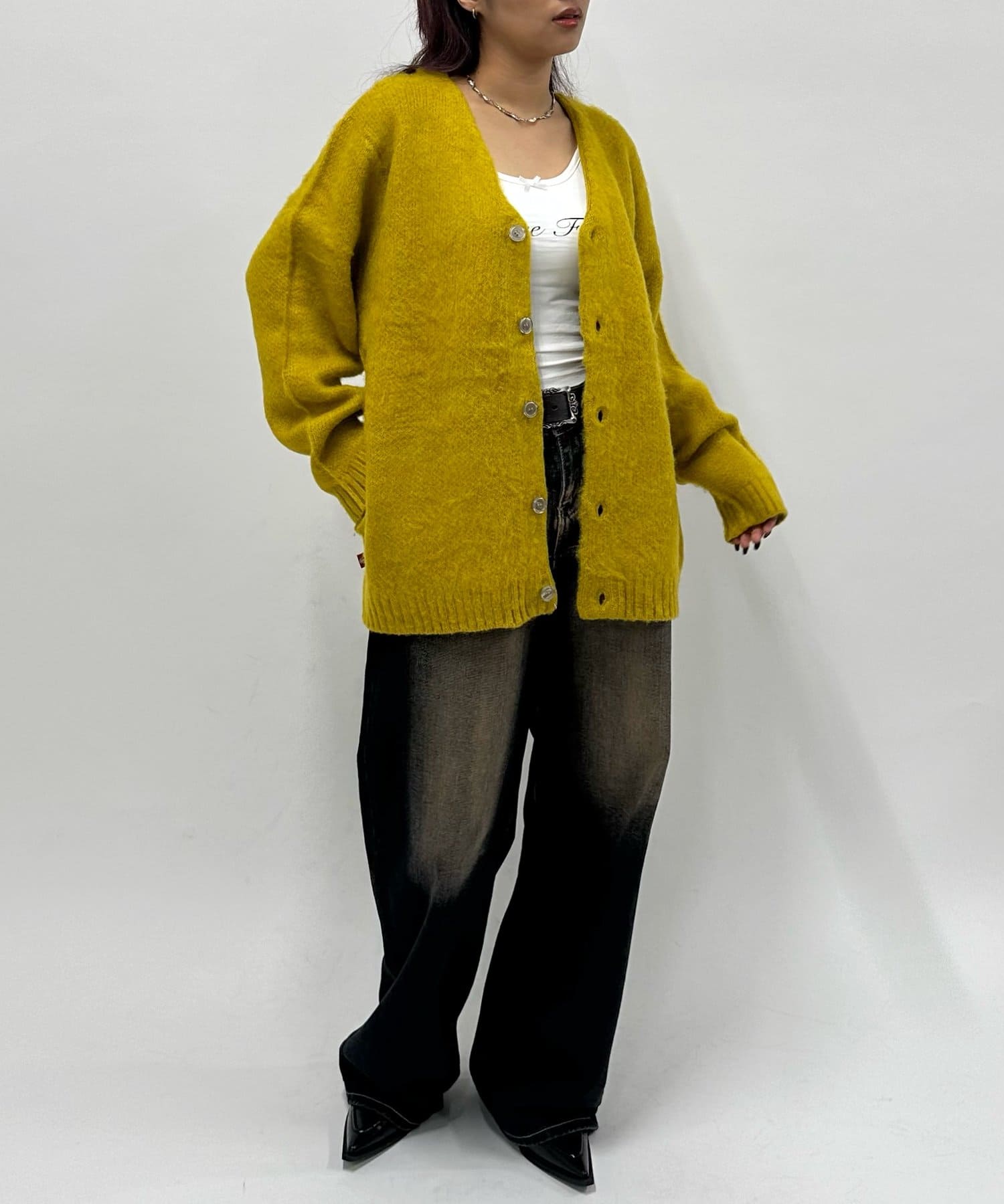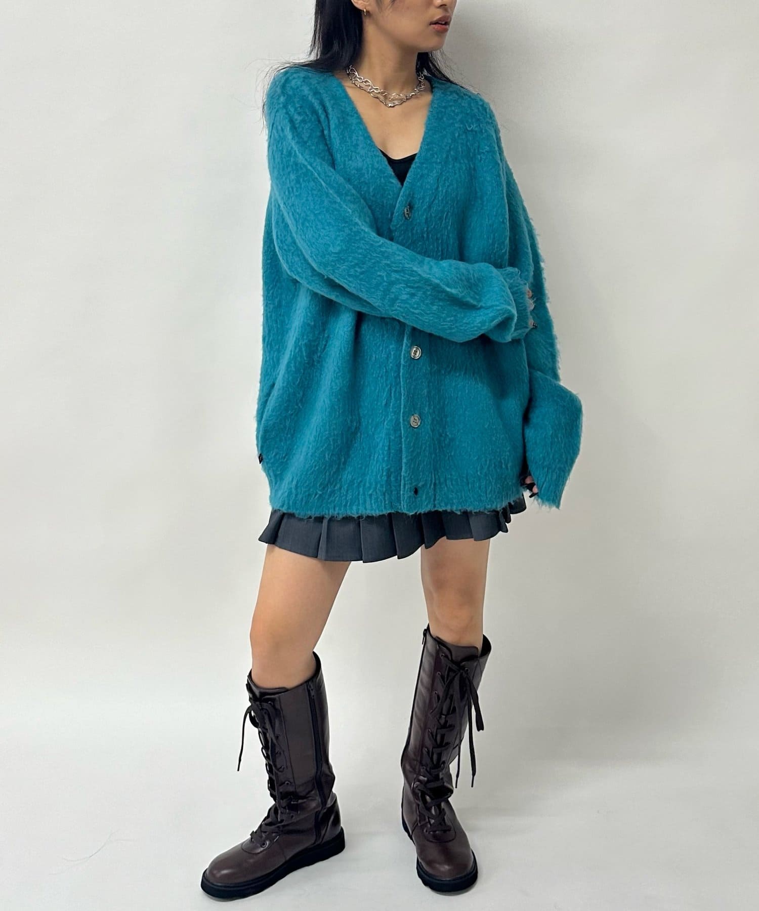・毛足の長い素材が特徴のモヘアライクカーディガン。