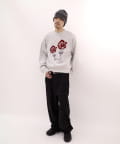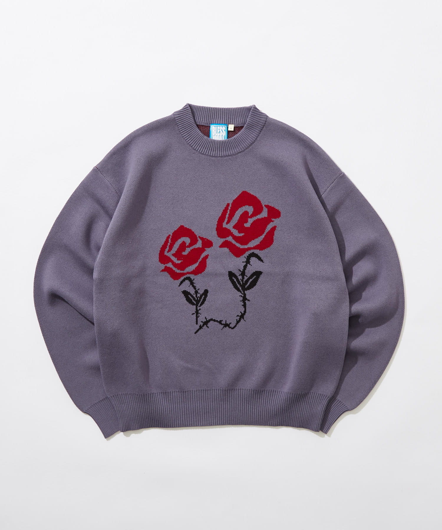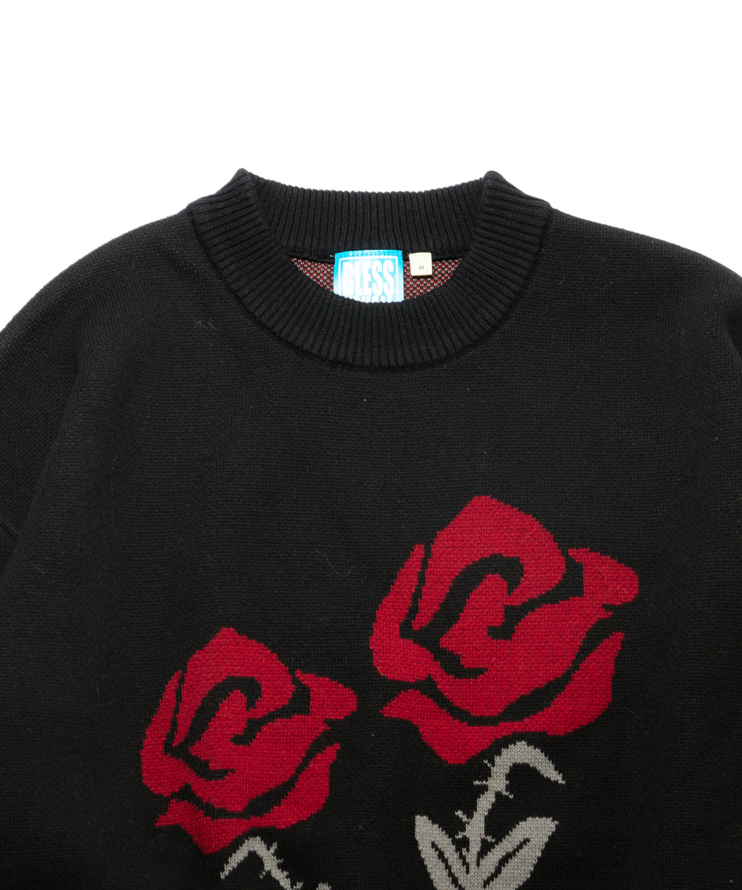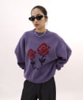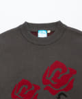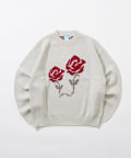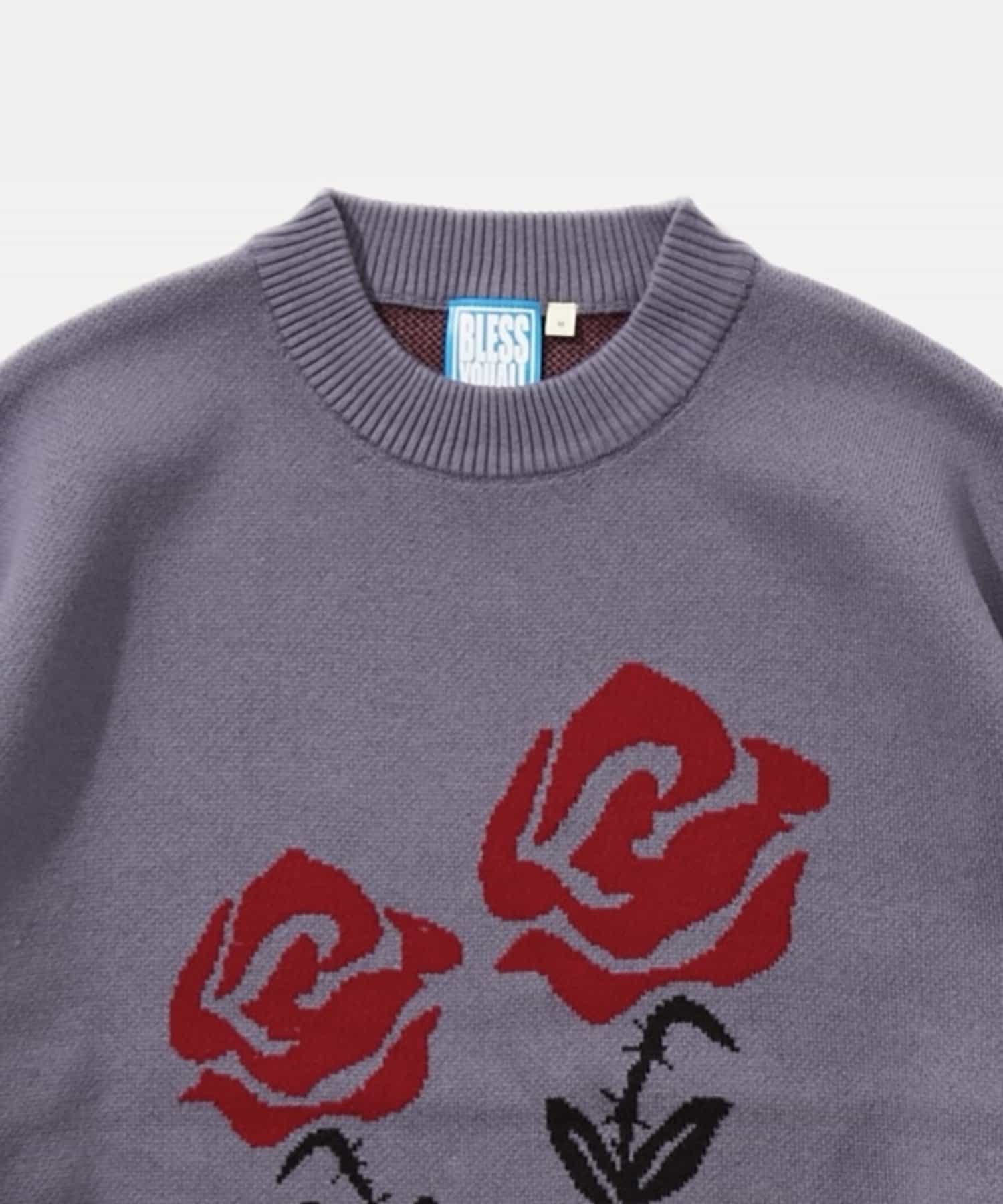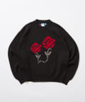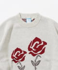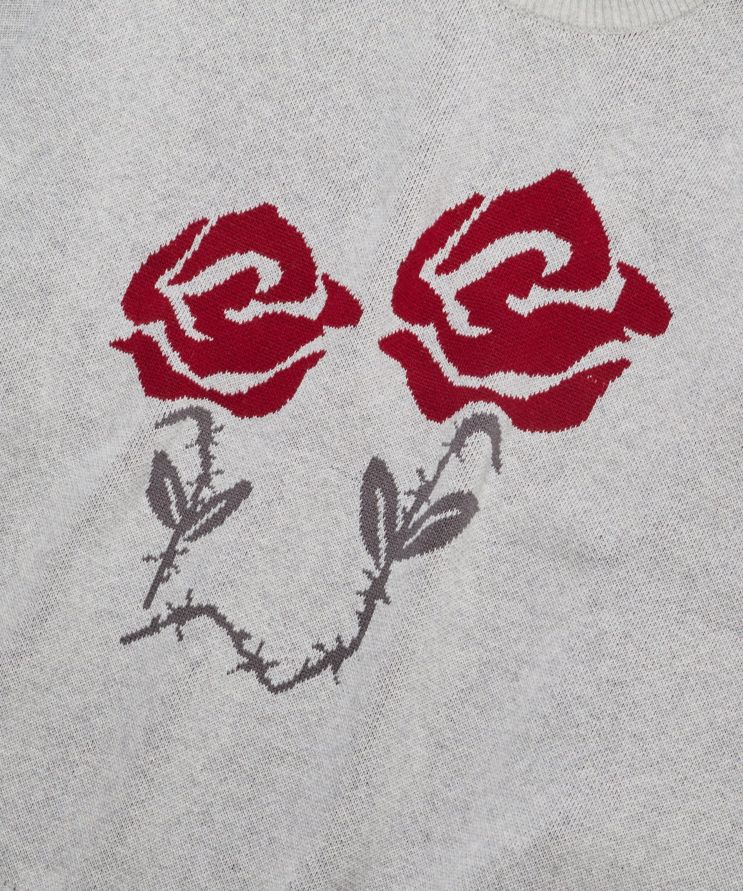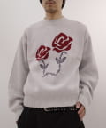 ・赤のバラがニットに映えていて、かっこよさが引き立ちます。