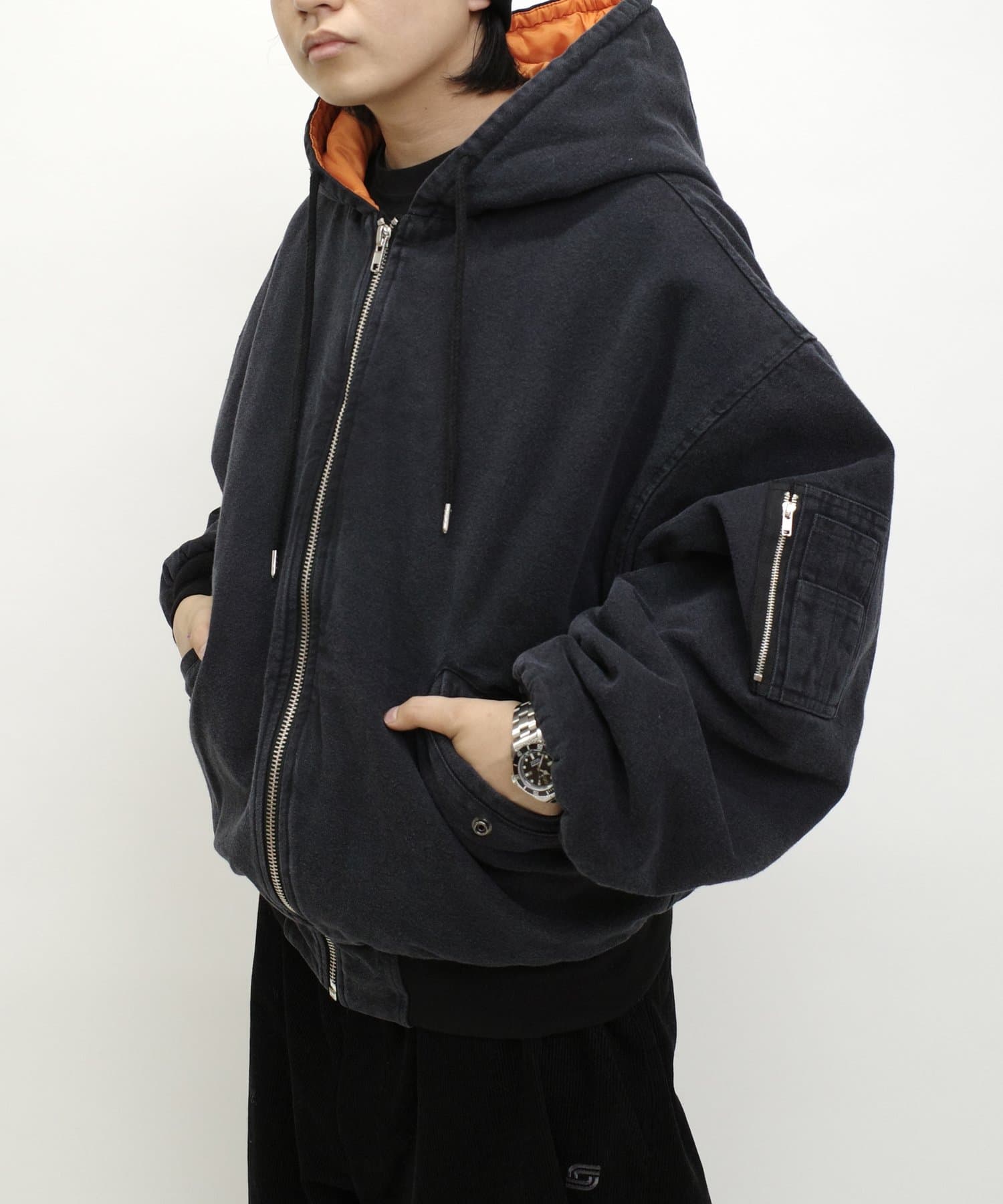 ・ダックパーカーとMA1をミックスさせたハイブリッドデザイン。