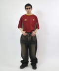 ・フットボールジャージをもとにパイピングをとクルーネックで都会的な印象。