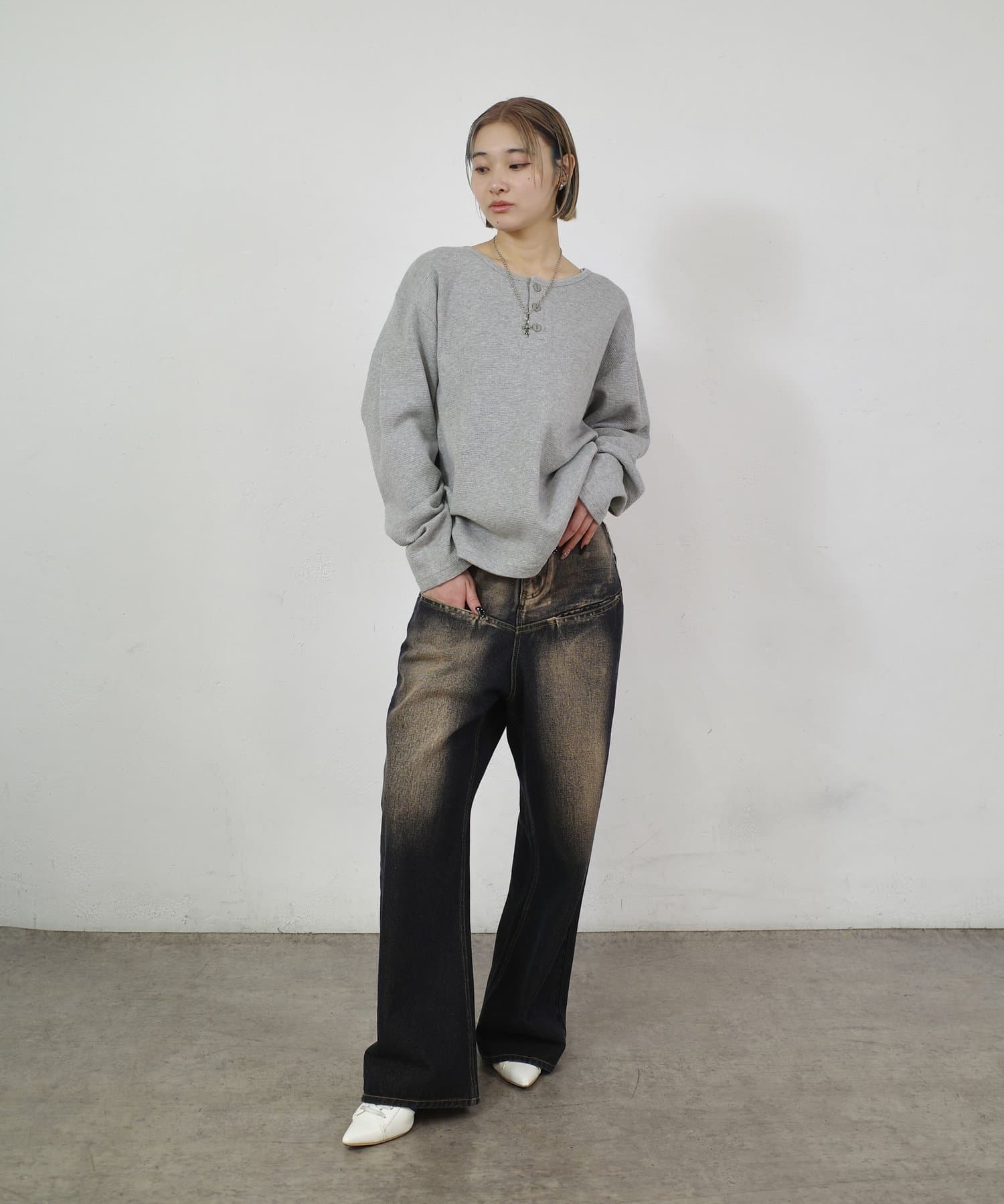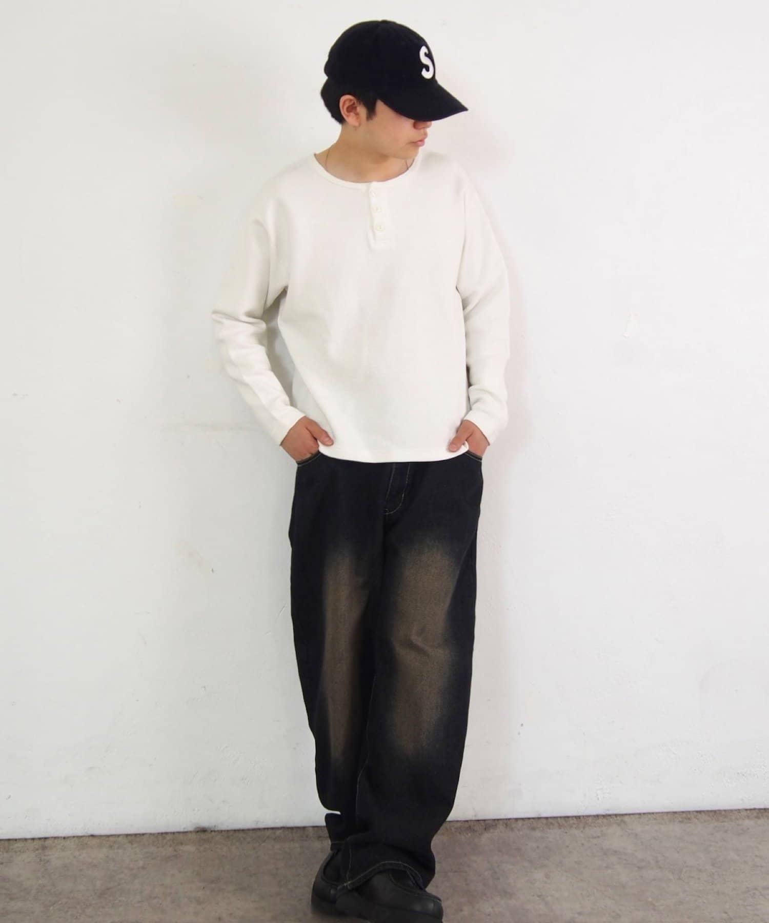 2サイズ【Sourcream/サワークリーム】ワッフルヘンリーネックロンTEE