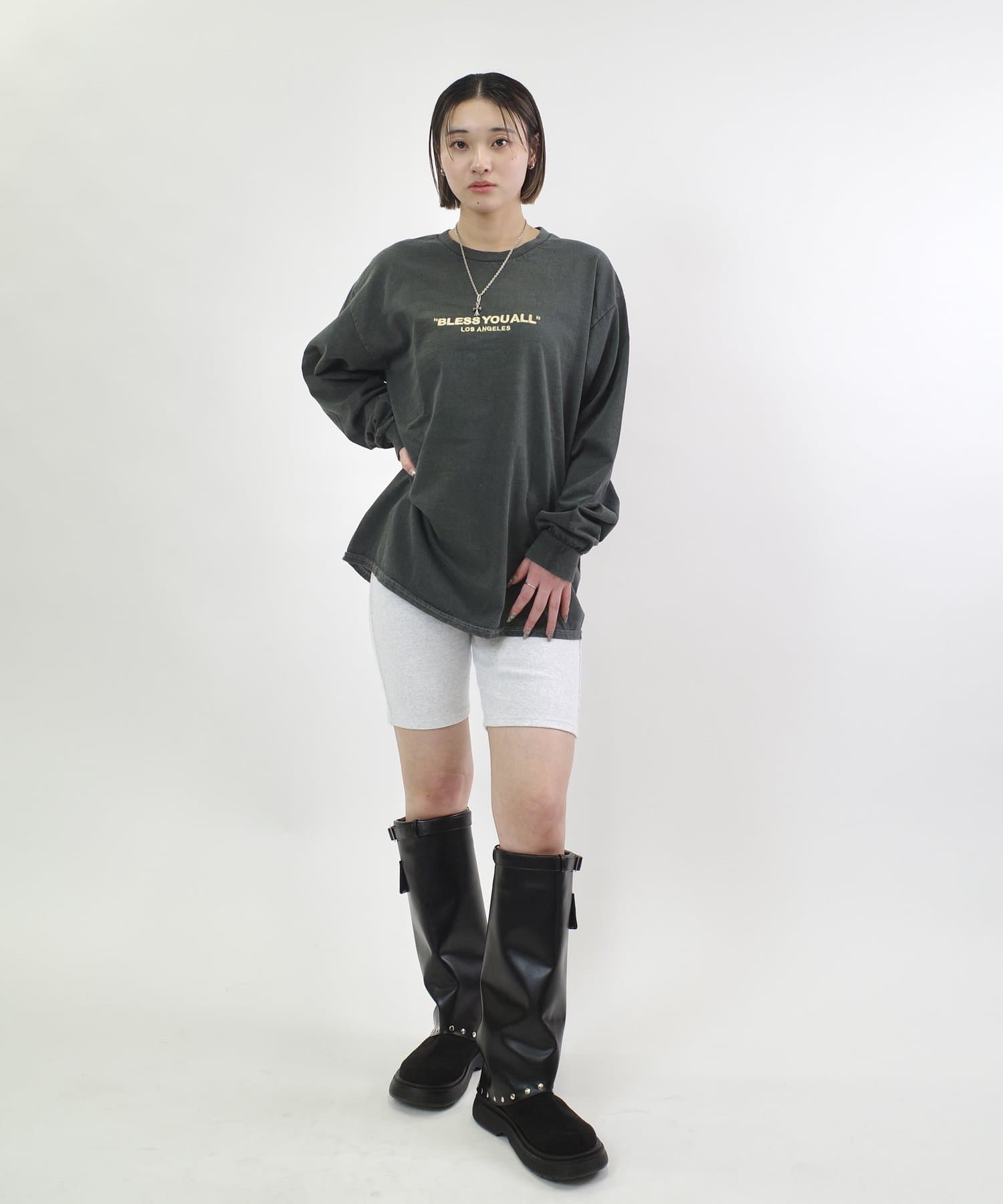 【WEB限定/2サイズ】BLESS YOUピグメント刺繍ロンTEE