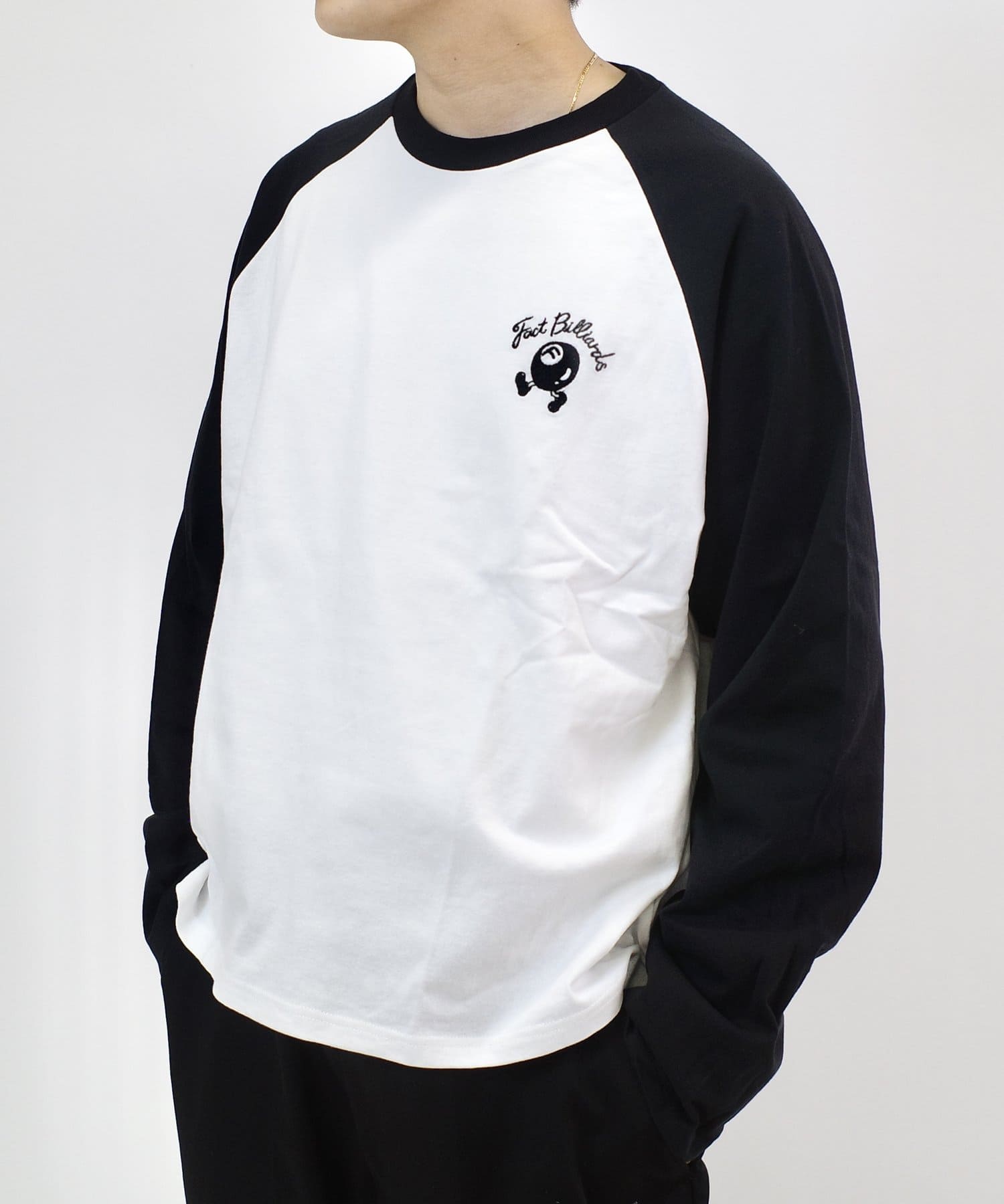 ・ビリヤードロゴを胸元とバックに施したラグランロンTEE。
